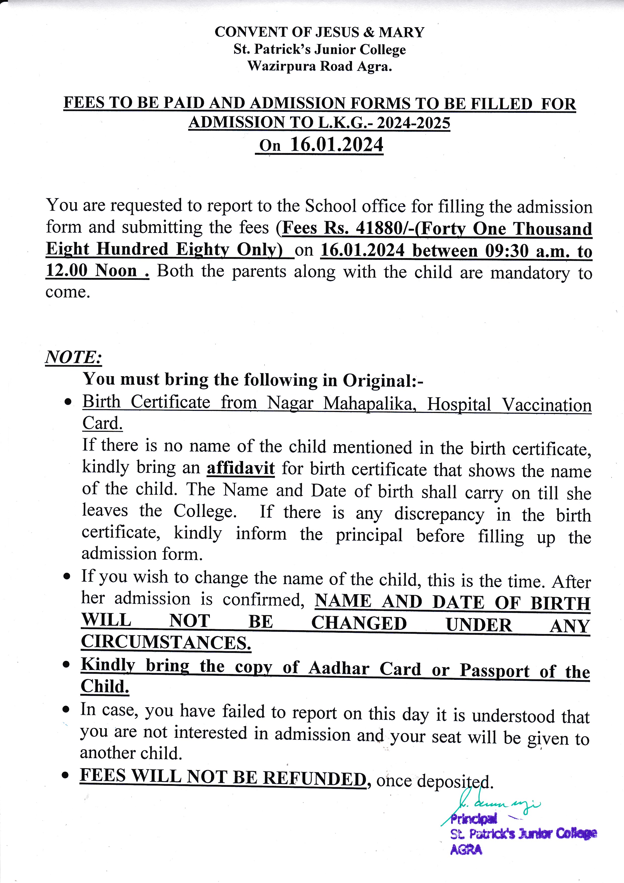 | FEE SUBMISSION FOR ADMISSION TO LKG |