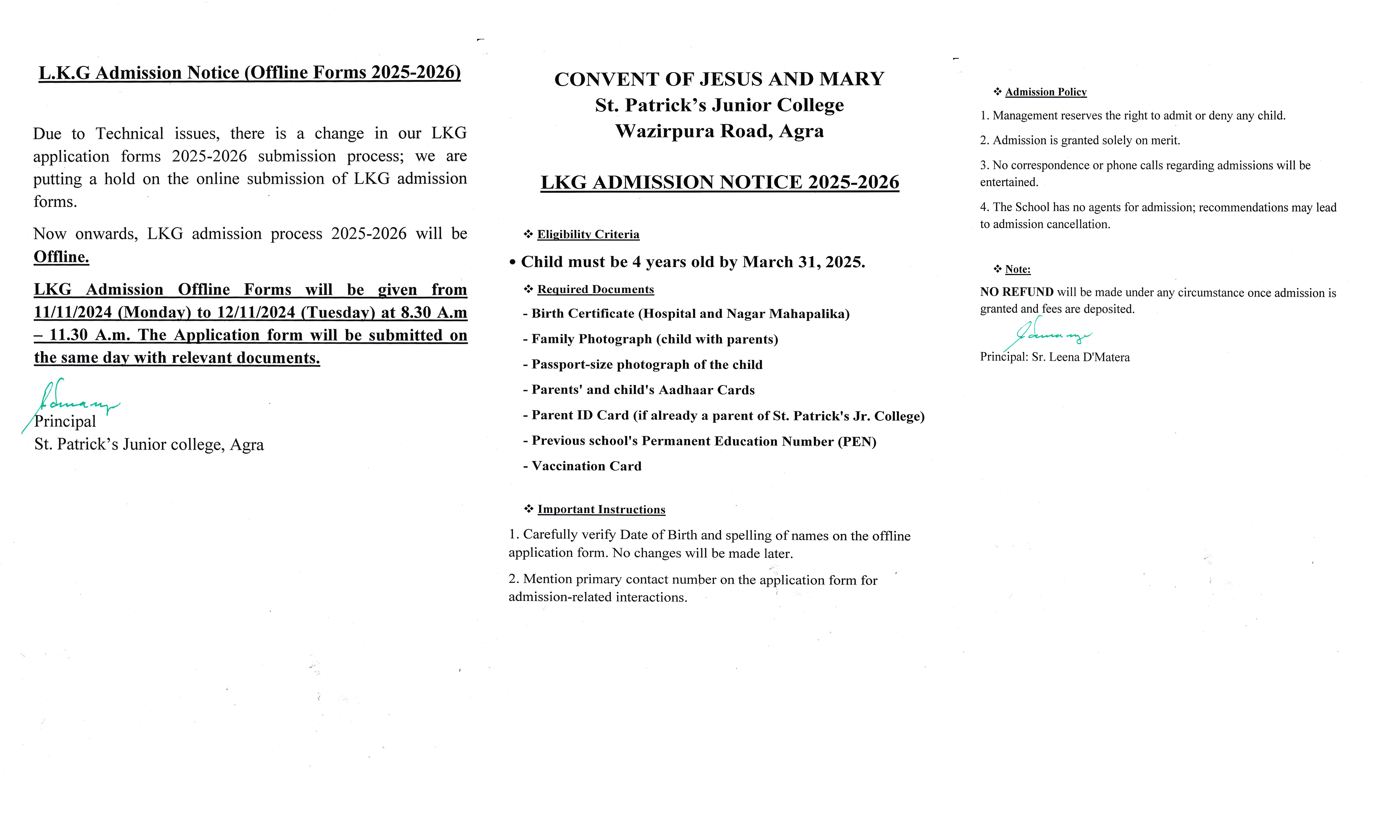 | LKG ADMISSION NOTICE OFFLINE FORMS (2025-2026) |
