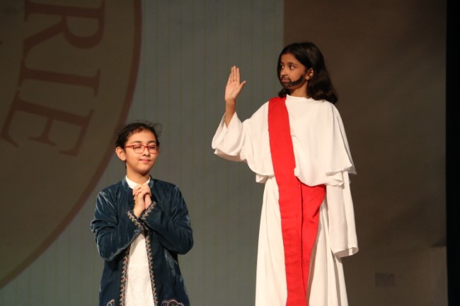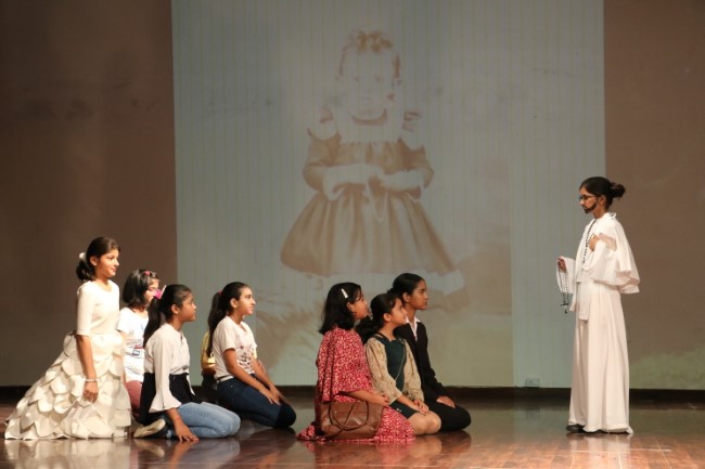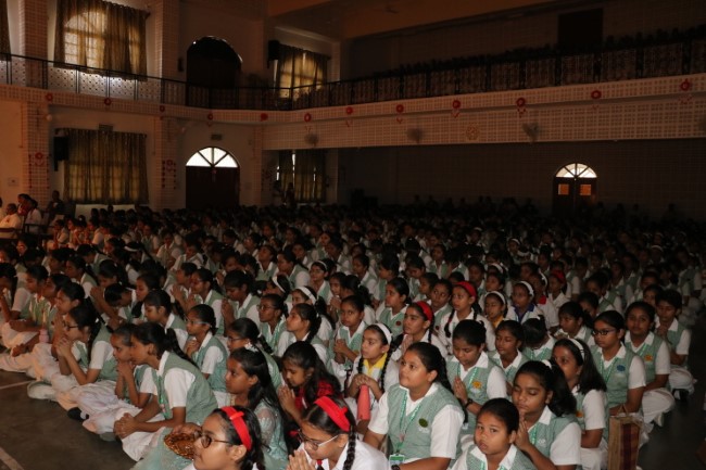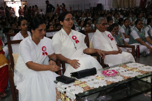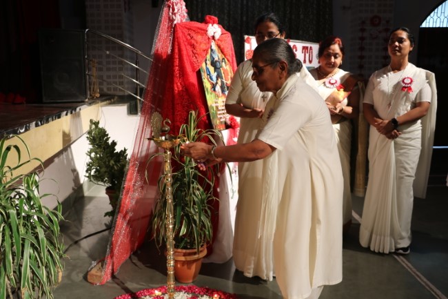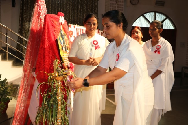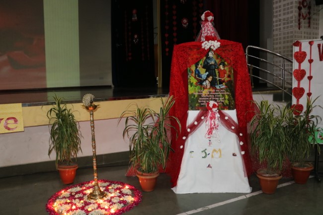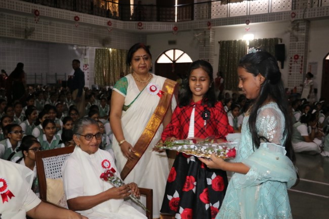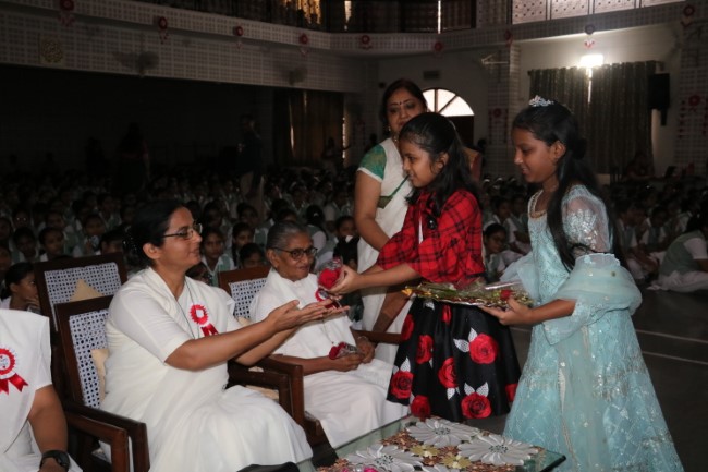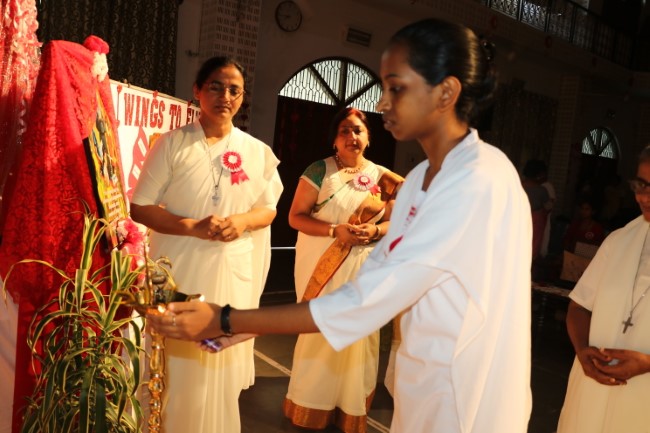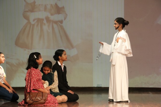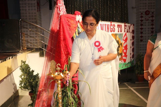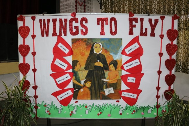 The feast of Blessed Dina Belanger ' The Apostle of Love ' was celebrated on 4th September, 23. A special assembly was conducted jointly by the students of Classes V A and B. The theme was ' Wings to Fly'. The program began with a prayer service, followed by a skit which depicted the important incidents of Dina's life journey from her birth to death.
