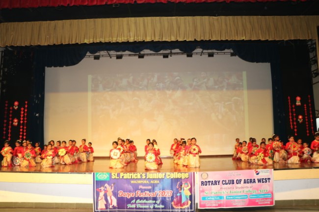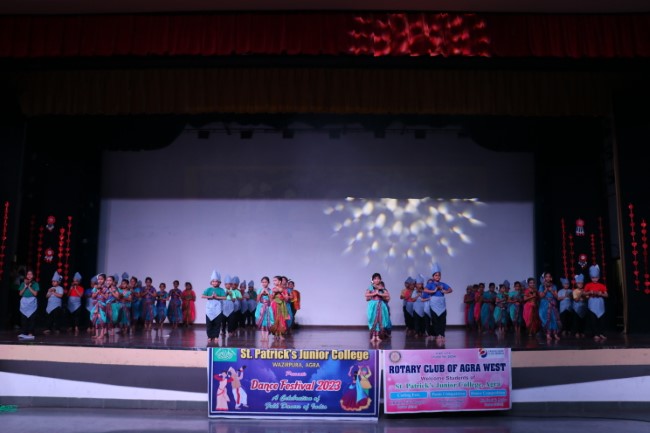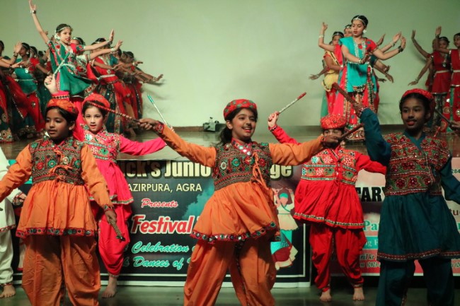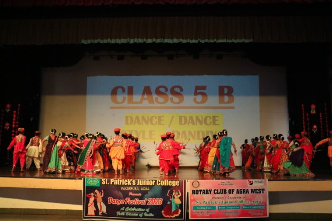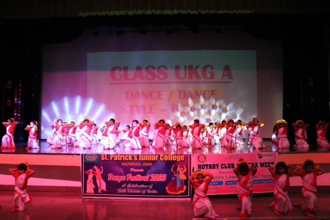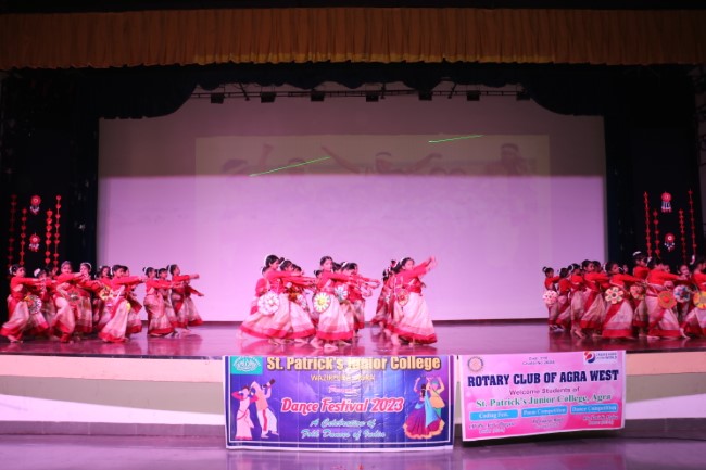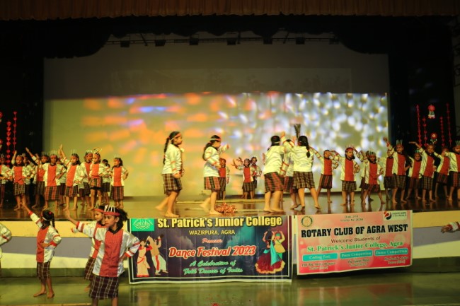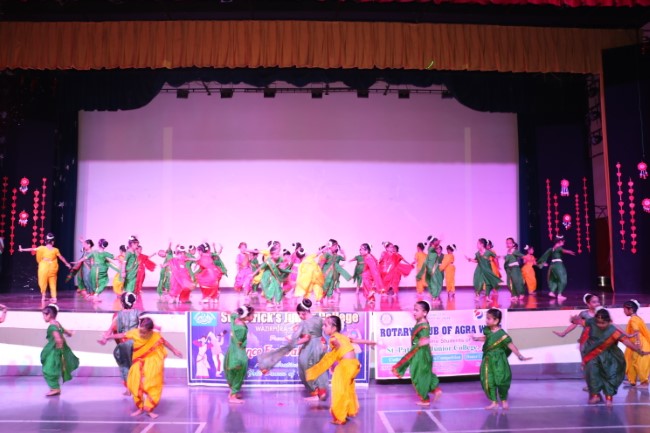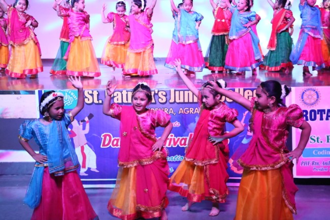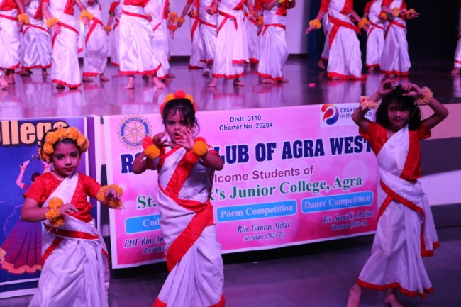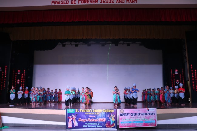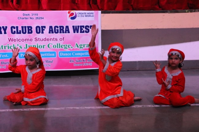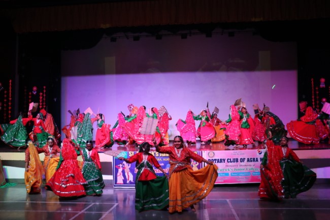 Our school organised a Dance festival, which commenced on the 30th September, in which Classes LKG to V participated. It was a great music and dance extravaganza which saw a wide variety of Indian folklore dance forms. The festival was organised in our school and sponsored by Rotary Club West, Agra. This was a treat and delight for all of the dance lovers and was also the highlight of our folk dance. Seeing the huge success of this fiesta our principal Rev Sr. Leena appreciated the program. The dignitaries of the club appreciated the hard work of our dance teacher Ma’am Taru. They also acknowledged the hard work of students and teachers and specially thanked our principal for the occasion. The program was a successful event.