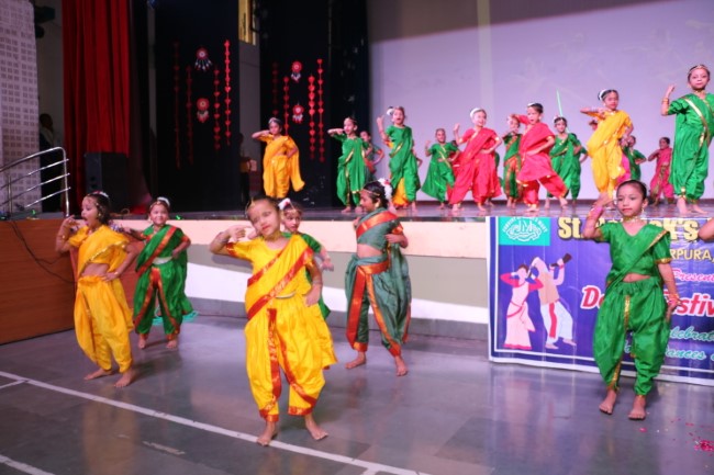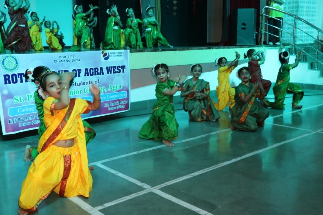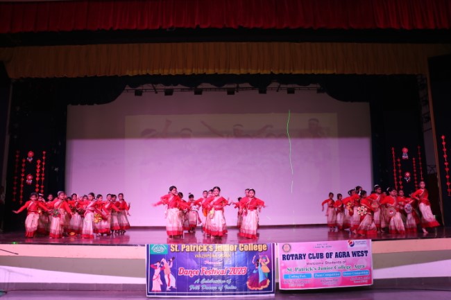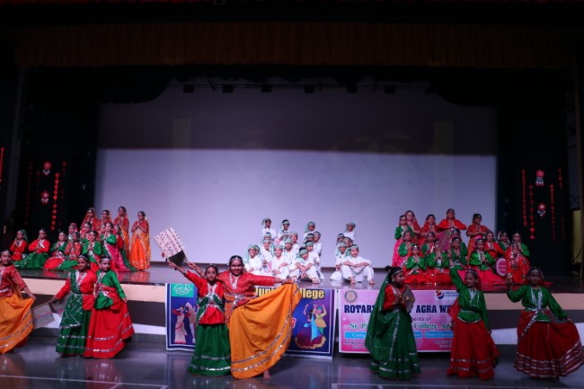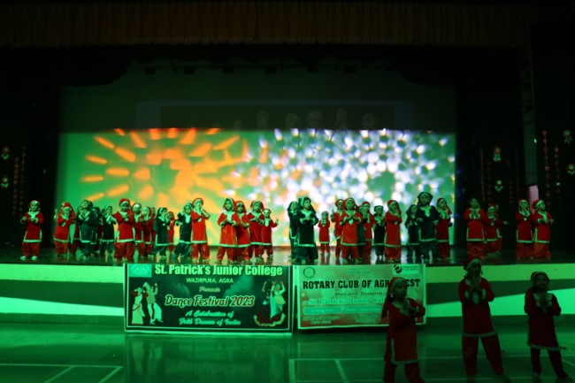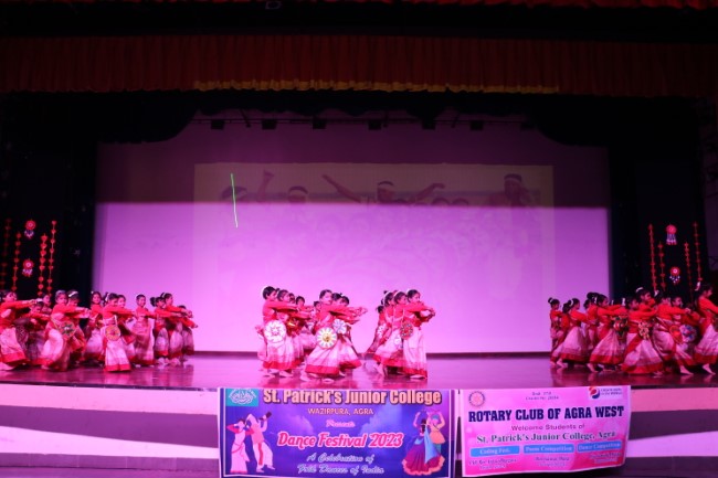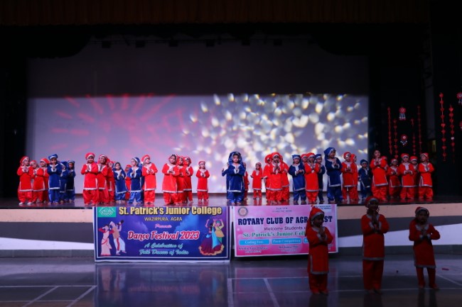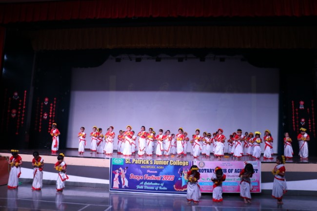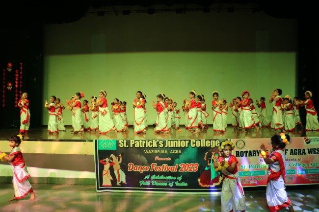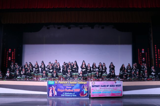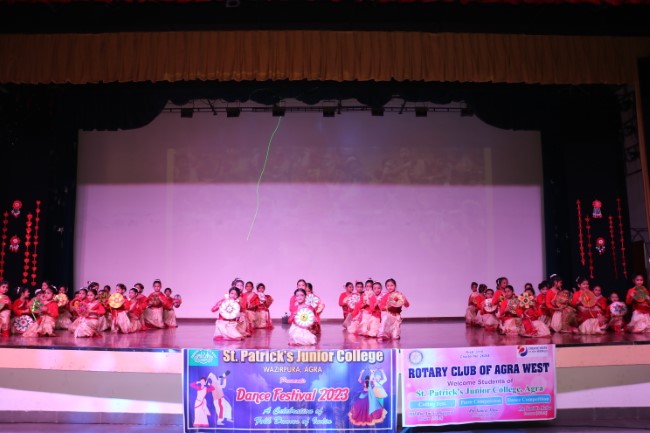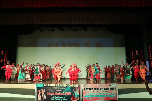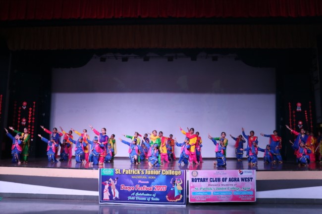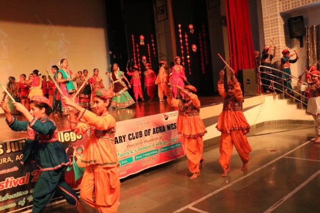 Our school organised a Dance festival, which commenced on the 30th September, in which Classes LKG to V participated. It was a great music and dance extravaganza which saw a wide variety of Indian folklore dance forms. The festival was organised in our school and sponsored by Rotary Club West, Agra. This was a treat and delight for all of the dance lovers and was also the highlight of our folk dance. Seeing the huge success of this fiesta our principal Rev Sr. Leena appreciated the program. The dignitaries of the club appreciated the hard work of our dance teacher Ma’am Taru. They also acknowledged the hard work of students and teachers and specially thanked our principal for the occasion. The program was a successful event.