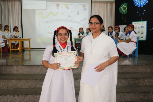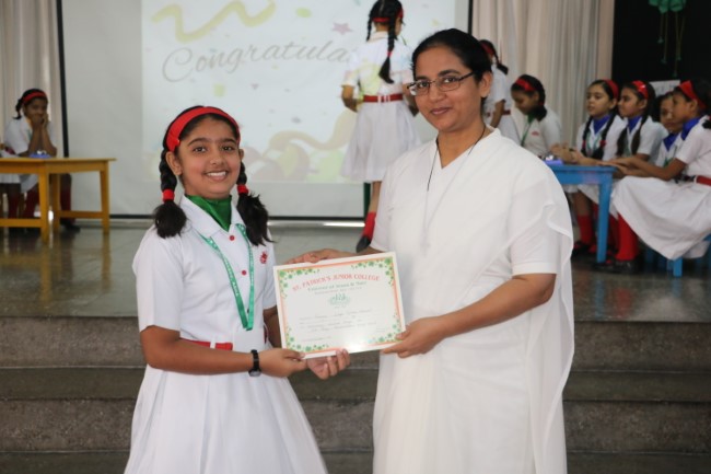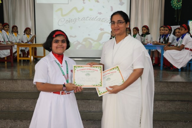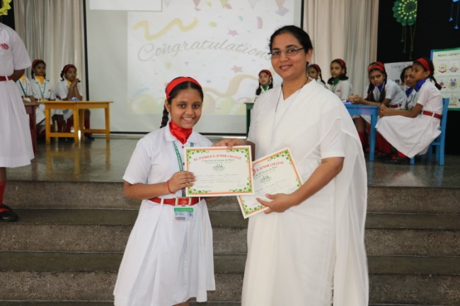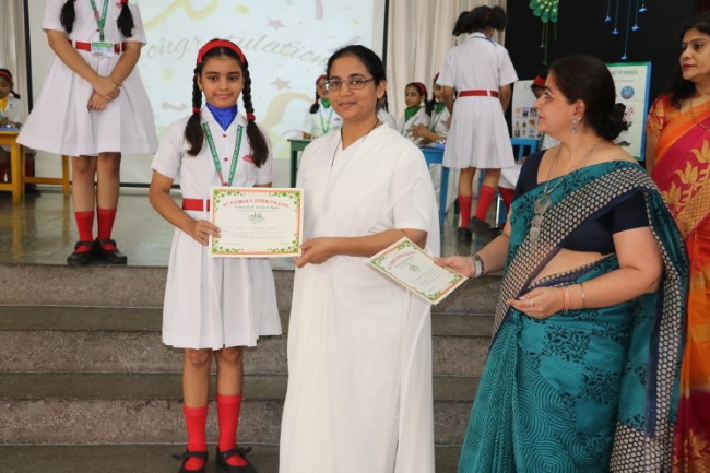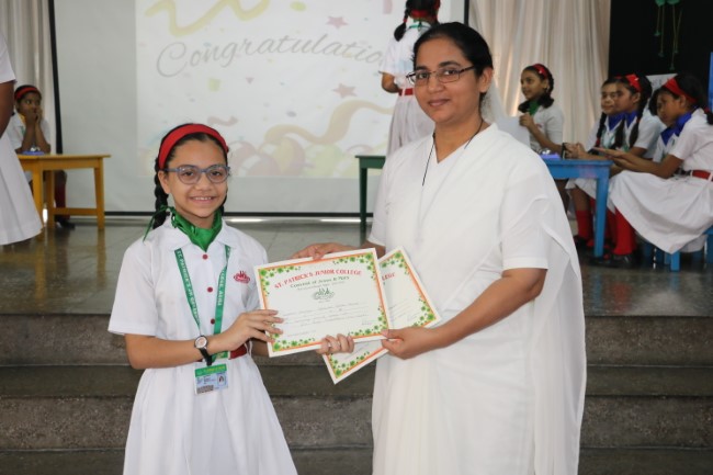 "In a whirlwind of wits and wisdom, St. Patrick's Junior College recently hosted an electrifying Quiz Show on 31st October 23 The atmosphere crackled with anticipation as students from Classes IV & V descended into the arena of knowledge, armed with nothing but their curiosity and quick thinking. It was a riveting spectacle as they battled through a maze of mind-bending questions spanning history's forgotten alleys, the enigmatic universe of science, and the treasured pages of literature. When the dust settled, "Strawberry Delight i.e. Red House" emerged as the conquering champions, their intellectual prowess setting the room ablaze. Followed by Pista Green.... Green House, Mango duet.... Yellow House.......&Blue Berry........Blue House. As the echoes of applause reverberated through the hall, we extended our heartfelt gratitude to the nurturing educators and tireless organizers who set the stage for this splendid intellectual symphony. This Quiz Show wasn't just a contest; it was an ode to the boundless spirit of curiosity, celebrating the thrill of learning in a harmonious ensemble of young minds."