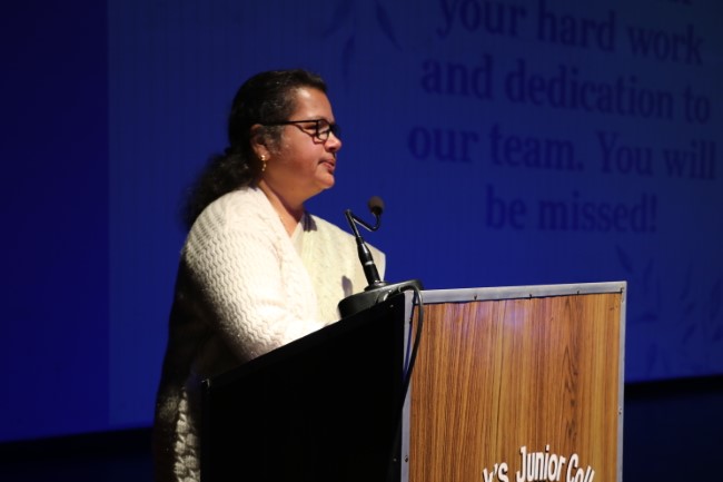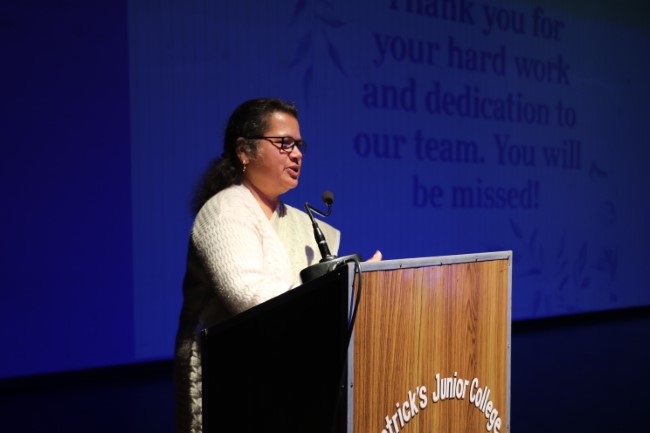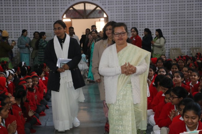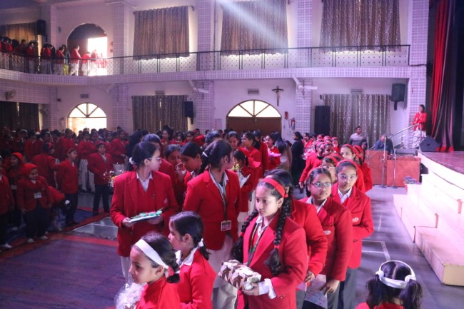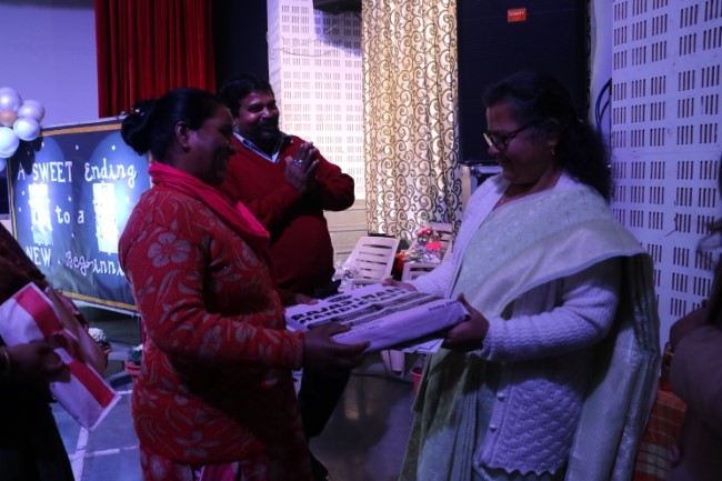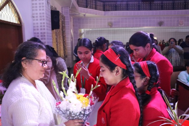 The farewell ceremony of our senior school teacher Mrs. Philomina Mathew was a heartwarming event that began with a solemn assembly in the school auditorium. The event was marked by gratitude and nostalgia as students and teachers came together to bid adieu to a beloved educator who had dedicated 37 years to our institution. The ceremony commenced with a prayer service and was concluded by the touching speech of the school principal Rev. Sr. Leena reminiscing the teacher’s contributions and impact on the school. This was followed by a heartwarming video presentation featuring memorable moments from the teacher’s career. A lot of effort was put to create this moving tribute. There were dances and a small enactment by the junior students, which showcased the teacher’s valuable contribution to the school and his prospects for life. The audience was in tears as Mam gave her farewell speech. Hall was so sad as to bid farewell to their loving, hardworking and sincere teacher. This was followed by giving a token of love by the students.