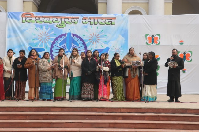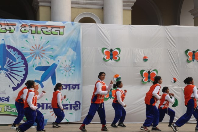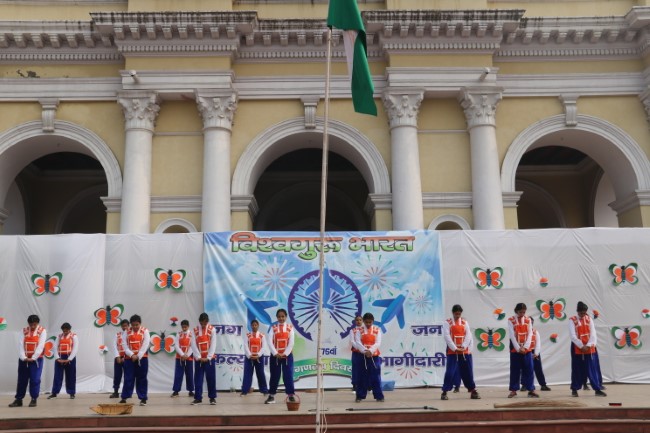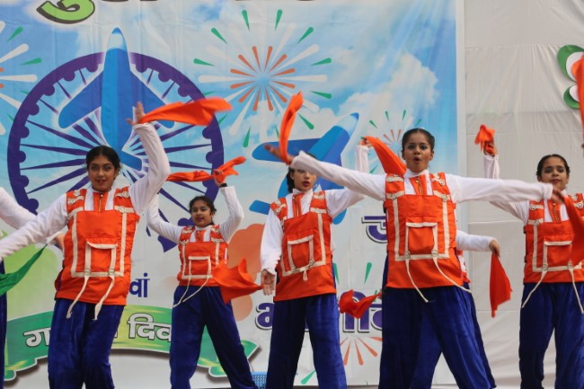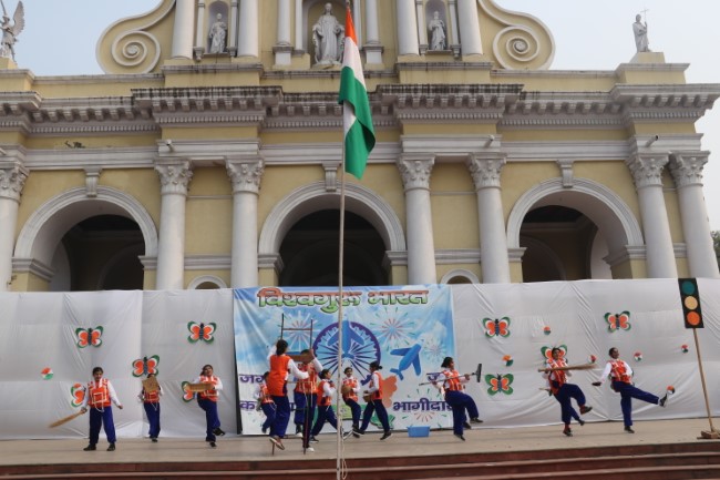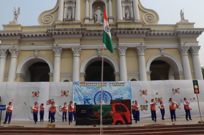 75th Republic day was celebrated with zeal and enthusiasm. This year ,Class 8th got the opportunity to participate in the combined programme conducted in St.Peter 's Church. Six schools participated in the event. Participants prepared a dance based on a patriotic theme.
