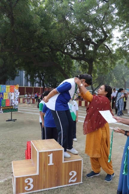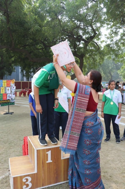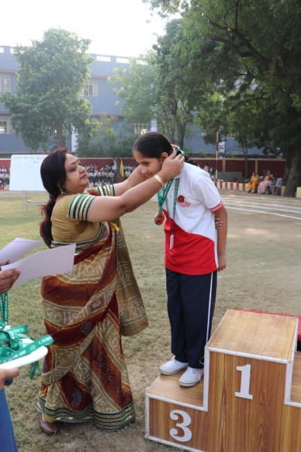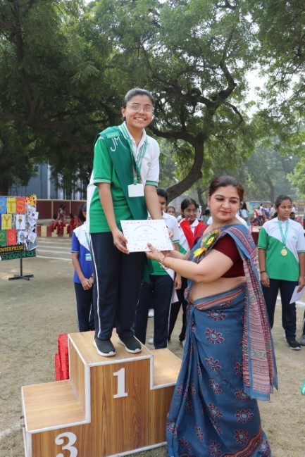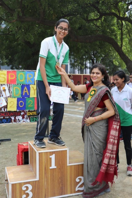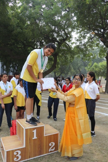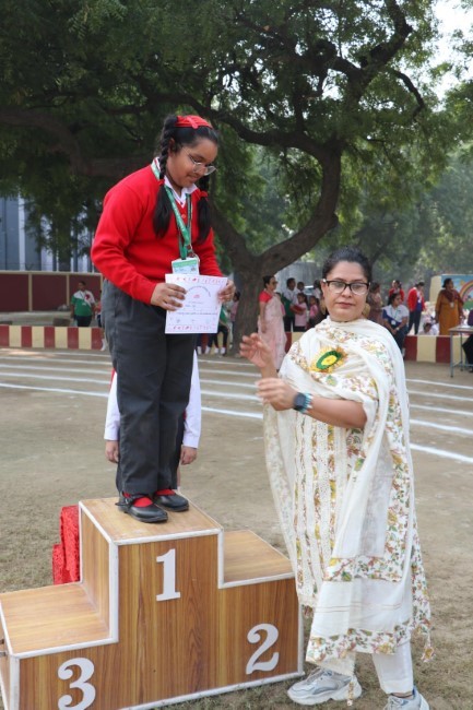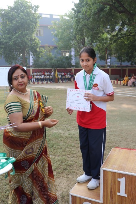 Overall Champion was the Encounter House. Endeavour House was adjudged as the Best House for March Past. The Athlete for the session 2023-24 for Sub-Junior Category was Suryanshi Jain, in the Junior Category Alankrita Kumar bagged the price and Vriddhi Surana became the Best Athlete of the Senior Category. The Student of The Year 2023 was awarded to Samridhi Sharma of XII Science.