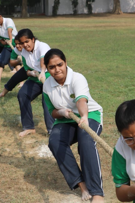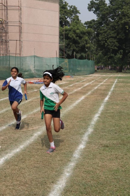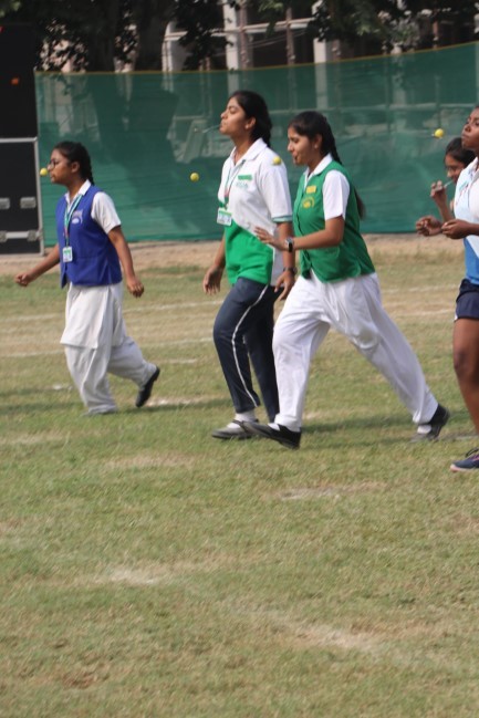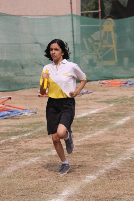 The event started with the March Past performed by the four houses of the school led by the Cabinet Members followed by the Torch Bearing Ceremony. The torch bearers were Shrinika Bhatia, who was the Best Athlete for the academic session 2022-23 in the Sub-Junior Category handed over to Gauri Kaushal, the Best Athlete for the Junior Category and further handed over to Samridhi Sharma, the Sports Captain of the College.