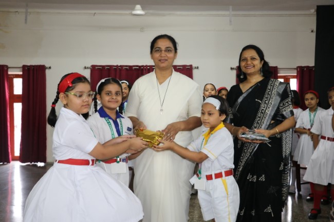 Chart display activity was conducted on 6th July 2024, for the session 2024 to 2025. Class teachers decorated their respective classes with beautiful charts of different topics like all the subjects, welcome charts ,activities, festivals, thoughtful messages and moral values. The competition was between both the sections of LKG to class 5th. The prizes were given by our principal Rev.Sr.Leena to all the winners.She appreciated the hard work of all the students.