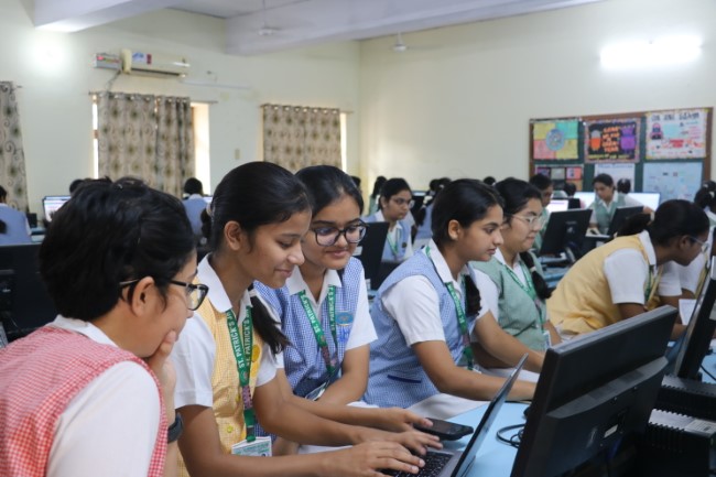 Class 6th students used Scratch, while Class 7th focused on HTML and CSS. Class 8th and 9th utilized Canva, and students from Classes 10 to 12 showcased their talents in HTML, JavaScript, Java, CSS, and Python. Many created games, websites, and software applications.