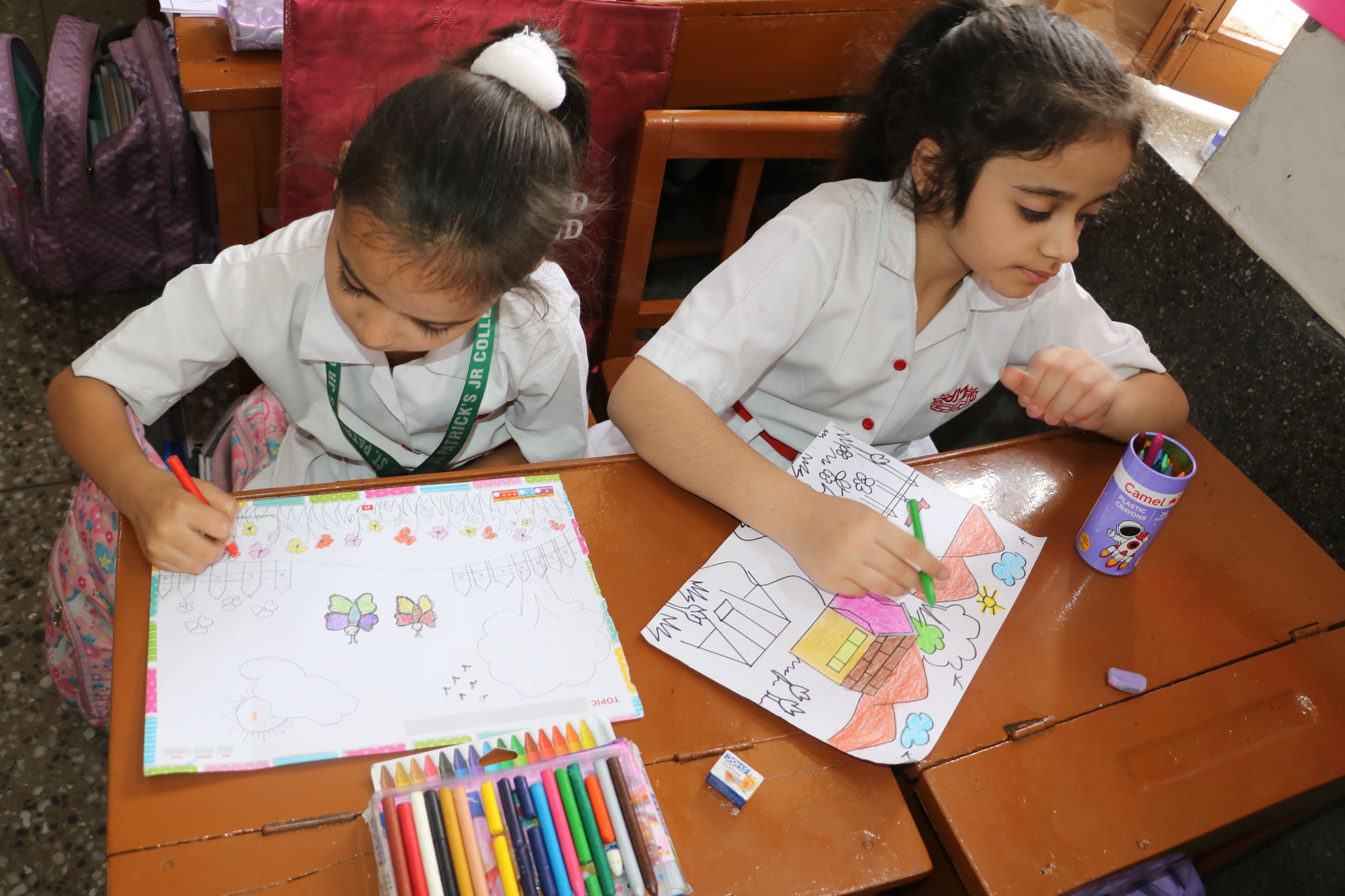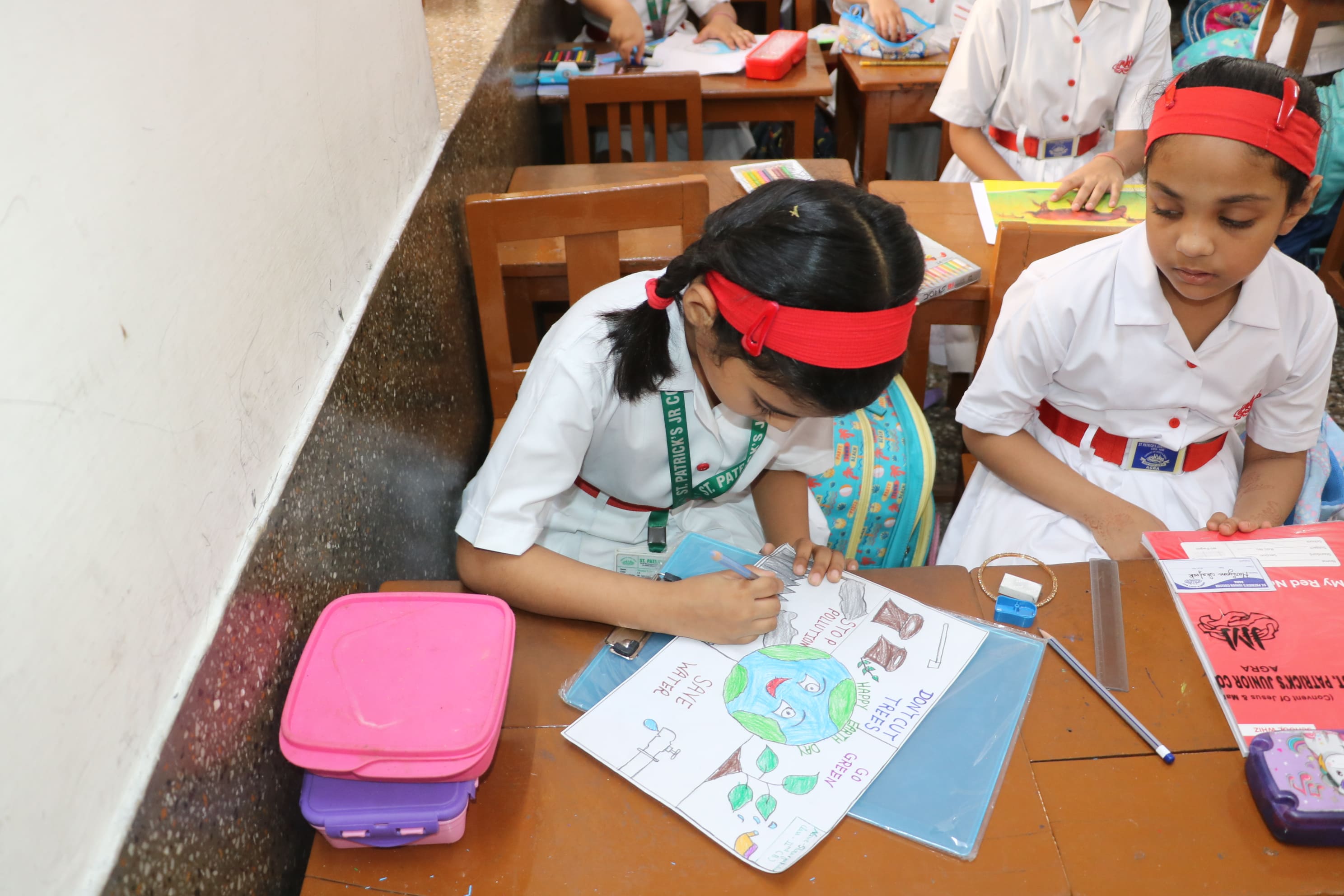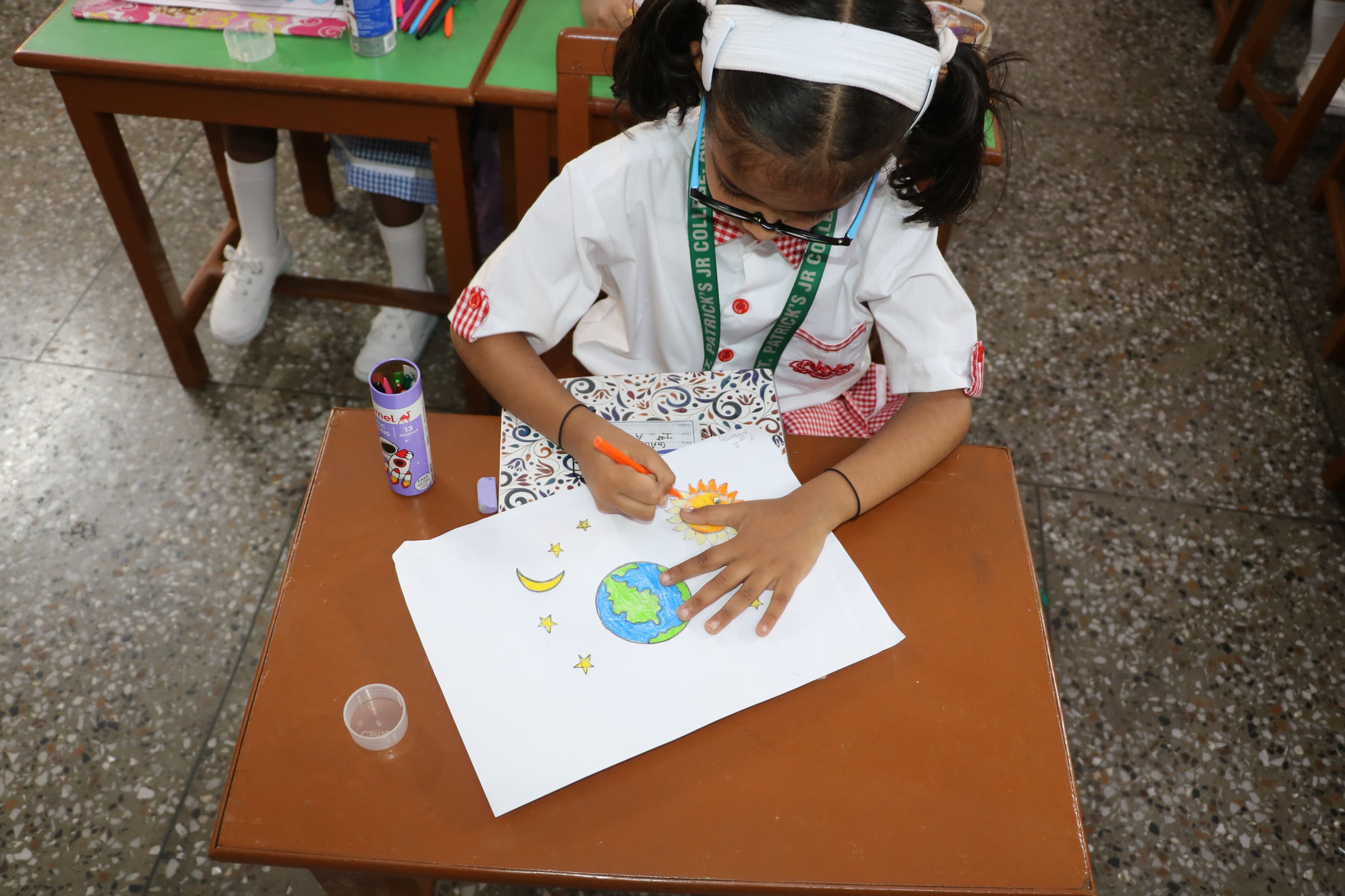 They started with the prayer service along with a prayer dance, Asking God to shower his blessings on us and on nature..Students presented a skit on comparing Earth of the present and the Past.. Children also presented beautiful dances Or principal Rev. Sr. Leena motivated the children to keep the environment clean and green.. Art competition was also conducted in the Junior side for classes 1 to 5..Each class was given a different theme for drawing.. Students enjoyed drawing and colouring for the competition.
