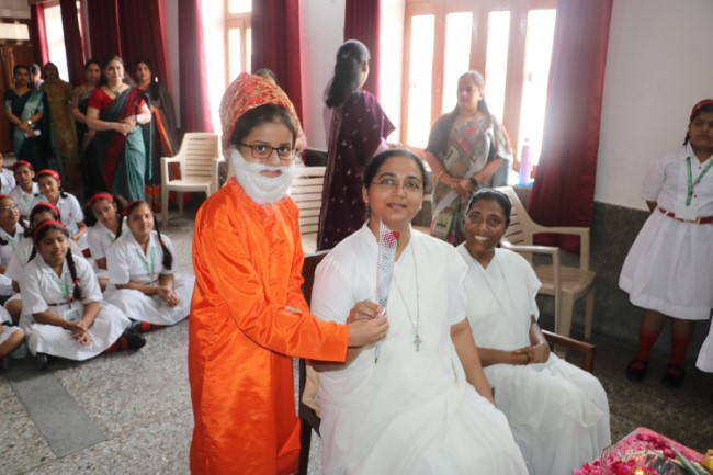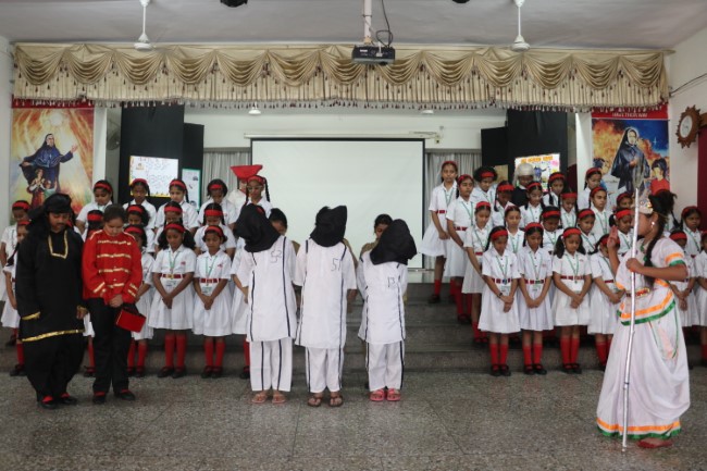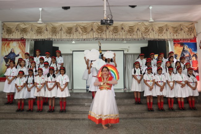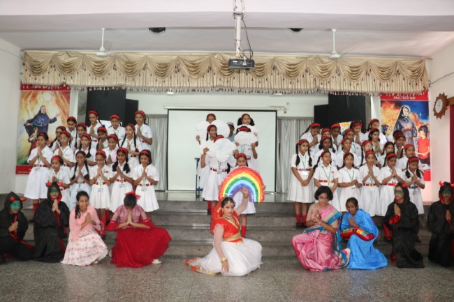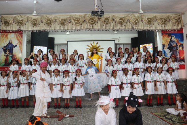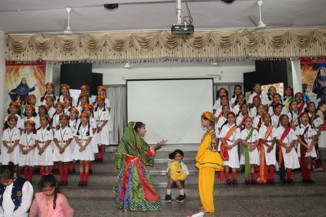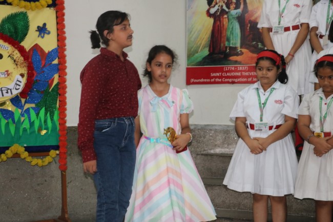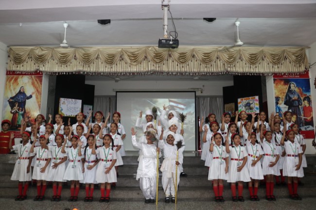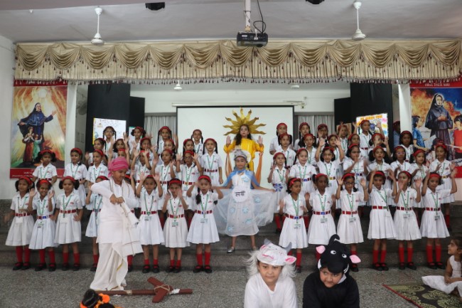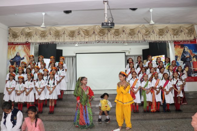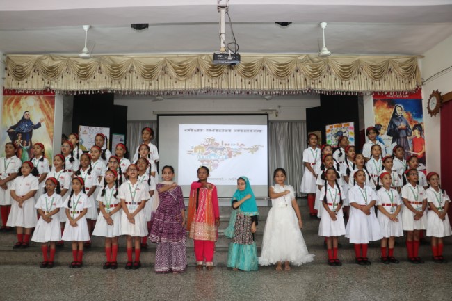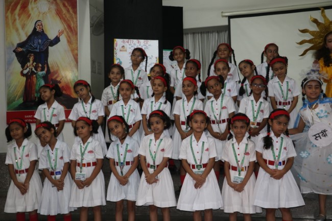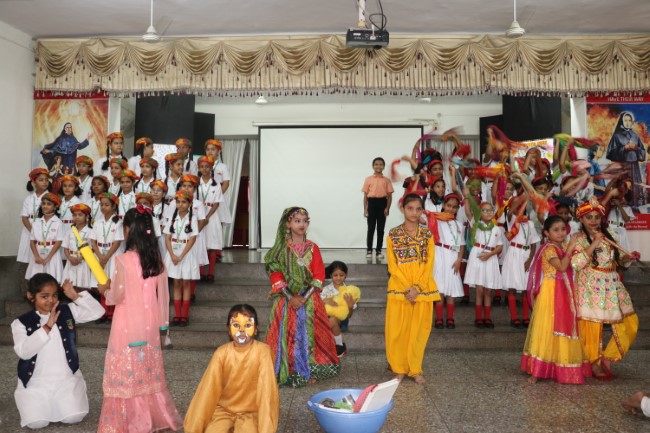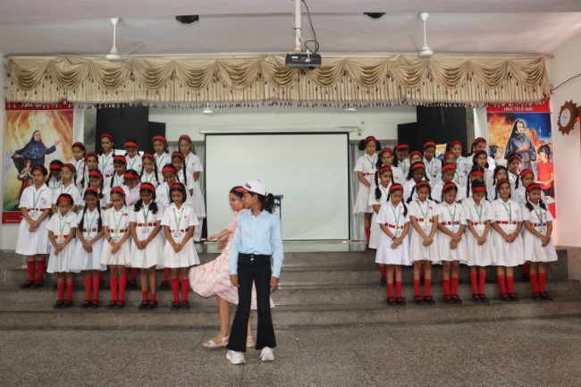 Hindi Enactment Competition was held on 30/08/2025 in 1st to 5th period for classes 1st to 5th . Each class enacted their poem with the help of props and costumes. Their enactment was judged on the basis of acting, choice of poem and effectiveness etc. From each class one section was the winner. Our school Principal Rev. Sr. Leena announced the results and appreciated the winners. Our principal respected Sr. Leena and our headmistress Sr. Shanti were very happy to witness the hardwork of teachers and students. They encouraged the teachers and students with their inspiring words. The activity went well in a peaceful atmosphere. Mrs Archana Hans and Mr.Rajmani Sir judged the program and they were very happy. They encouraged the children with their inspiring words.