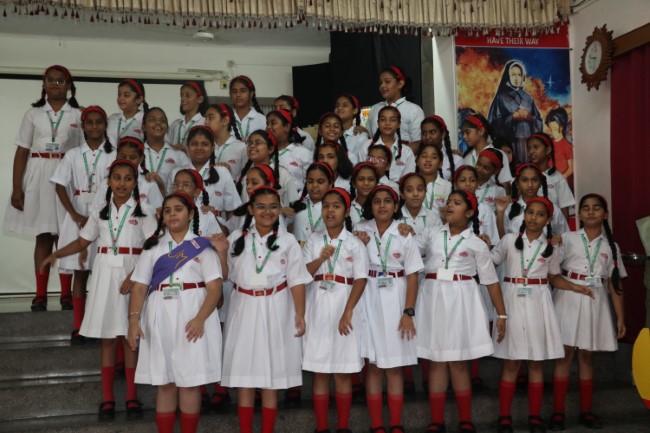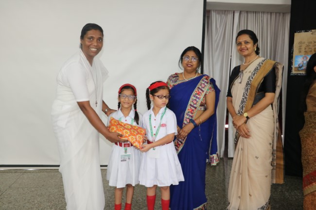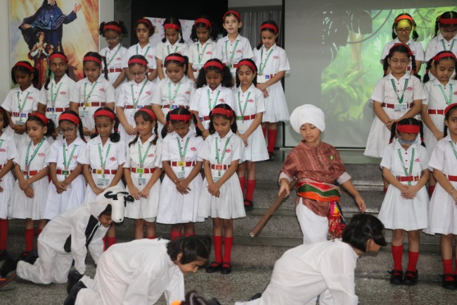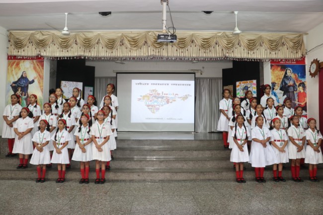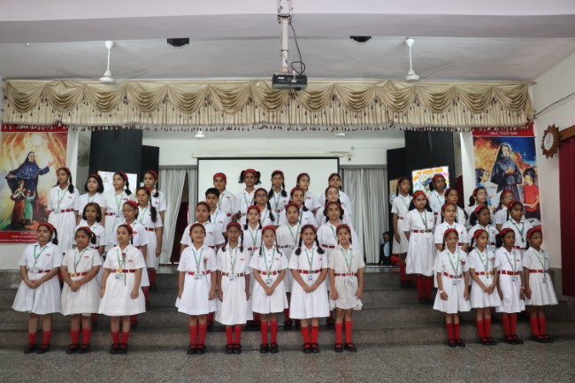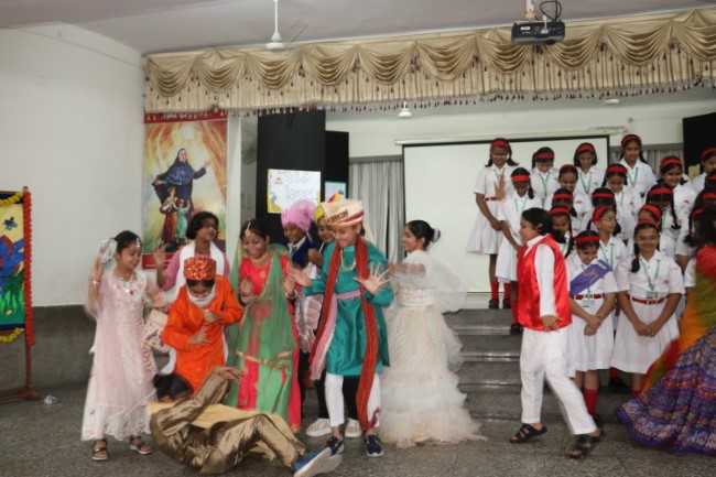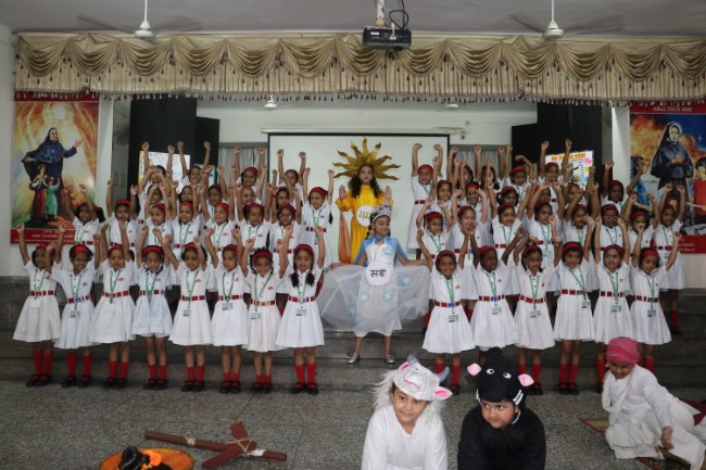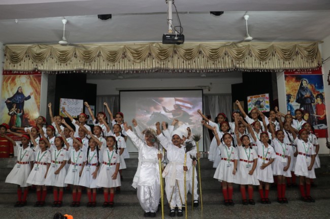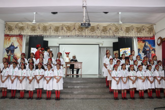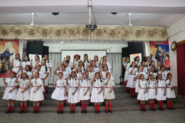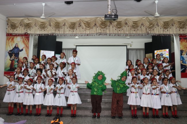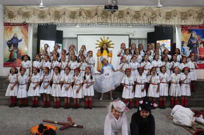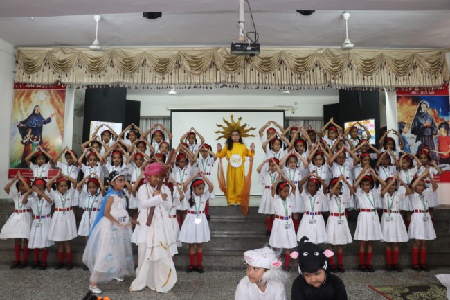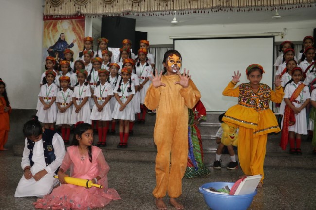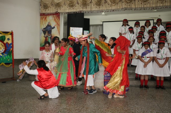 Hindi Enactment Competition was held on 30/08/2025 in 1st to 5th period for classes 1st to 5th . Each class enacted their poem with the help of props and costumes. Their enactment was judged on the basis of acting, choice of poem and effectiveness etc. From each class one section was the winner. Our school Principal Rev. Sr. Leena announced the results and appreciated the winners. Our principal respected Sr. Leena and our headmistress Sr. Shanti were very happy to witness the hardwork of teachers and students. They encouraged the teachers and students with their inspiring words. The activity went well in a peaceful atmosphere. Mrs Archana Hans and Mr.Rajmani Sir judged the program and they were very happy. They encouraged the children with their inspiring words.