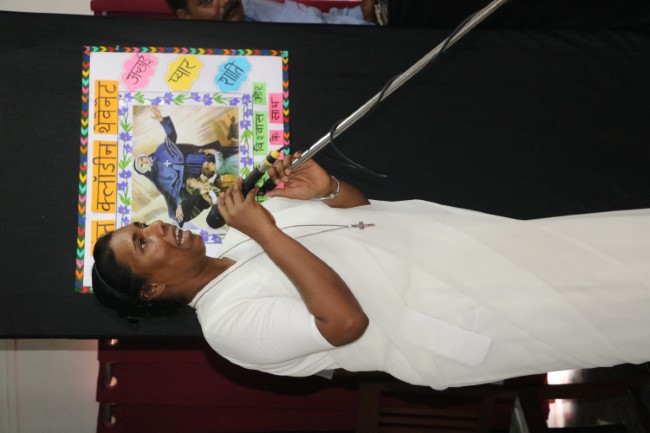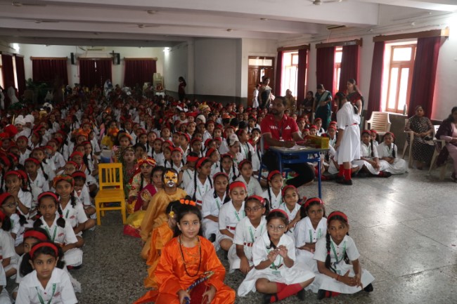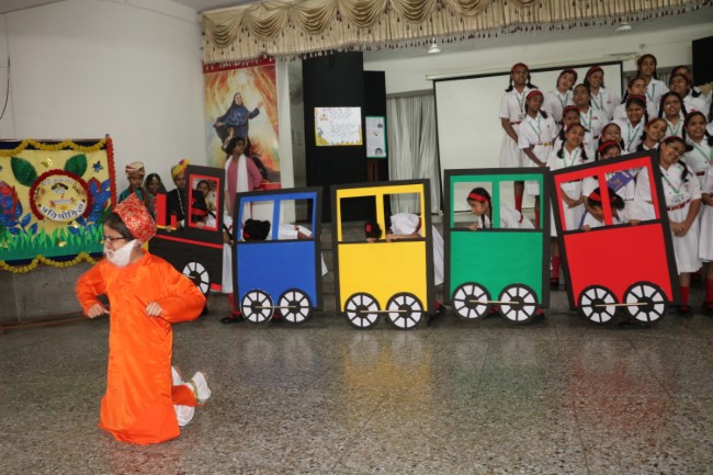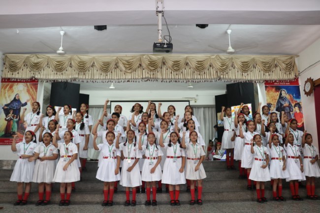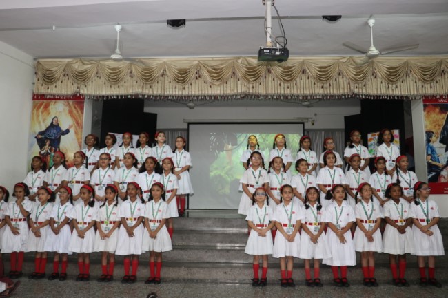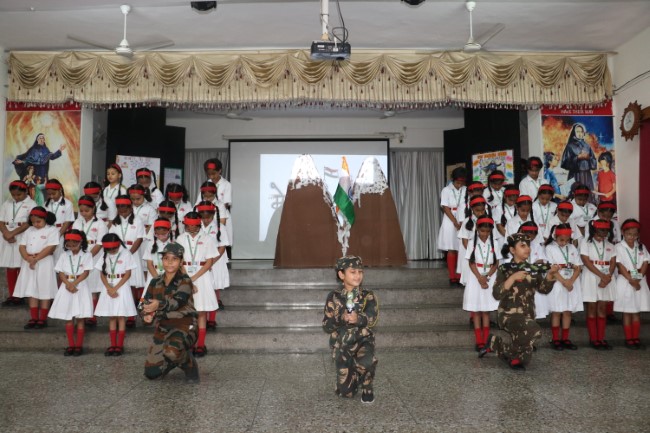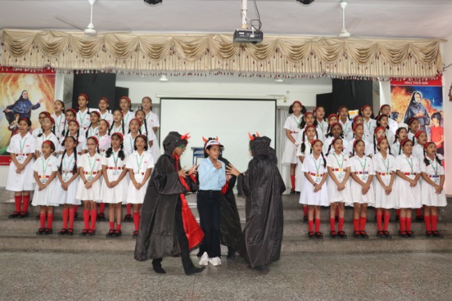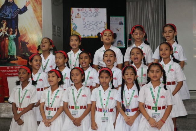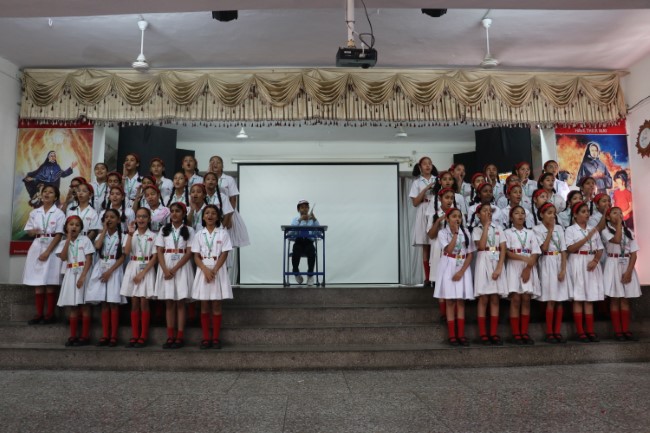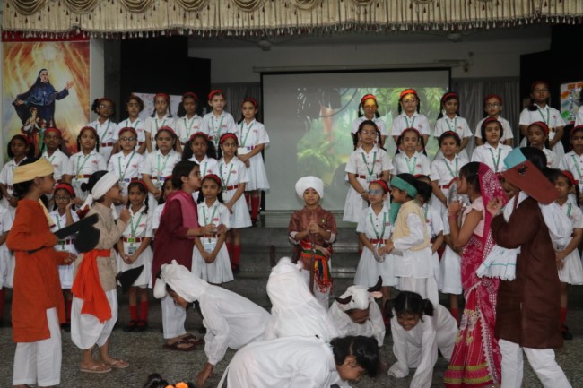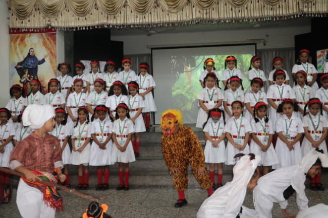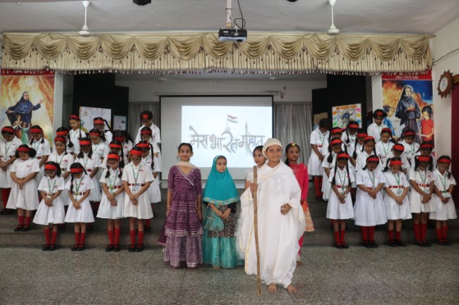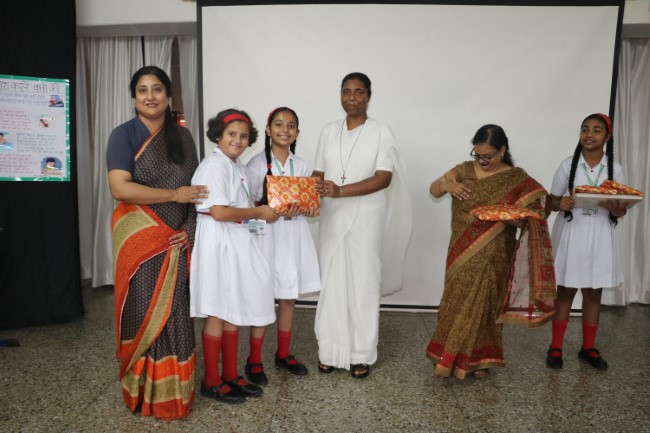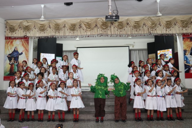 Hindi Enactment Competition was held on 30/08/2025 in 1st to 5th period for classes 1st to 5th . Each class enacted their poem with the help of props and costumes. Their enactment was judged on the basis of acting, choice of poem and effectiveness etc. From each class one section was the winner. Our school Principal Rev. Sr. Leena announced the results and appreciated the winners. Our principal respected Sr. Leena and our headmistress Sr. Shanti were very happy to witness the hardwork of teachers and students. They encouraged the teachers and students with their inspiring words. The activity went well in a peaceful atmosphere. Mrs Archana Hans and Mr.Rajmani Sir judged the program and they were very happy. They encouraged the children with their inspiring words.