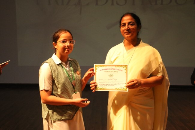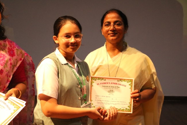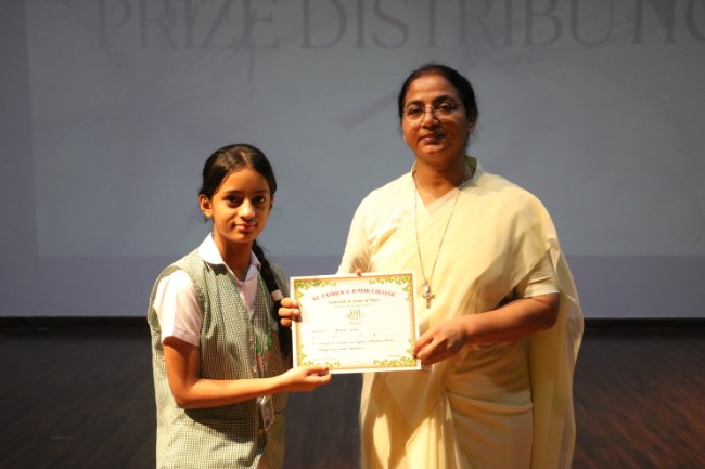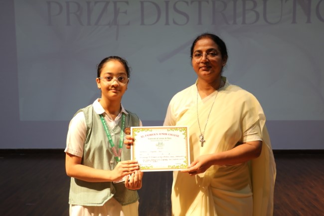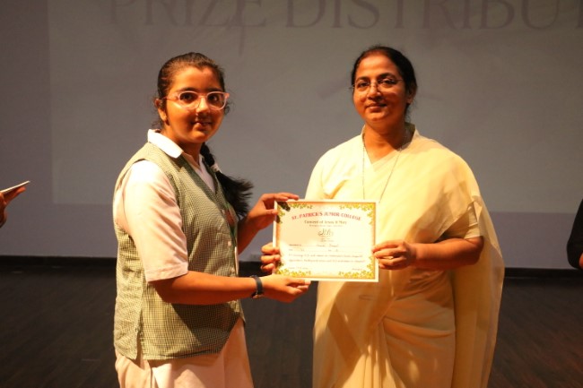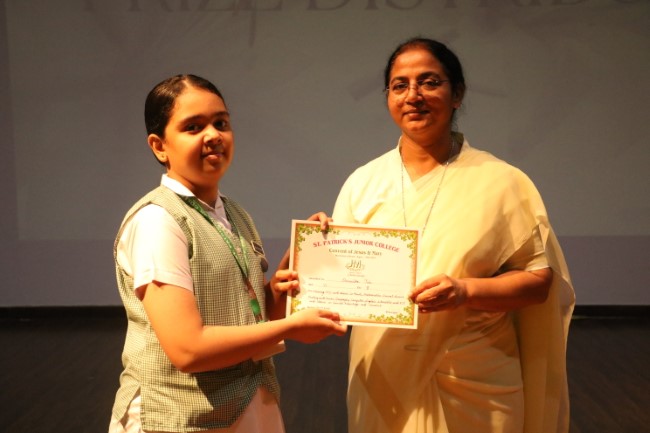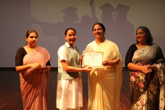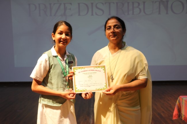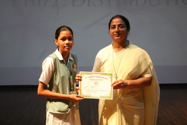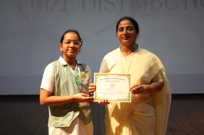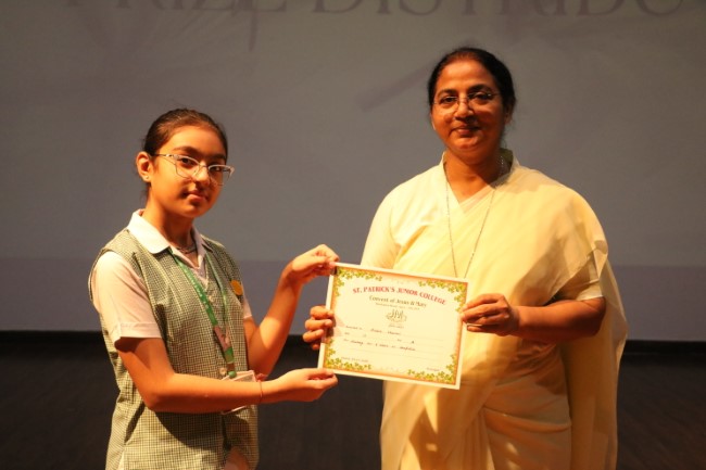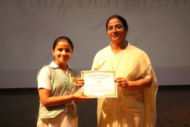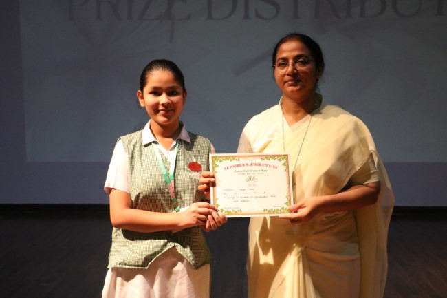 The Prize Distribution Ceremony held at St.Patrick's Junior College, Agra on 9th July, was a joyful celebration of dedication, discipline, and excellence. Students who stood out academically were awarded General Proficiency Trophies, with one topper from each class being recognised for their consistent hard work and outstanding results. In addition, several students received subject-wise certificates for excelling in individual subjects, encouraging a spirit of healthy academic competition and personal growth.