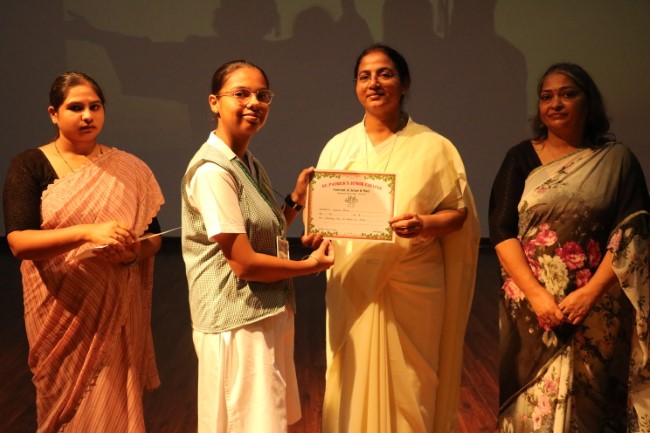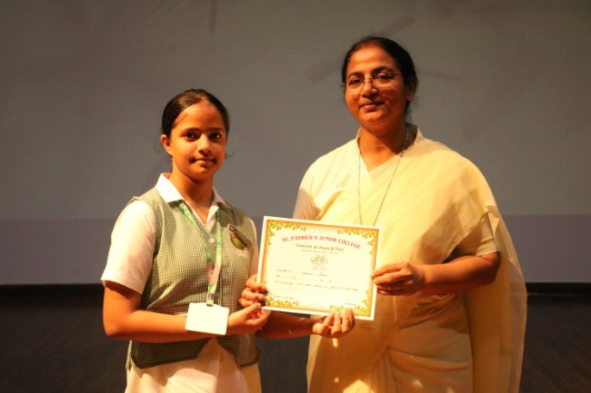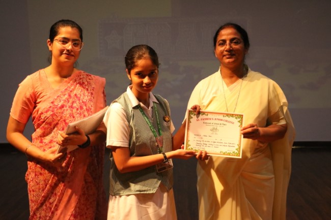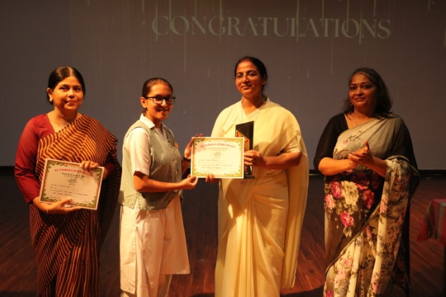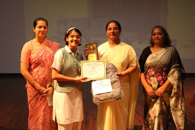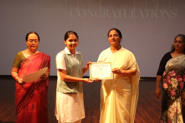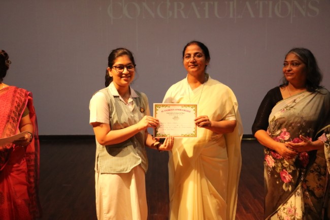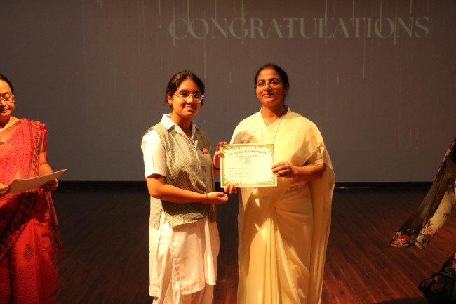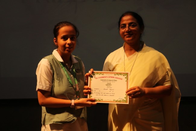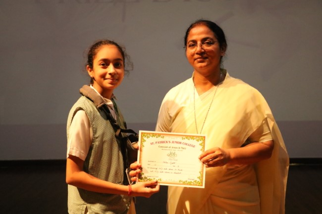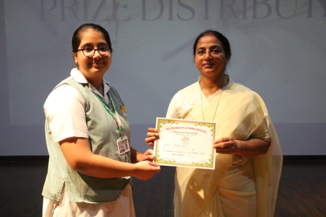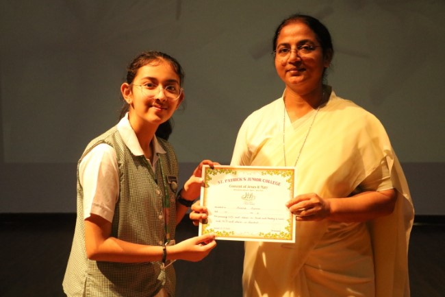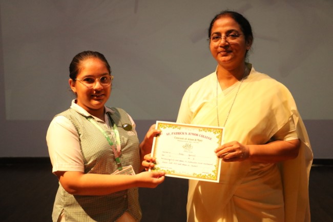 The Prize Distribution Ceremony held at St.Patrick's Junior College, Agra on 9th July, was a joyful celebration of dedication, discipline, and excellence. Students who stood out academically were awarded General Proficiency Trophies, with one topper from each class being recognised for their consistent hard work and outstanding results. In addition, several students received subject-wise certificates for excelling in individual subjects, encouraging a spirit of healthy academic competition and personal growth.