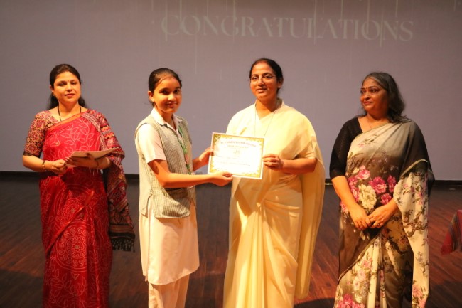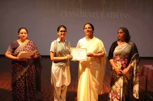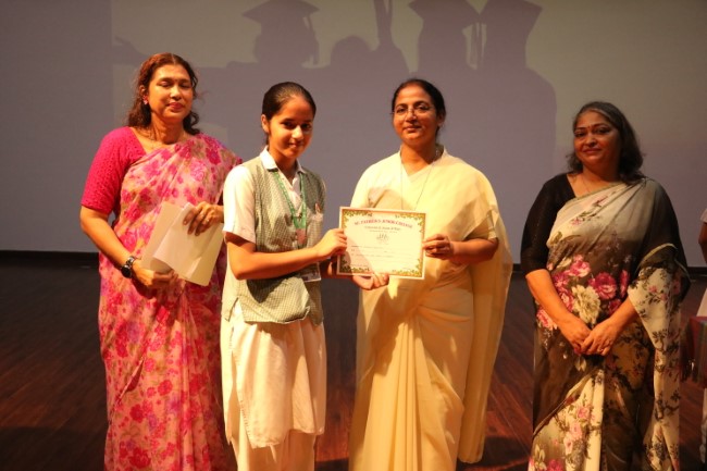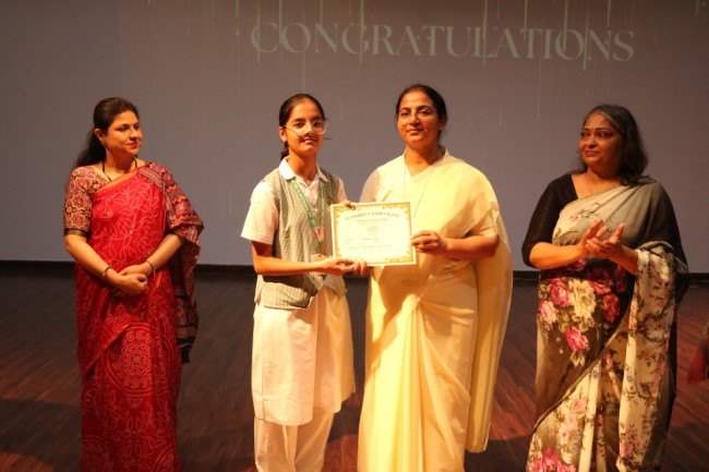 The ceremony also honoured students who maintained 100% attendance throughout the academic year — a remarkable achievement that was appreciated with trophies and school bags. The entire event served as a powerful source of motivation, reminding all students that effort, regularity, and sincerity never go unnoticed. As we now look through the photographs, we relive these proud moments that celebrated not just achievement, but also the values that define our school.