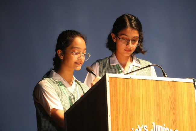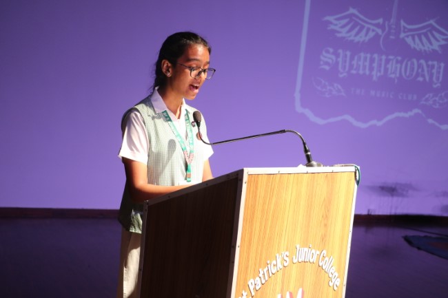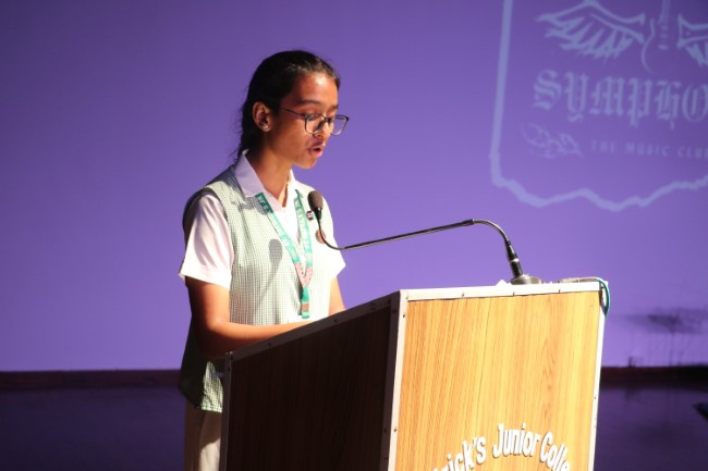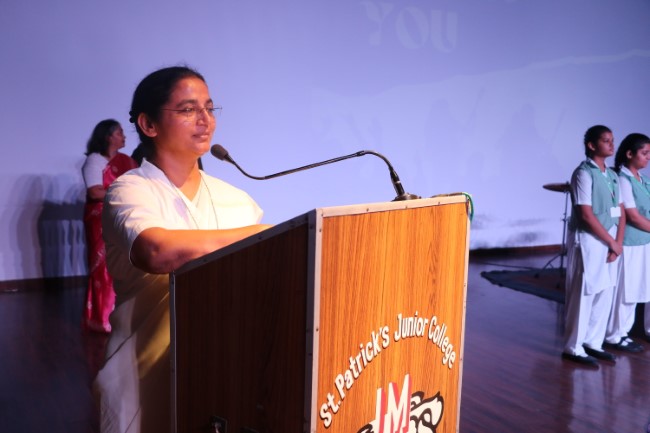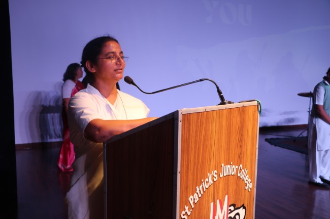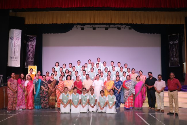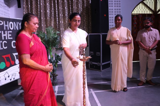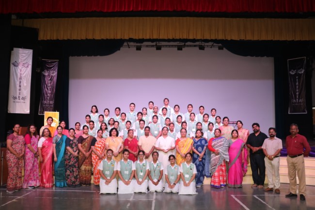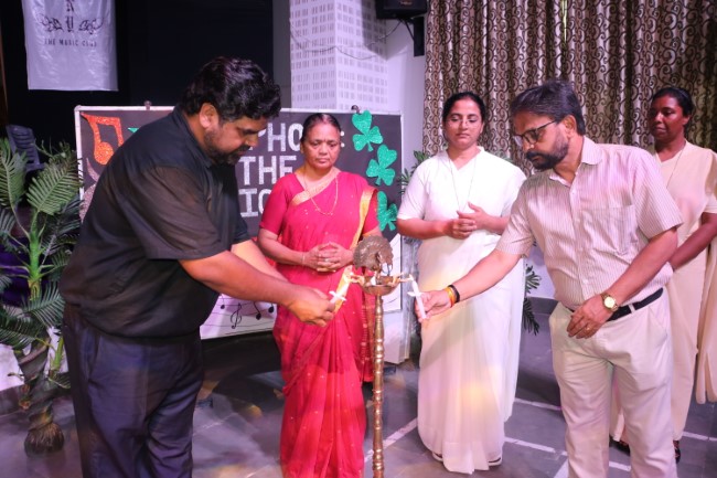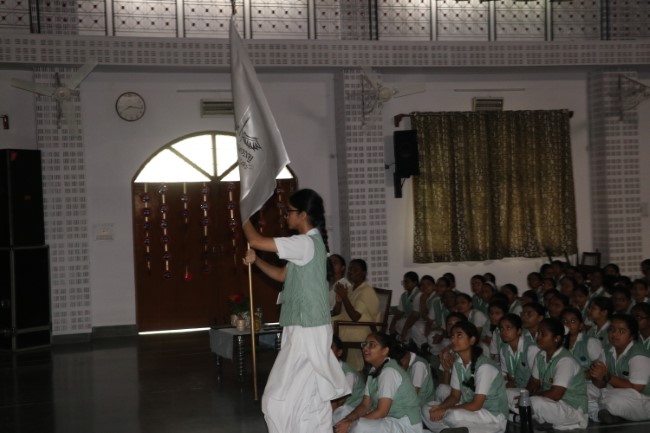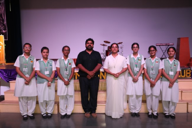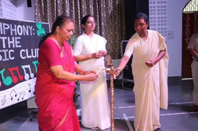 The solemn occasion was held in the gracious presence of Rev. Sr. Leena Dorothy, our esteemed Principal and the Chief Guest, who has always encouraged students to explore their artistic pursuits, and Rev. Sr. P. Mary Santhi, our respected Headmistress and the Guest of Honour, whose motivating presence added dignity to the event. The program was further guided by the unwavering support of Sir Robert Massey, our Coordinator, whose efforts helped bring this vision to life.