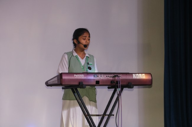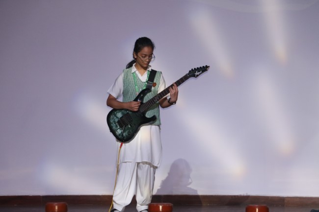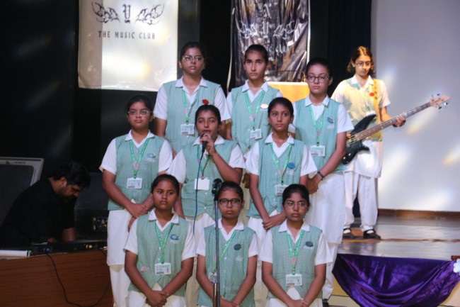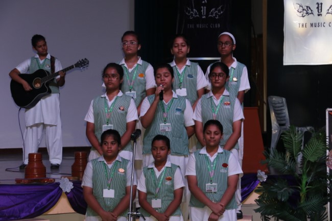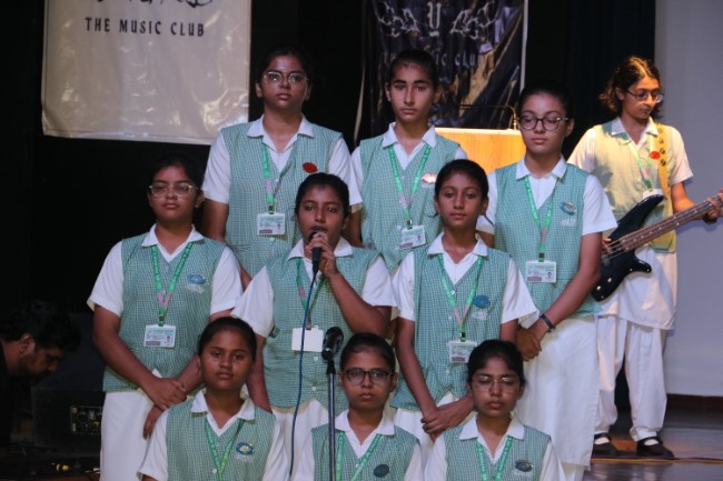The cultural segment of the program filled the atmosphere with melody and rhythm. The school's very own band, 'The Destiny', delivered a power-packed performance that enthralled the audience, while the school choir presented soulful renditions that resonated with the spirit of harmony and togetherness. The audience was immersed in the joy of music, proving that the club had already begun fulfilling its purpose. To add a lighter note to the event, Musical games like 'Shazam' were also organized, spreading Musical Knowledge and making the day unforgettable.