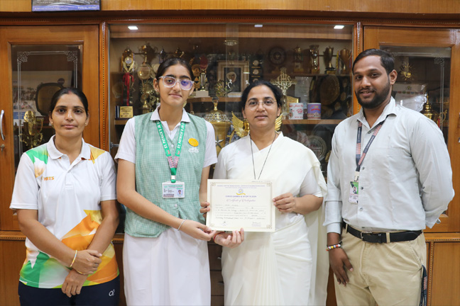 Anika Gupta 6 B (Bronze),Kunjika Bindal 6 (Bronze), Deeya Singh 6A (Silver), Saanvi Singh 6A (Bronze), Anika Tandon 6A (Silver), Aaradhya Bhadauria 6 A (Gold), Adya Sharma 7 B (Gold), Adhvika Singhal 7 B (Gold), Ananya Gupta 8 B (Silver), Deeya Singh 8 B (Bronze), Aishwarya Prabha Raj 10 (Gold), Manvi Singh 11 Comm (Gold), Namya Agarwal 12 Comm (Silver)