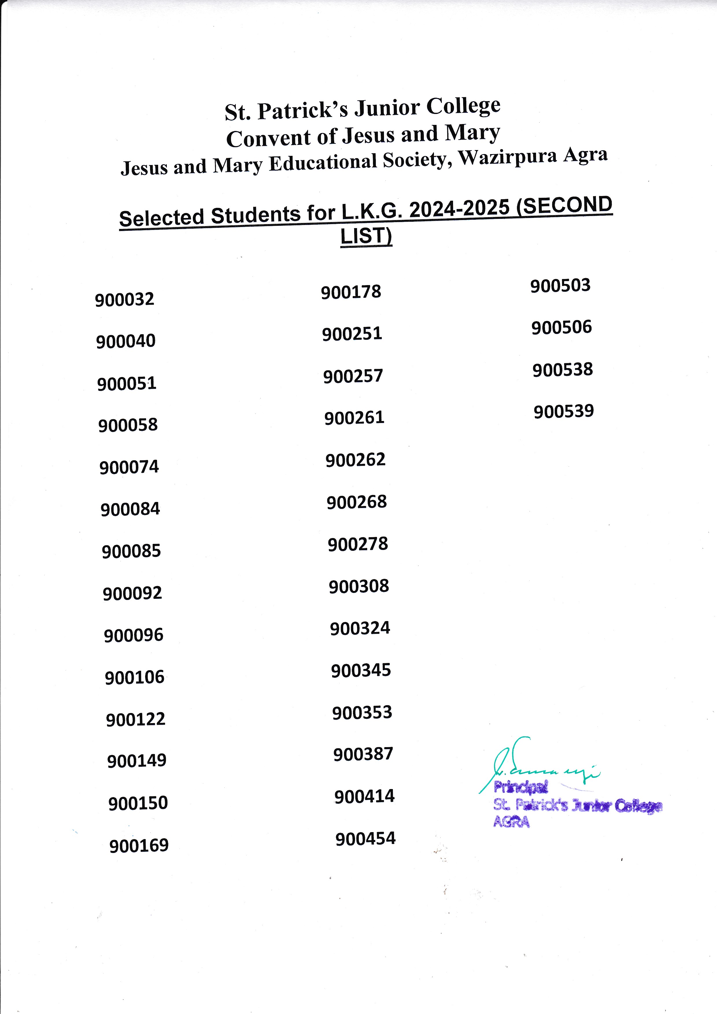 | LKG SELECTED STUDENTS LIST 2024-2025 SECOND LIST |