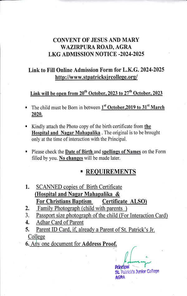 | LKG ADMISSION NOTICE OFFLINE FORMS (2025-2026) |
