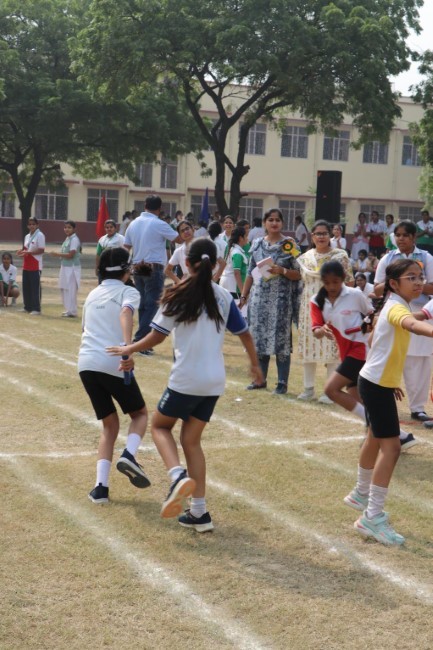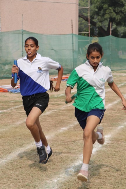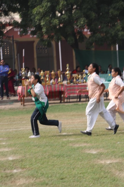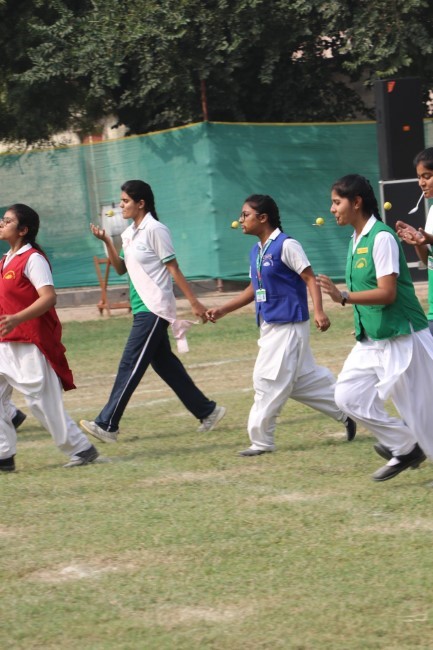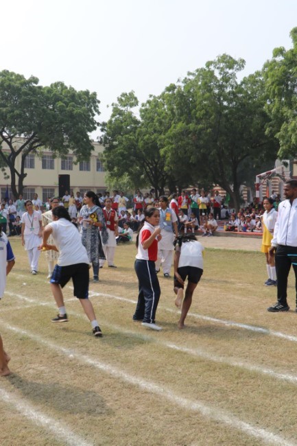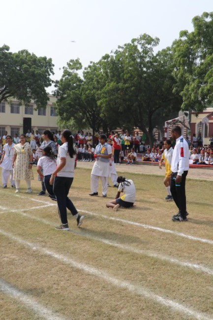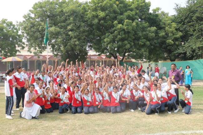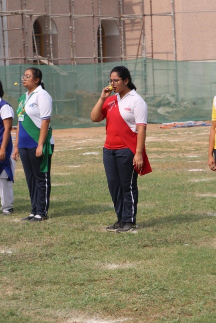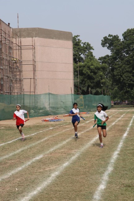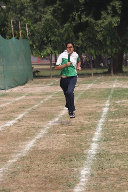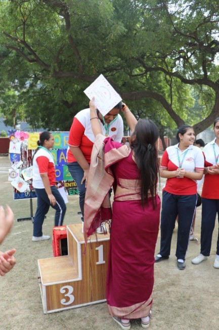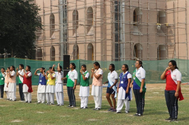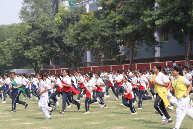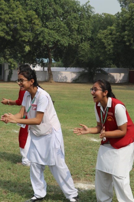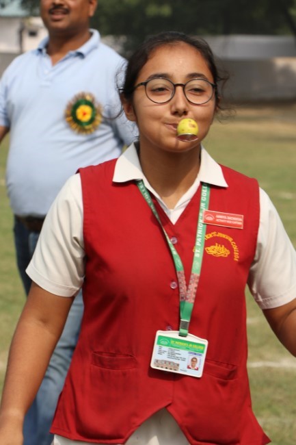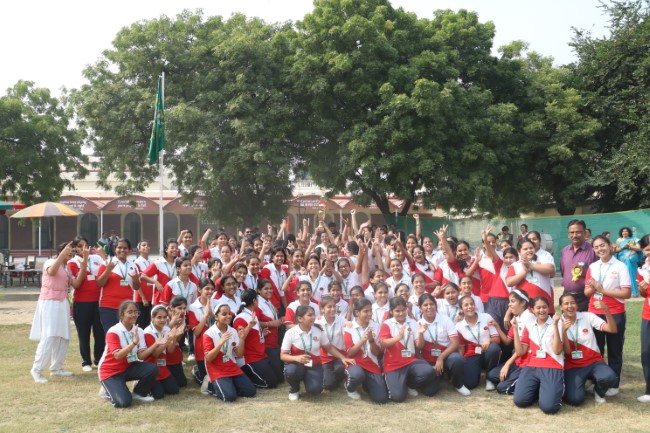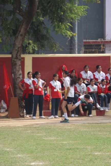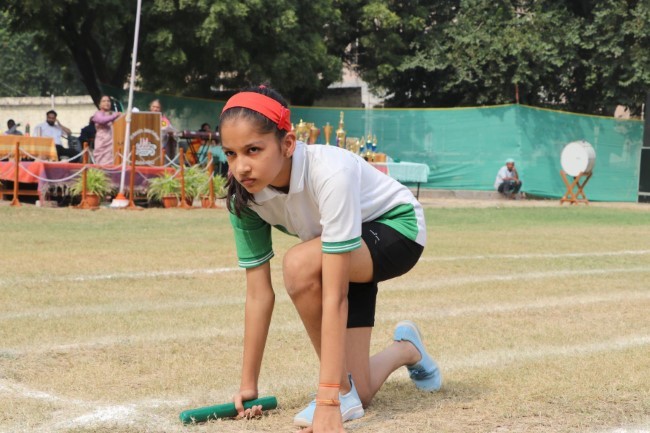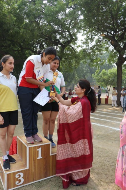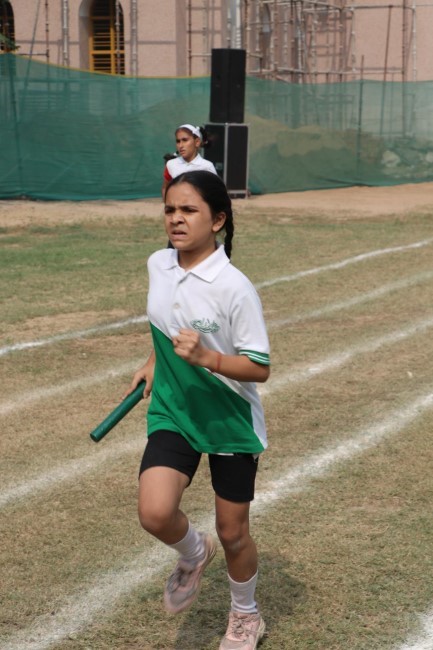The event started with the March Past performed by the four houses of the school led by the Cabinet Members followed by the Torch Bearing Ceremony. The torch bearers were Shrinika Bhatia, who was the Best Athlete for the academic session 2022-23 in the Sub-Junior Category handed over to Gauri Kaushal, the Best Athlete for the Junior Category and further handed over to Samridhi Sharma, the Sports Captain of the College.