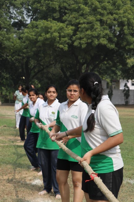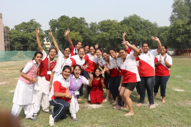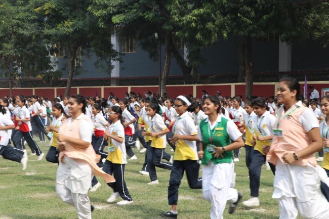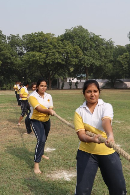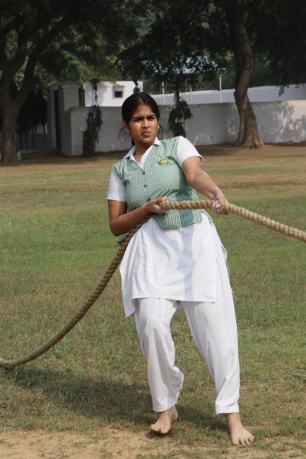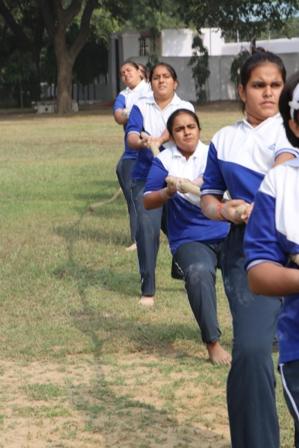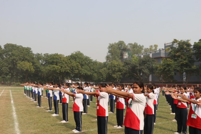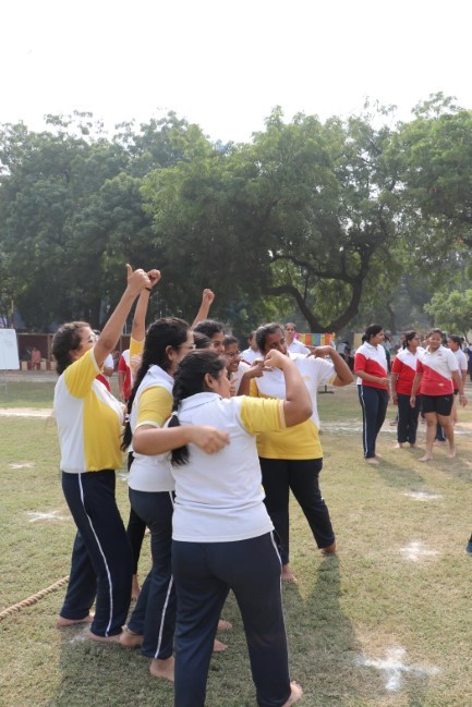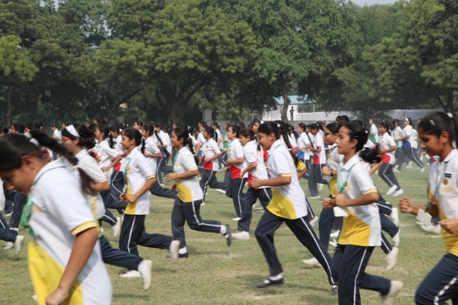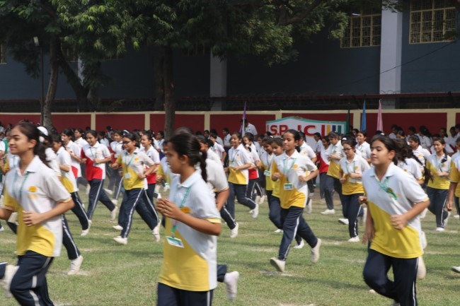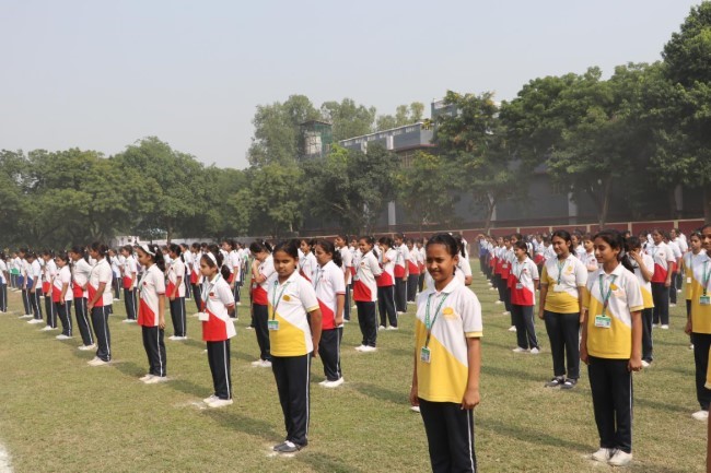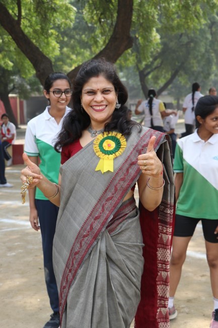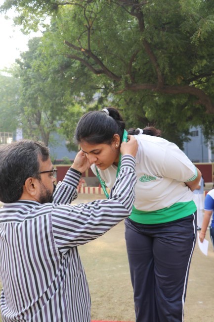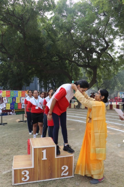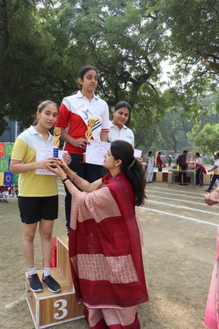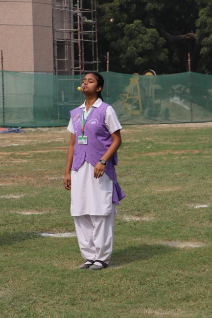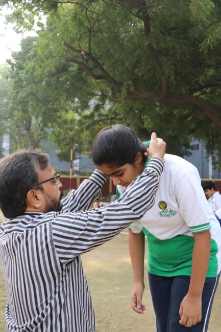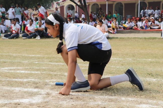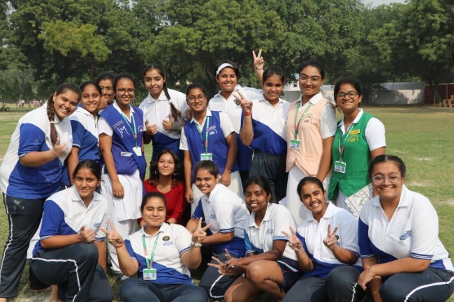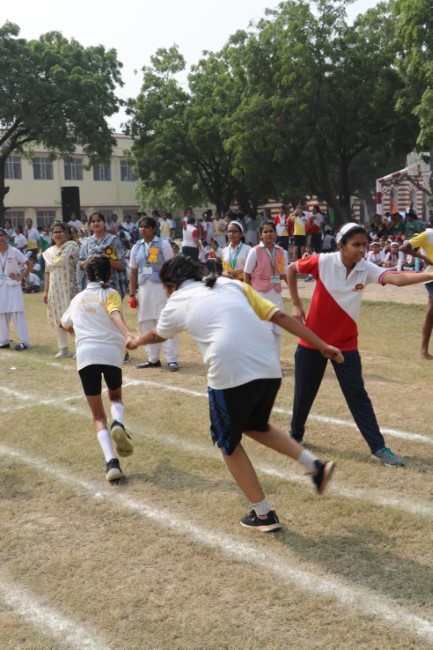 The event started with the March Past performed by the four houses of the school led by the Cabinet Members followed by the Torch Bearing Ceremony. The torch bearers were Shrinika Bhatia, who was the Best Athlete for the academic session 2022-23 in the Sub-Junior Category handed over to Gauri Kaushal, the Best Athlete for the Junior Category and further handed over to Samridhi Sharma, the Sports Captain of the College.