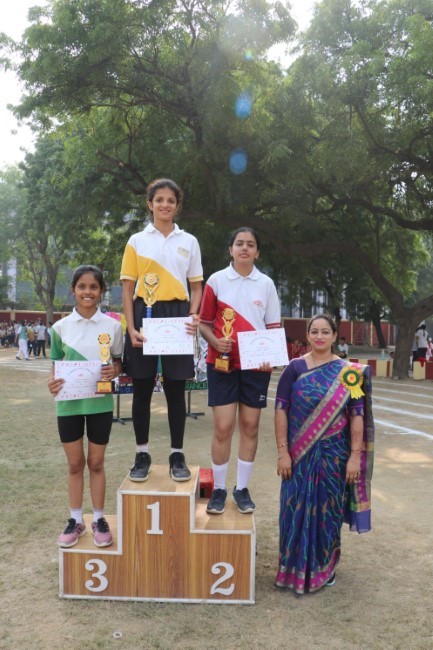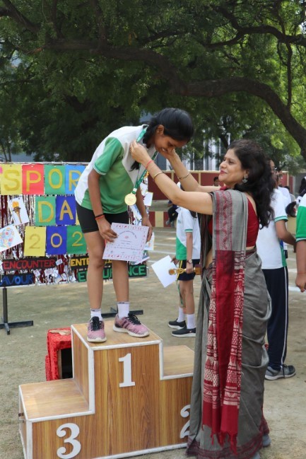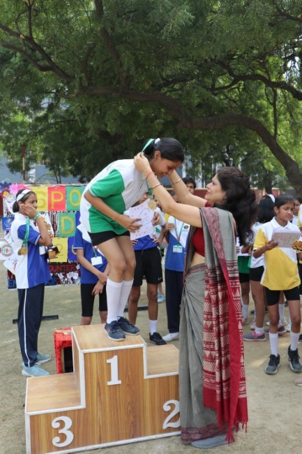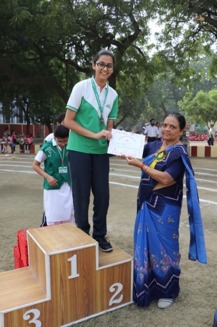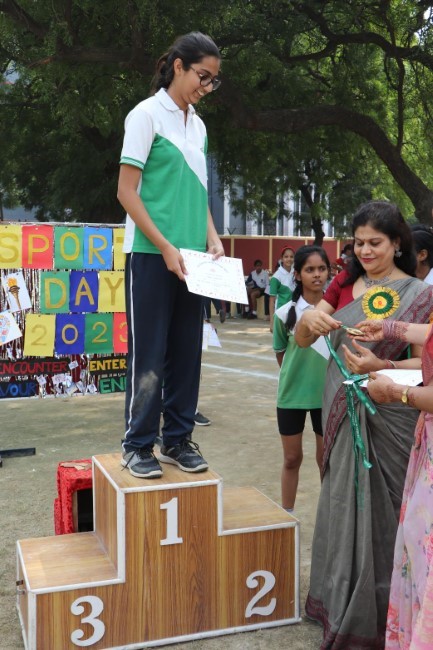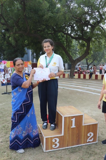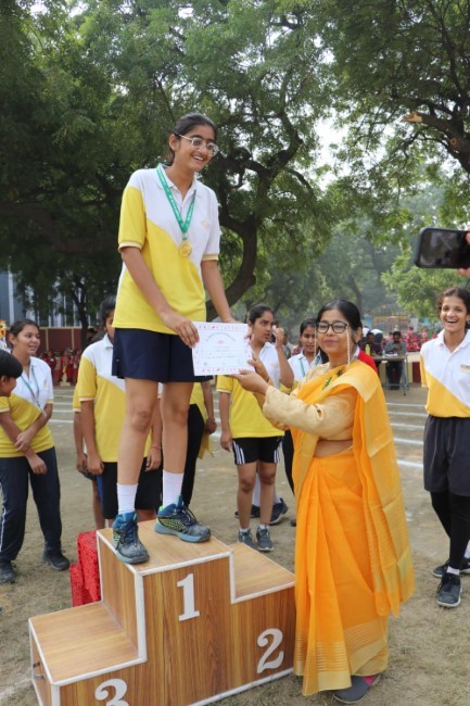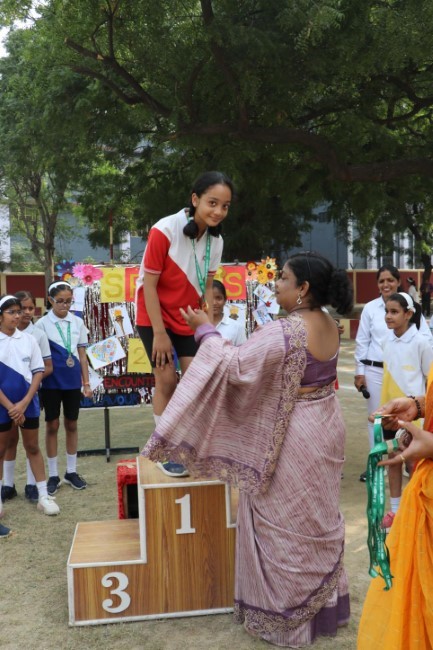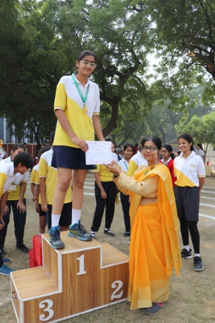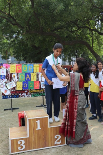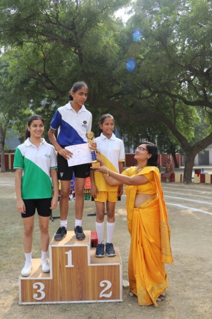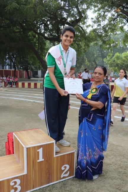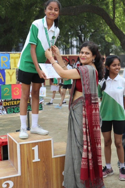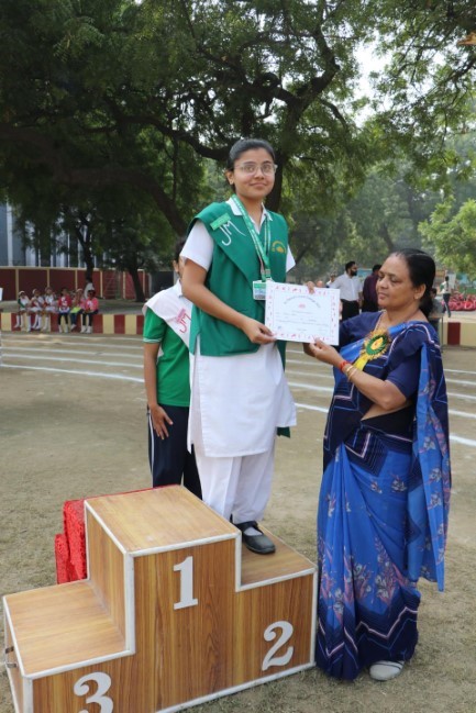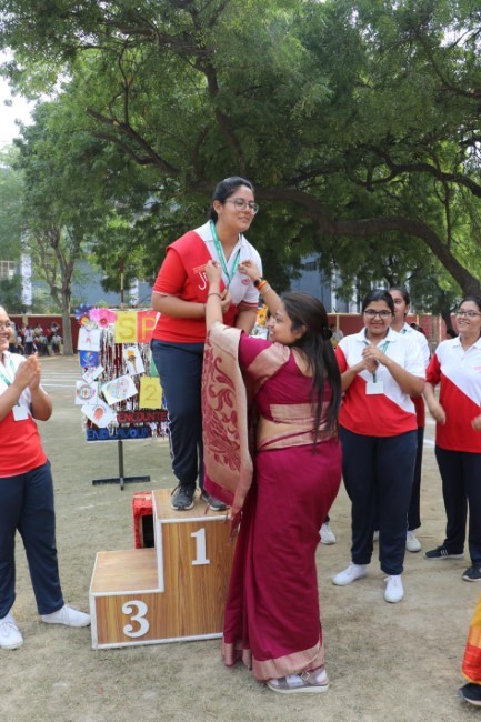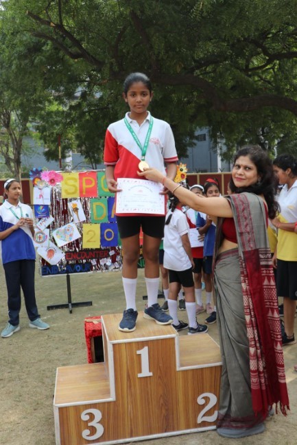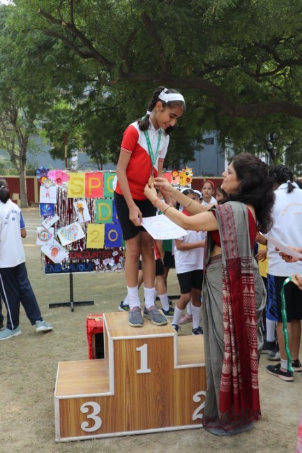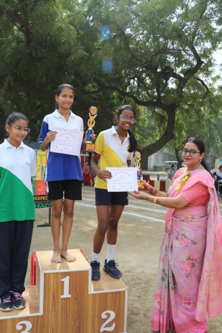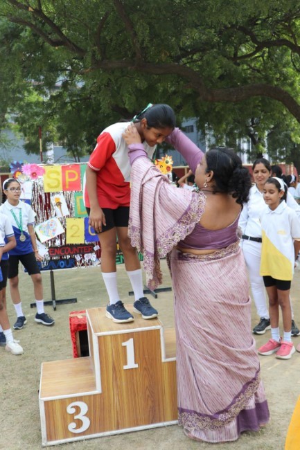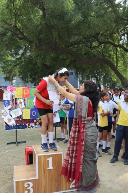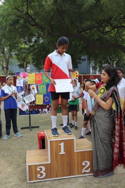 Overall Champion was the Encounter House. Endeavour House was adjudged as the Best House for March Past. The Athlete for the session 2023-24 for Sub-Junior Category was Suryanshi Jain, in the Junior Category Alankrita Kumar bagged the price and Vriddhi Surana became the Best Athlete of the Senior Category. The Student of The Year 2023 was awarded to Samridhi Sharma of XII Science.