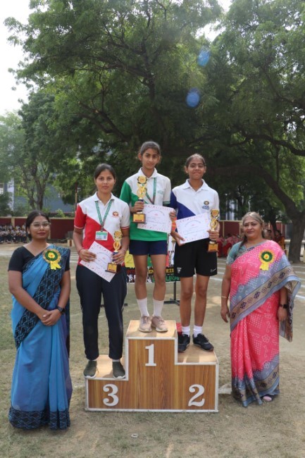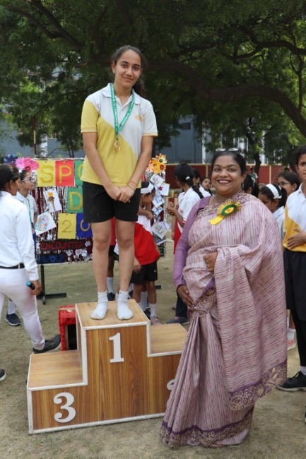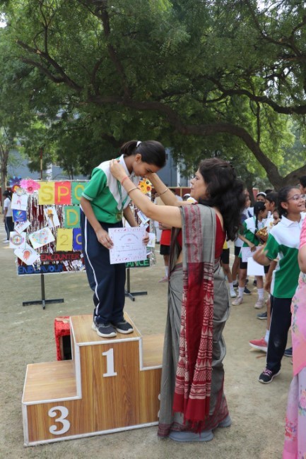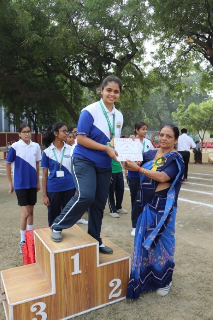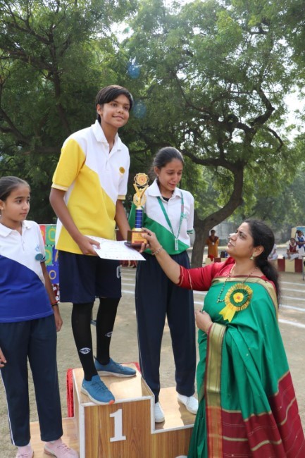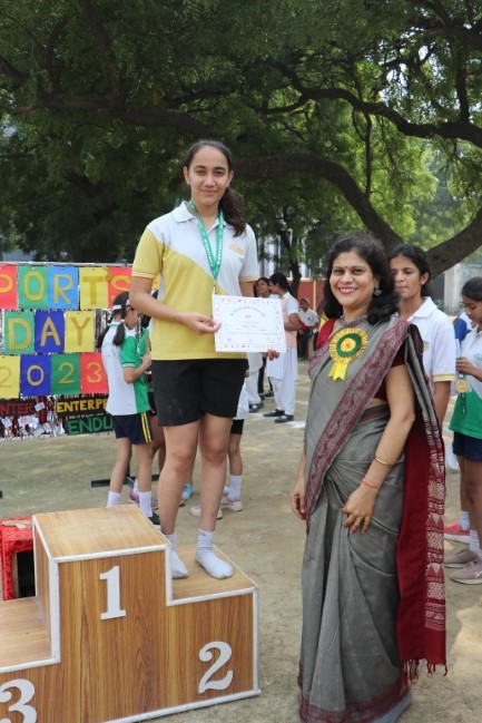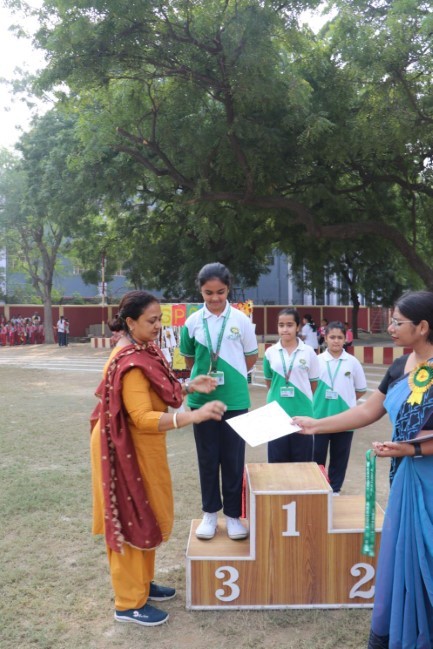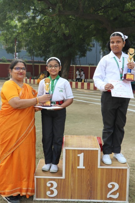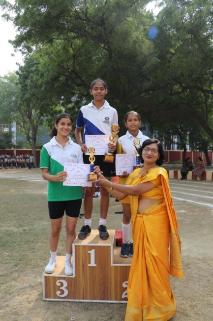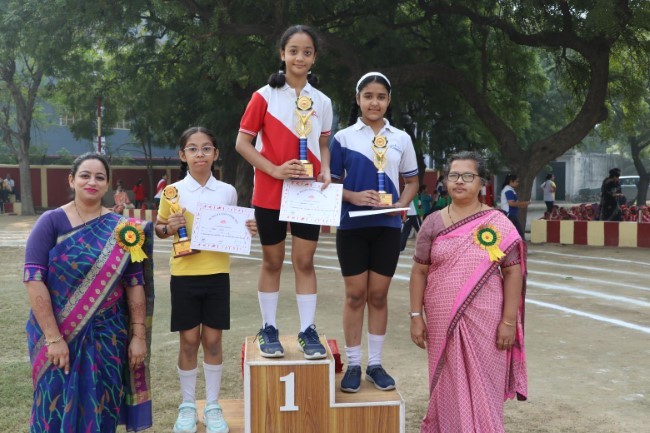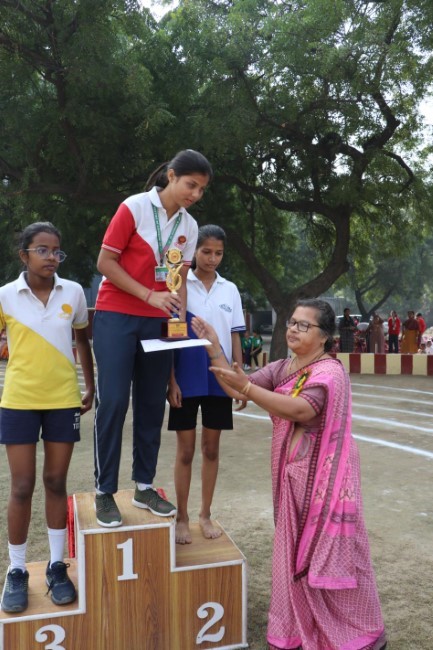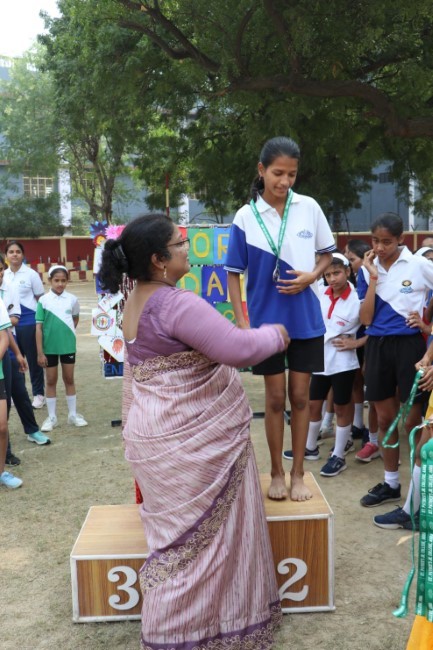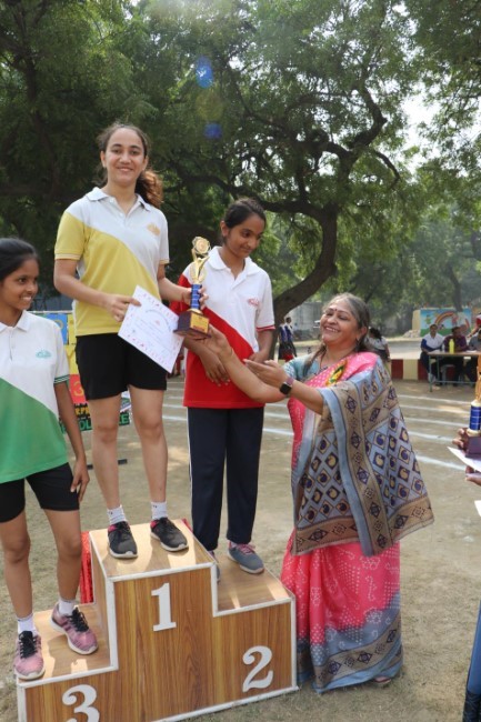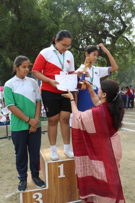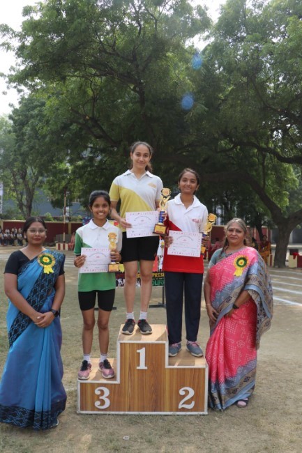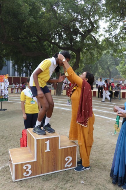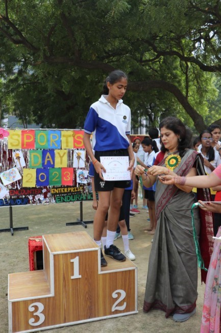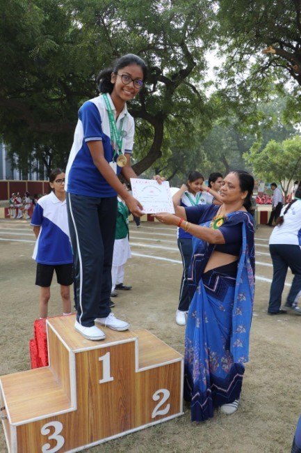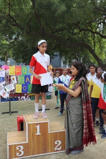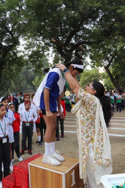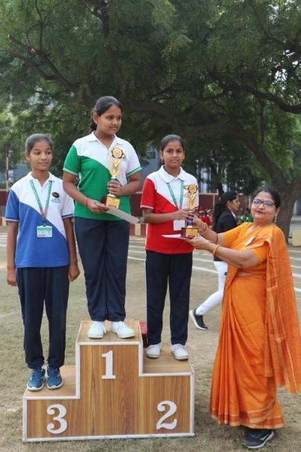 Overall Champion was the Encounter House. Endeavour House was adjudged as the Best House for March Past. The Athlete for the session 2023-24 for Sub-Junior Category was Suryanshi Jain, in the Junior Category Alankrita Kumar bagged the price and Vriddhi Surana became the Best Athlete of the Senior Category. The Student of The Year 2023 was awarded to Samridhi Sharma of XII Science.