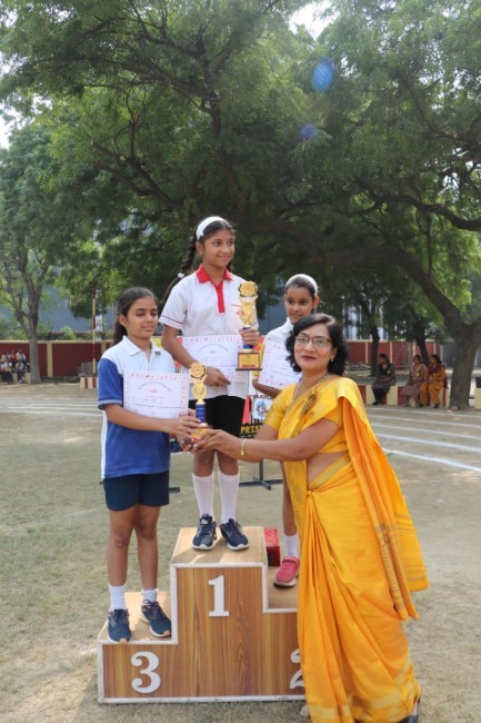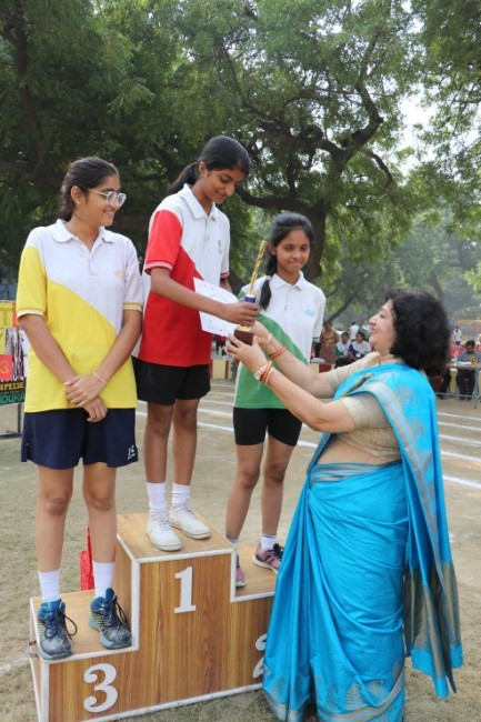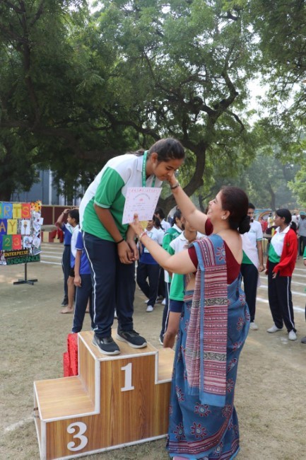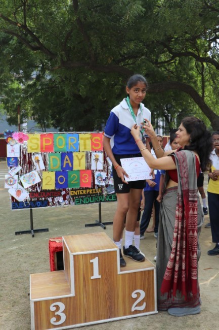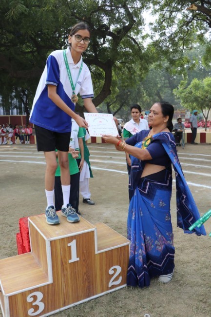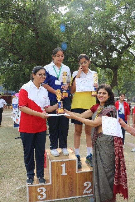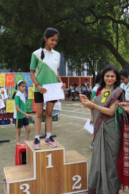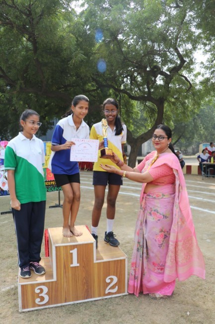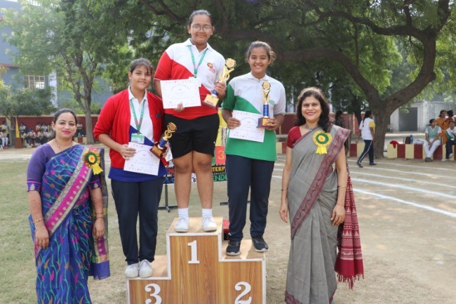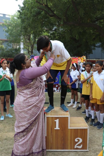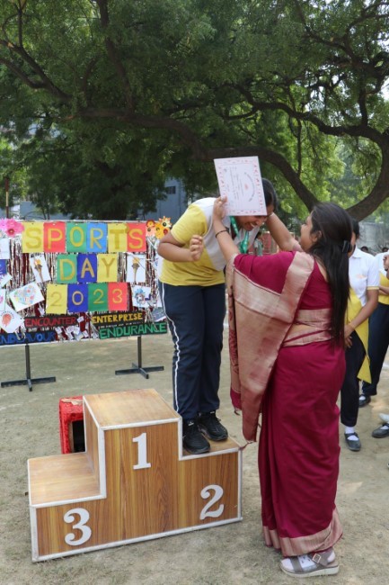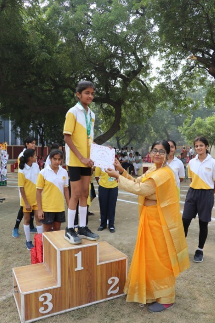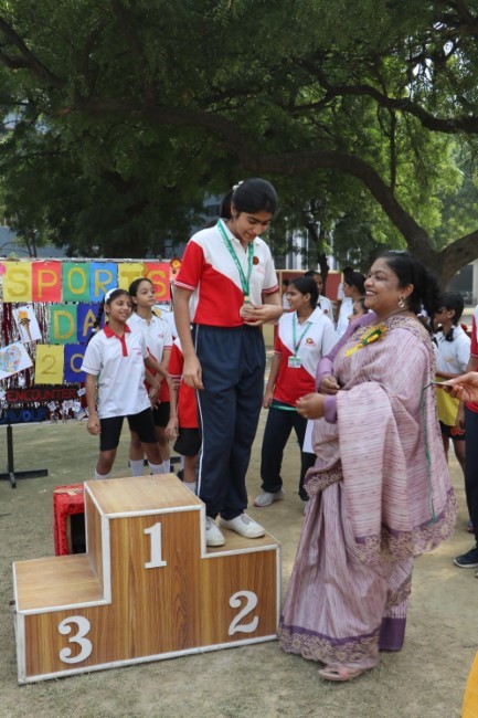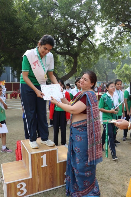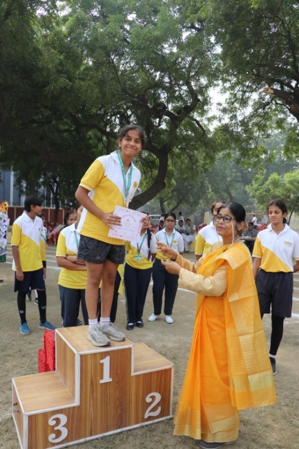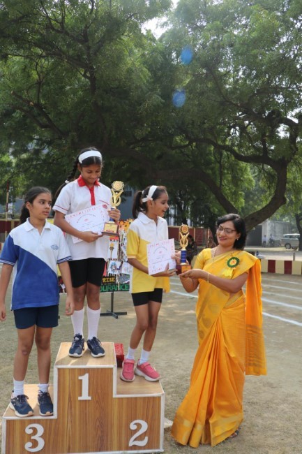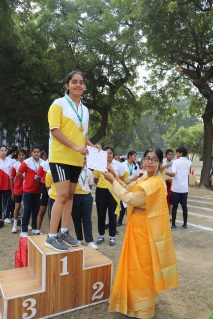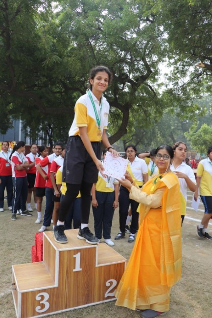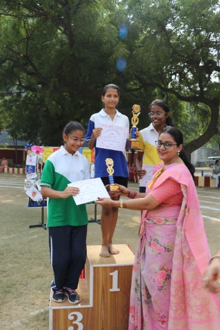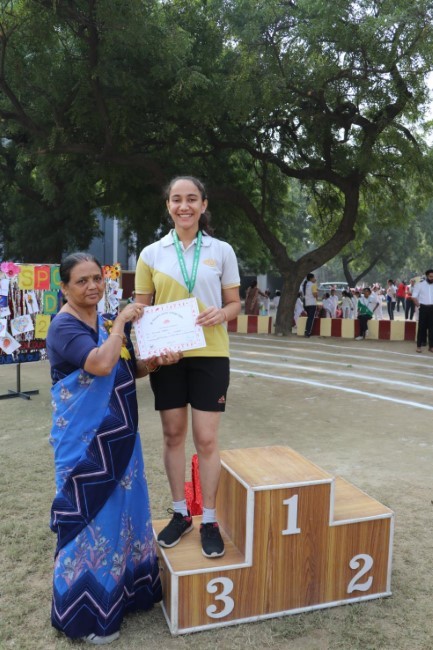 Overall Champion was the Encounter House. Endeavour House was adjudged as the Best House for March Past. The Athlete for the session 2023-24 for Sub-Junior Category was Suryanshi Jain, in the Junior Category Alankrita Kumar bagged the price and Vriddhi Surana became the Best Athlete of the Senior Category. The Student of The Year 2023 was awarded to Samridhi Sharma of XII Science.