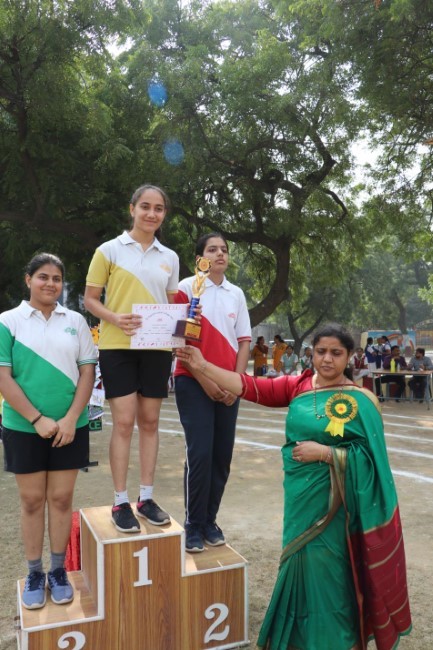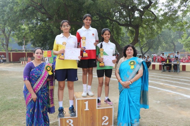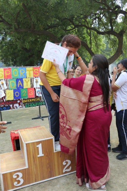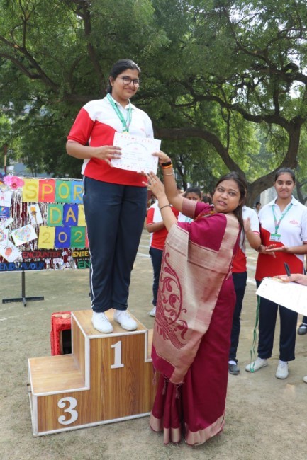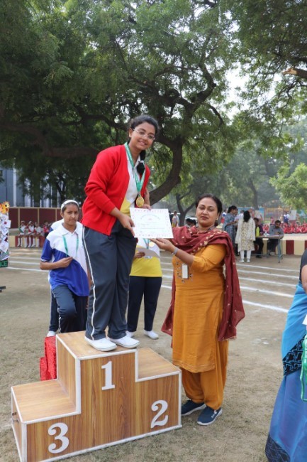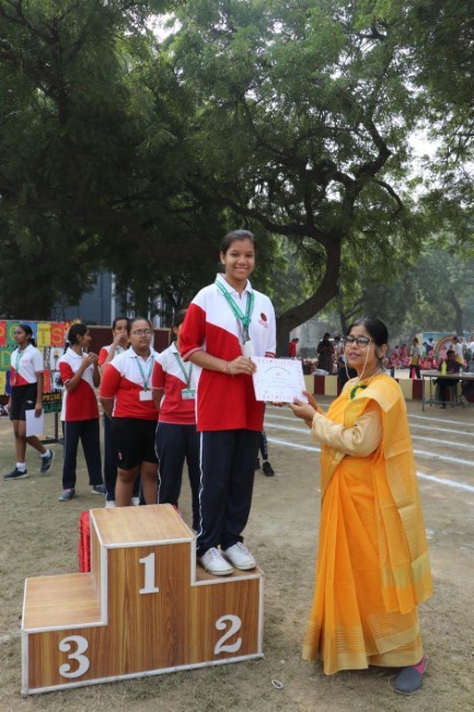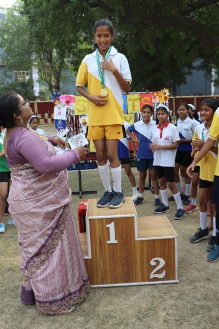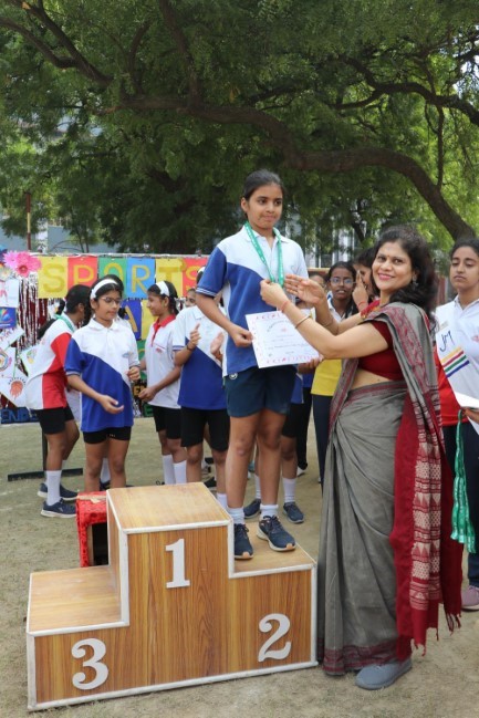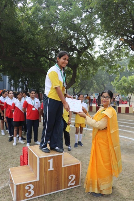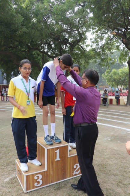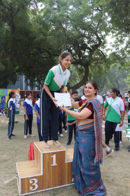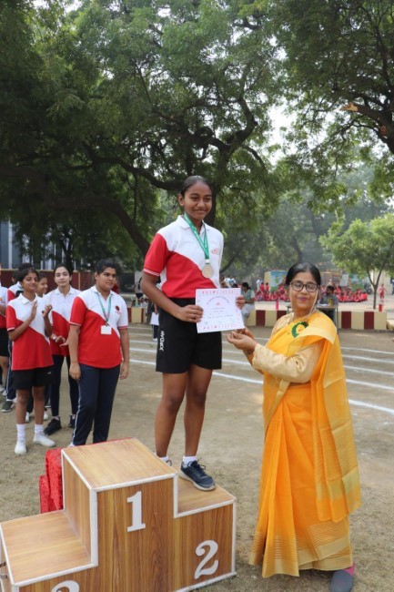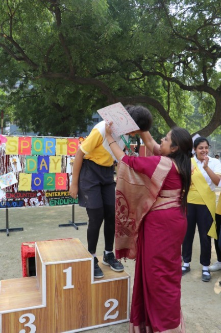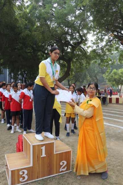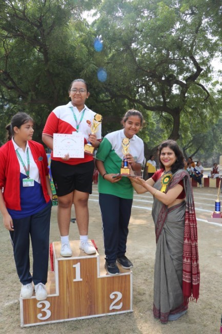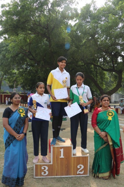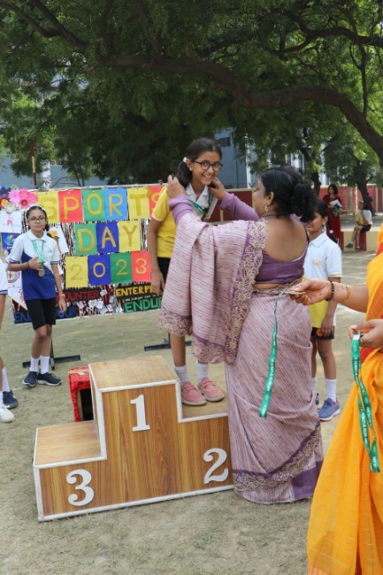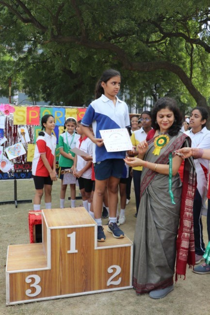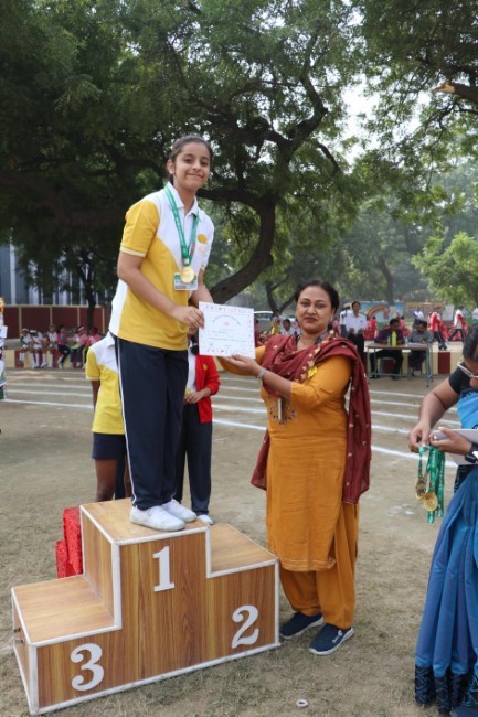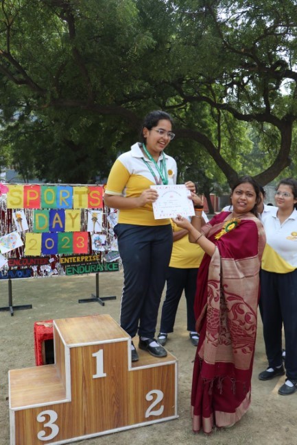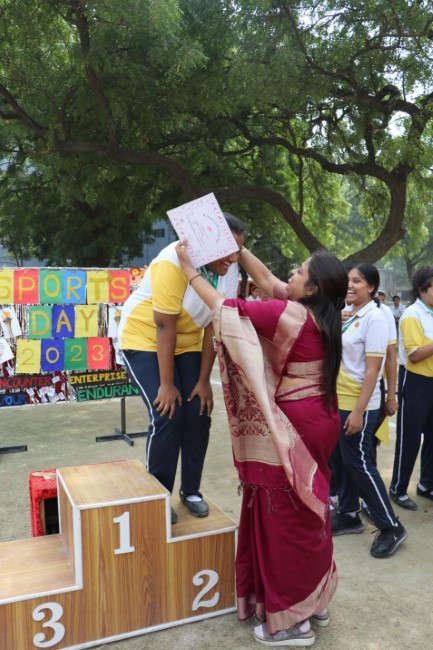 Overall Champion was the Encounter House. Endeavour House was adjudged as the Best House for March Past. The Athlete for the session 2023-24 for Sub-Junior Category was Suryanshi Jain, in the Junior Category Alankrita Kumar bagged the price and Vriddhi Surana became the Best Athlete of the Senior Category. The Student of The Year 2023 was awarded to Samridhi Sharma of XII Science.