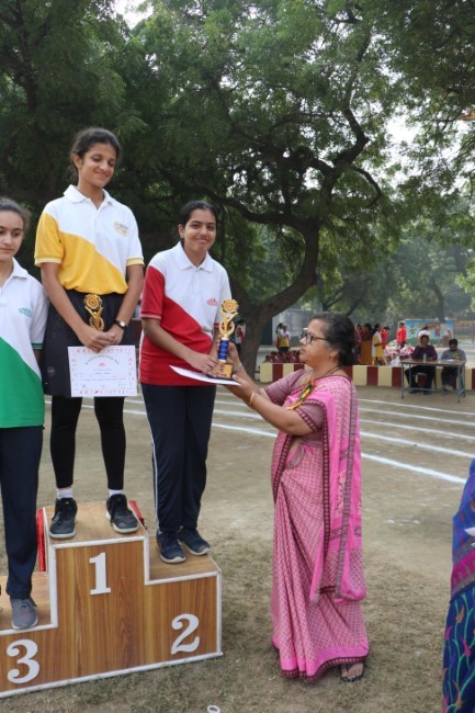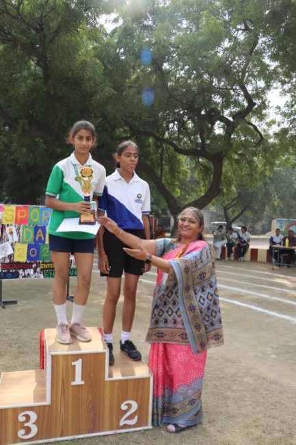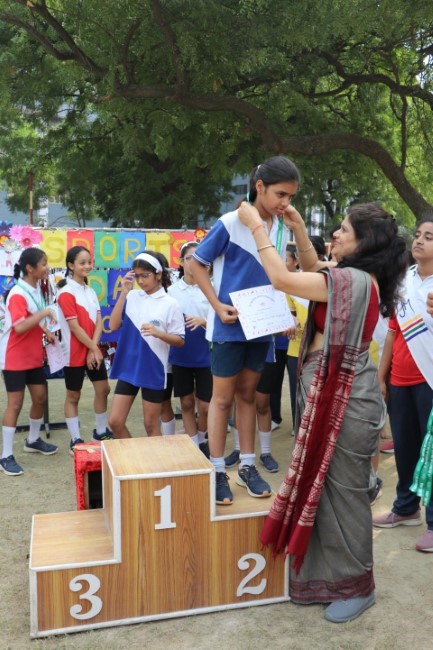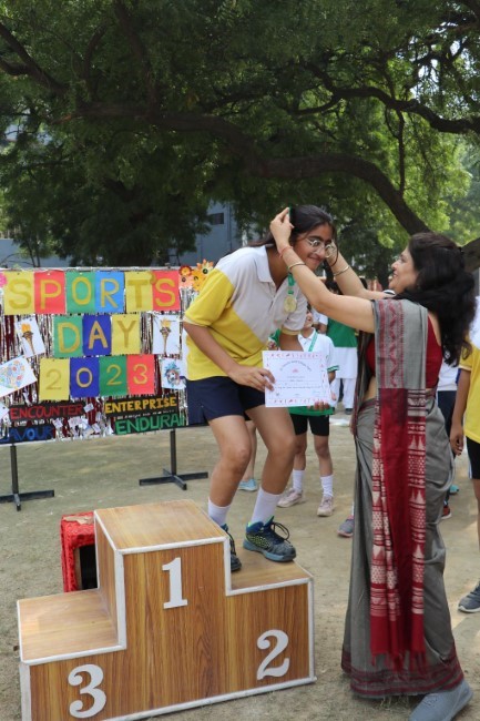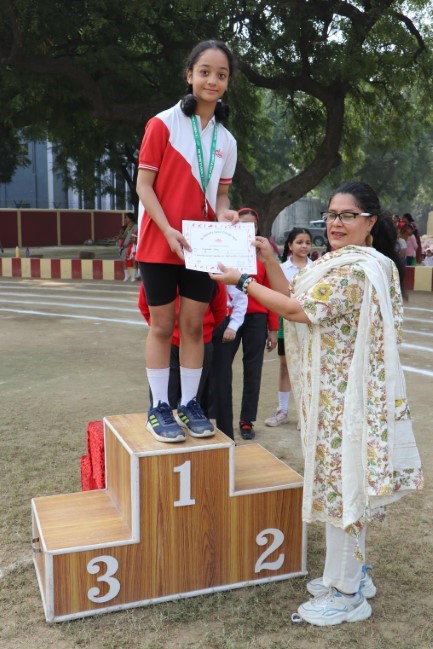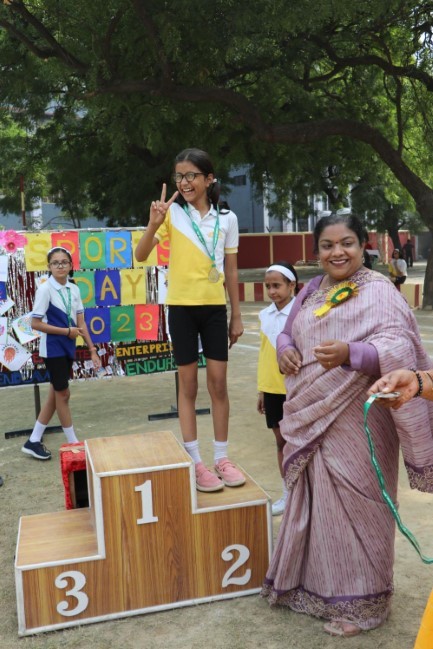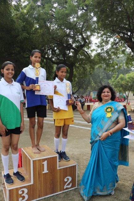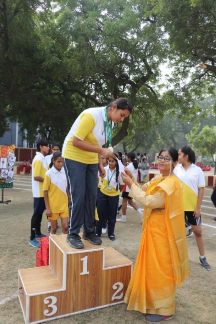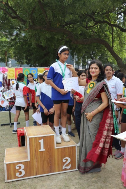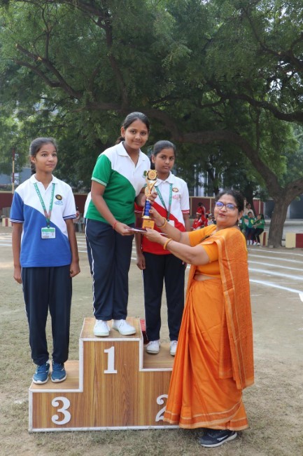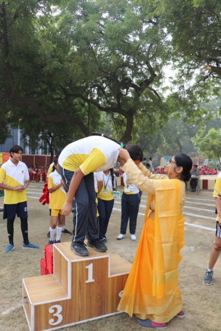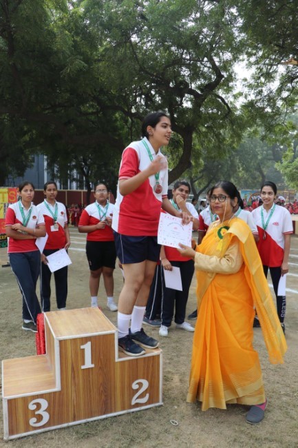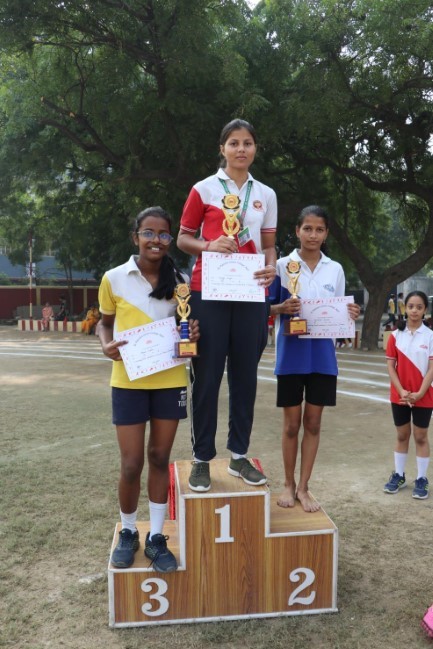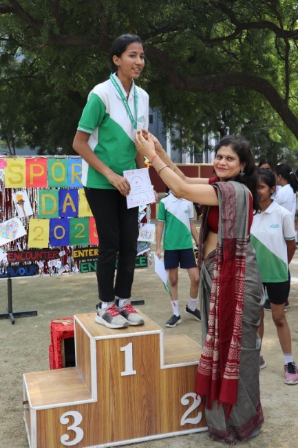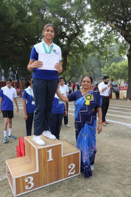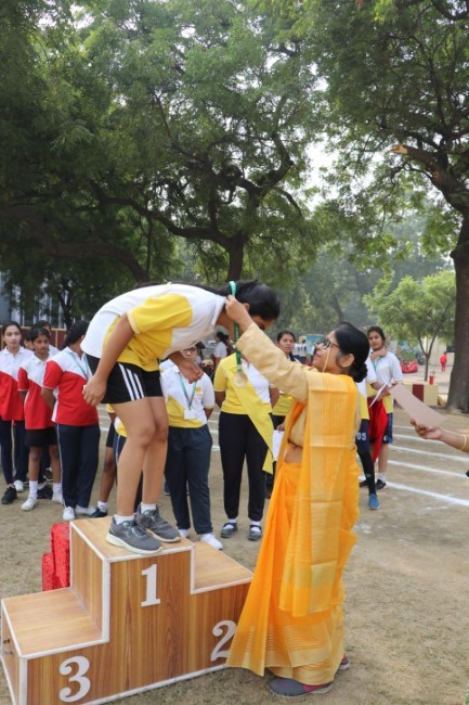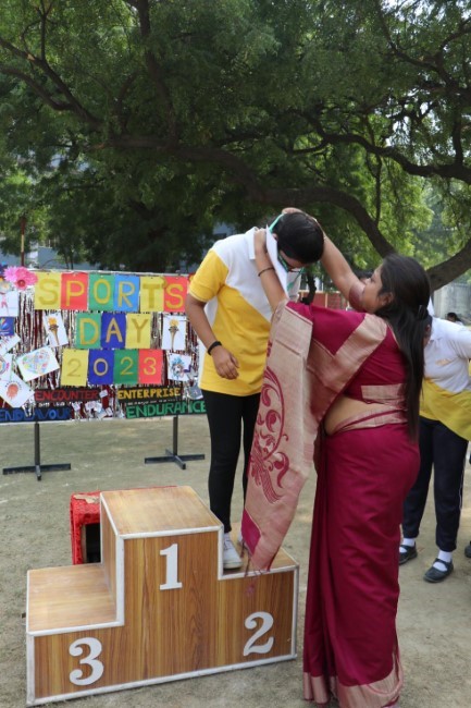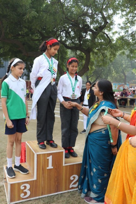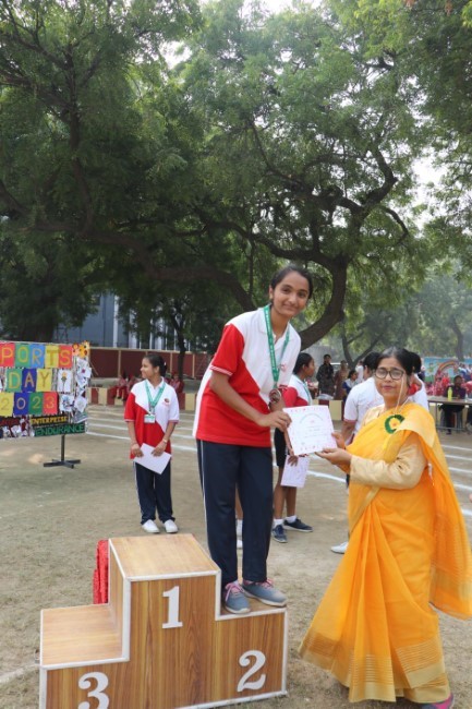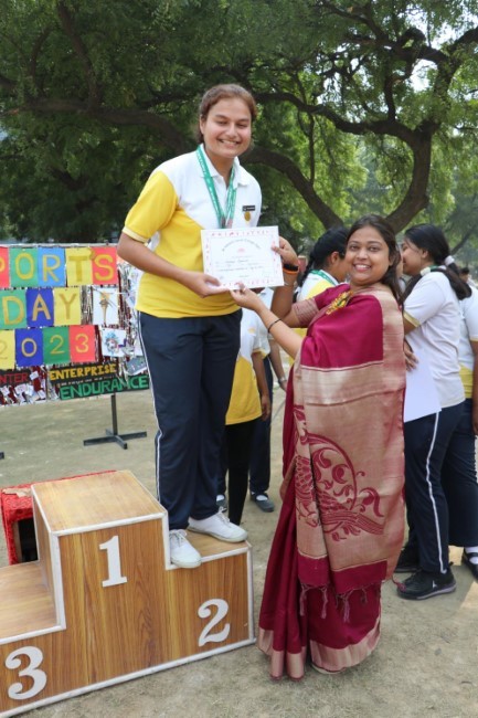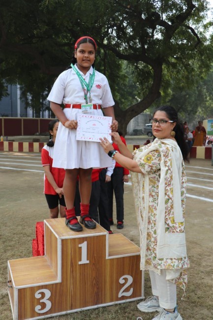 Overall Champion was the Encounter House. Endeavour House was adjudged as the Best House for March Past. The Athlete for the session 2023-24 for Sub-Junior Category was Suryanshi Jain, in the Junior Category Alankrita Kumar bagged the price and Vriddhi Surana became the Best Athlete of the Senior Category. The Student of The Year 2023 was awarded to Samridhi Sharma of XII Science.