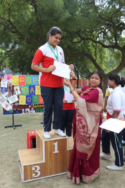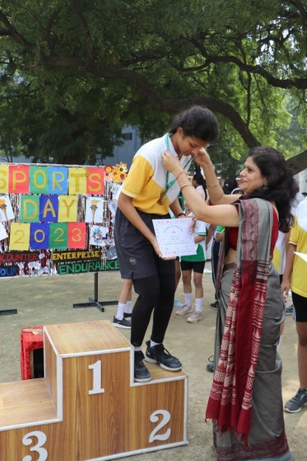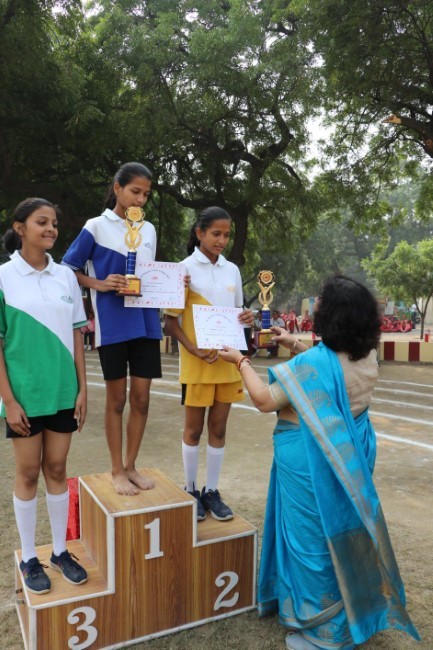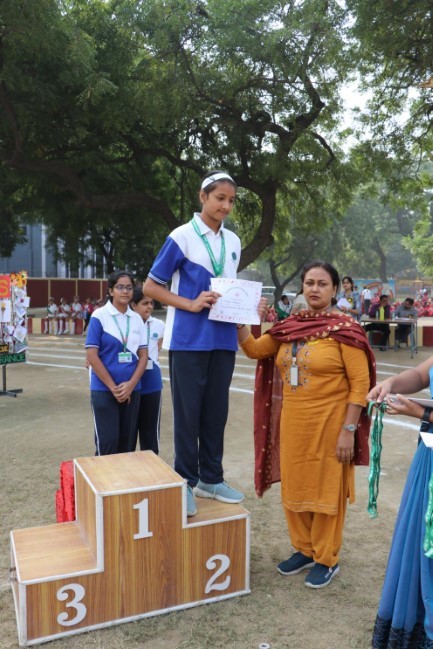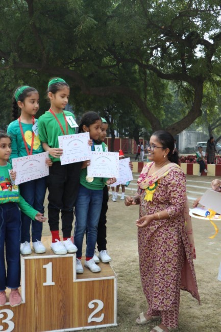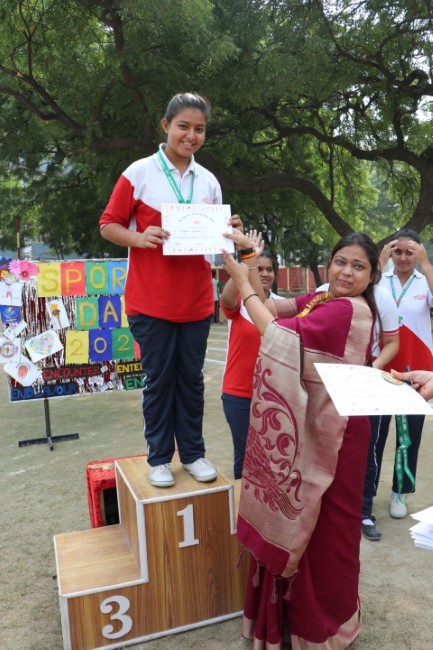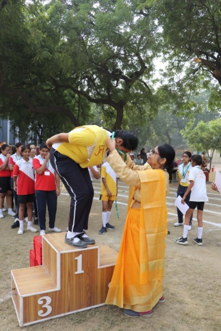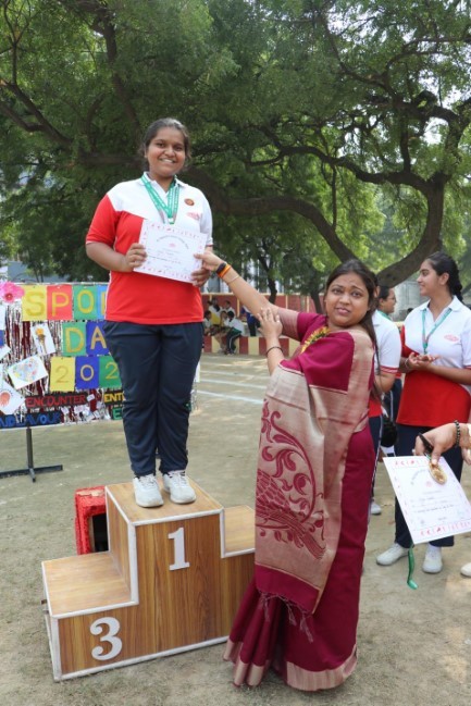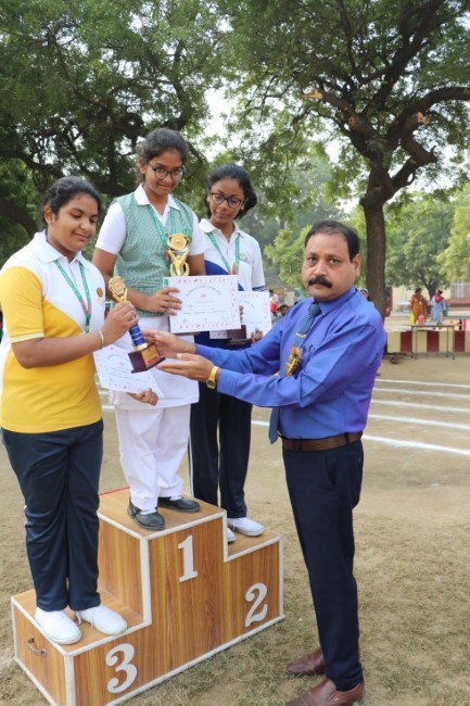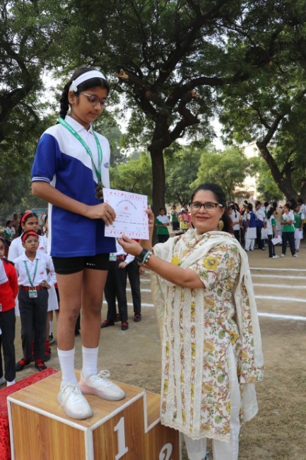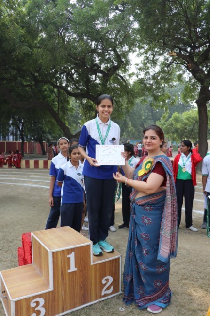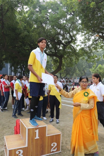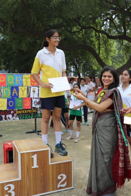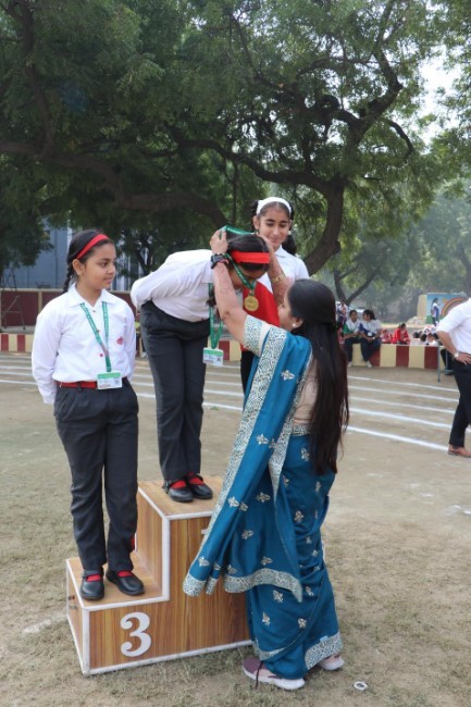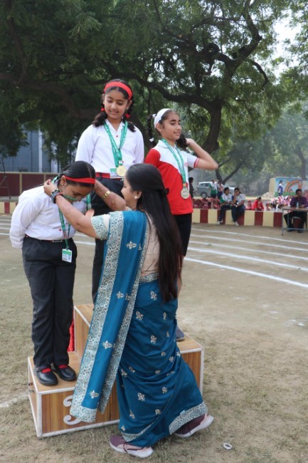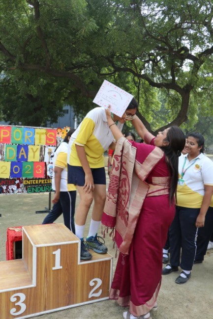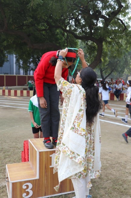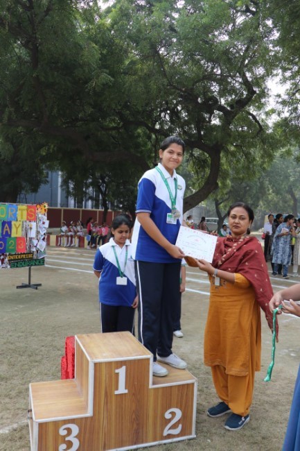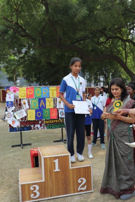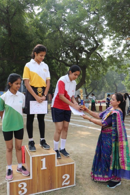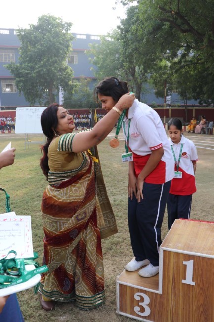 Overall Champion was the Encounter House. Endeavour House was adjudged as the Best House for March Past. The Athlete for the session 2023-24 for Sub-Junior Category was Suryanshi Jain, in the Junior Category Alankrita Kumar bagged the price and Vriddhi Surana became the Best Athlete of the Senior Category. The Student of The Year 2023 was awarded to Samridhi Sharma of XII Science.