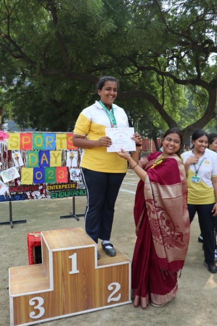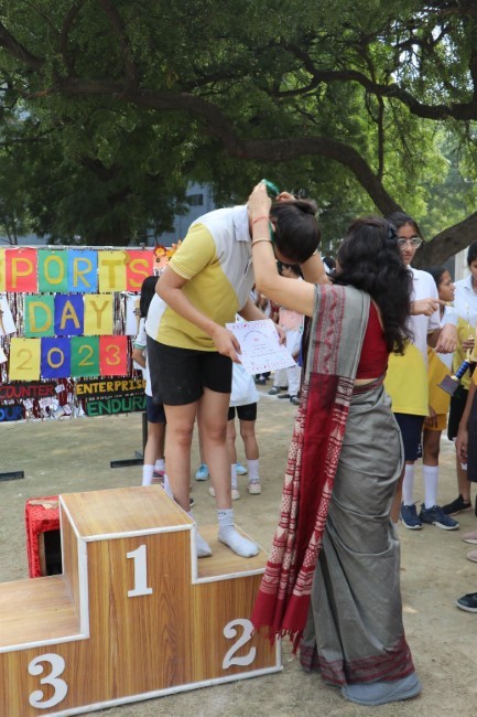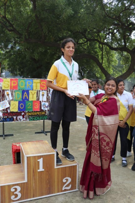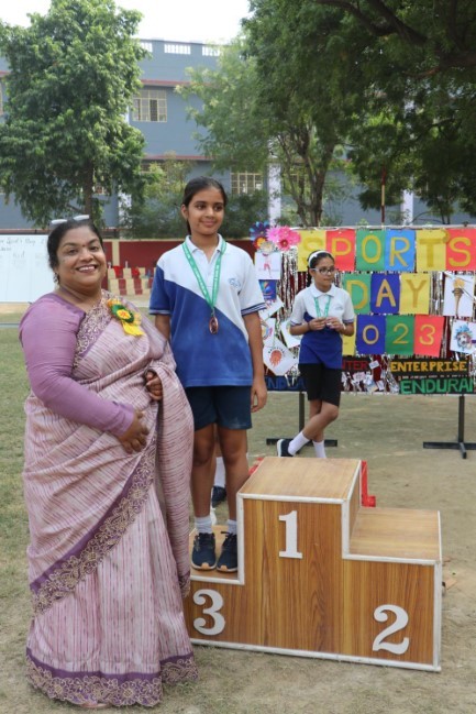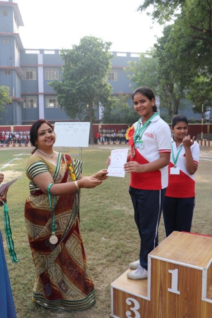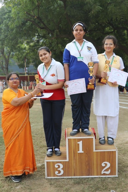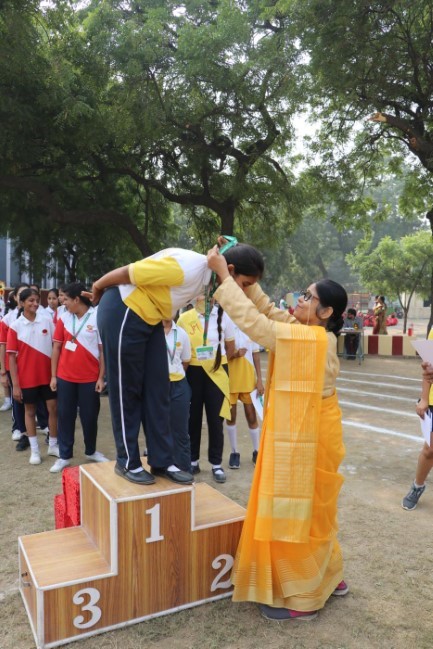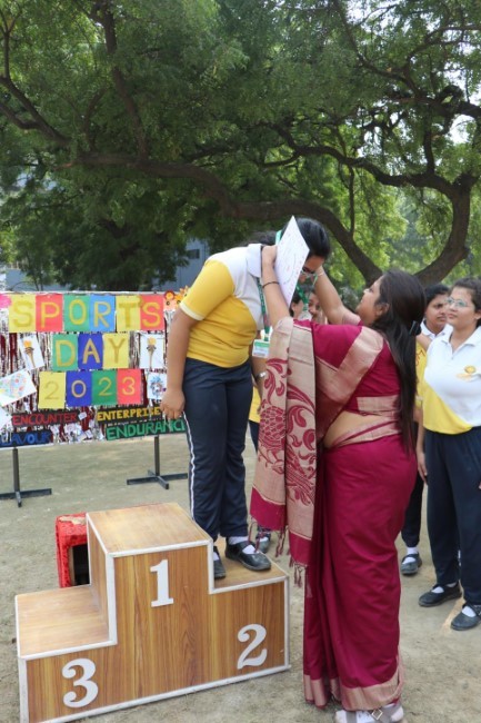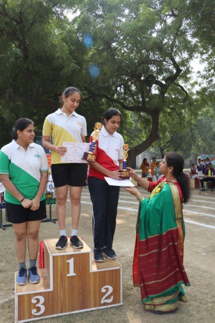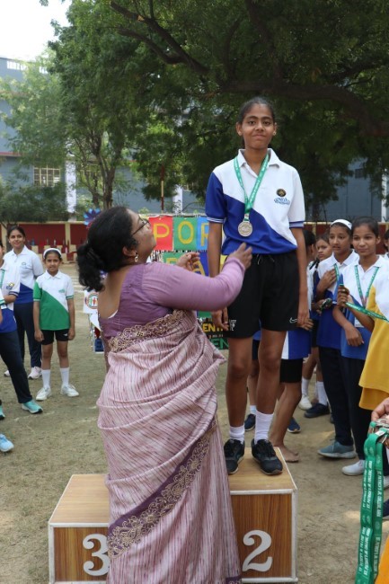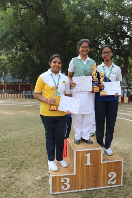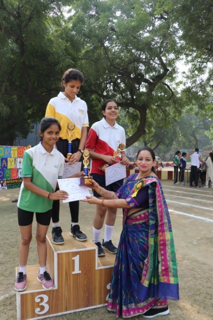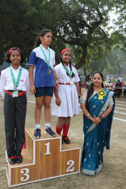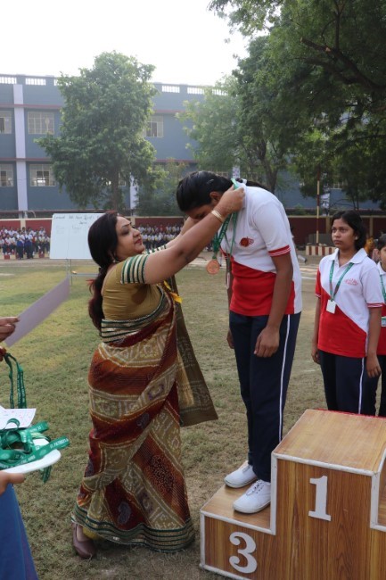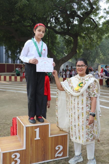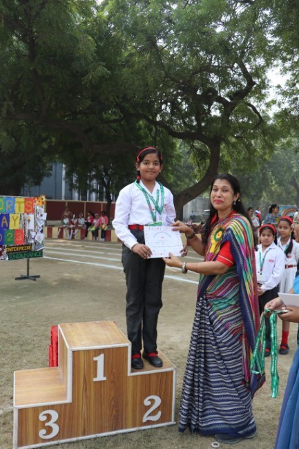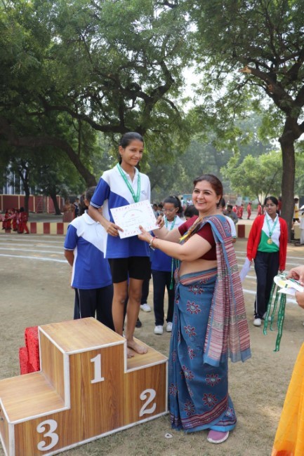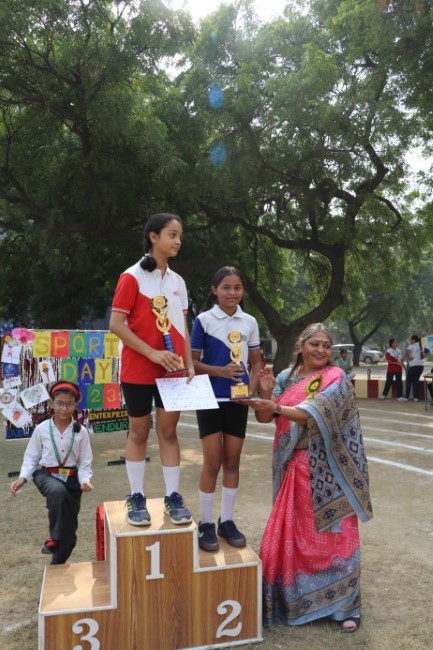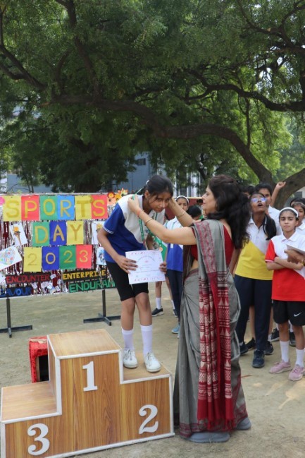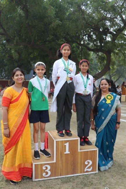 Overall Champion was the Encounter House. Endeavour House was adjudged as the Best House for March Past. The Athlete for the session 2023-24 for Sub-Junior Category was Suryanshi Jain, in the Junior Category Alankrita Kumar bagged the price and Vriddhi Surana became the Best Athlete of the Senior Category. The Student of The Year 2023 was awarded to Samridhi Sharma of XII Science.