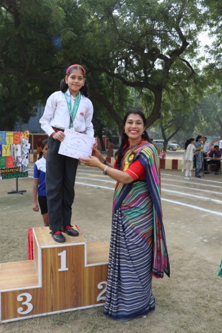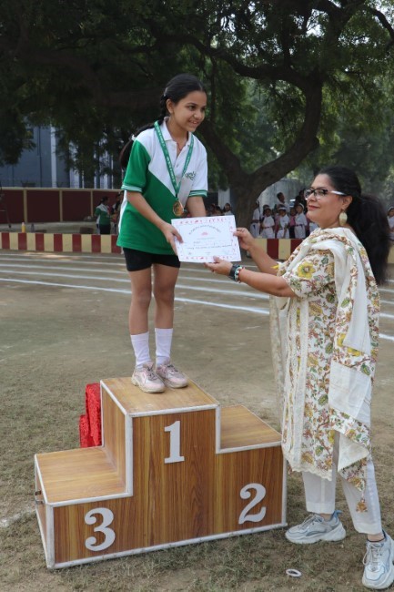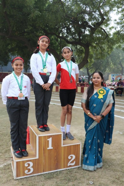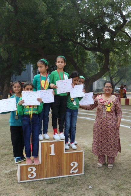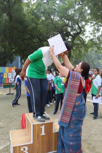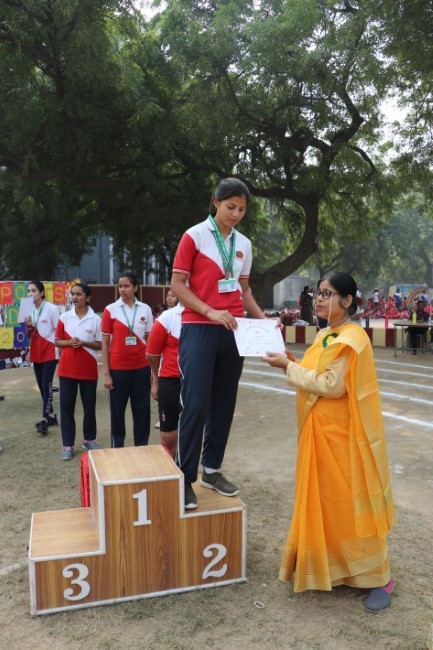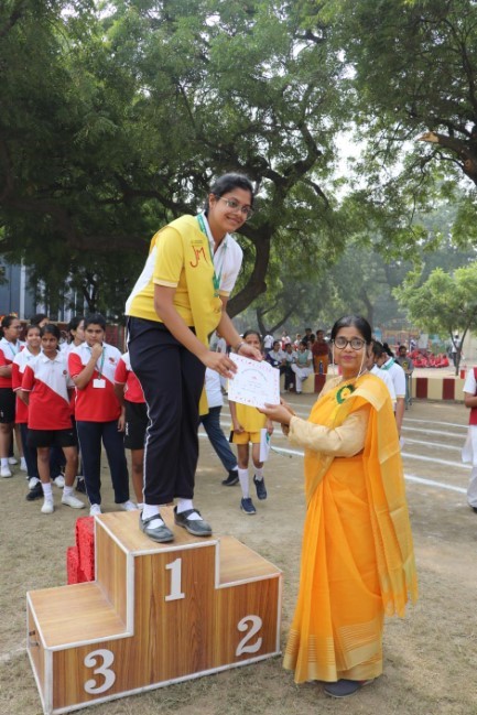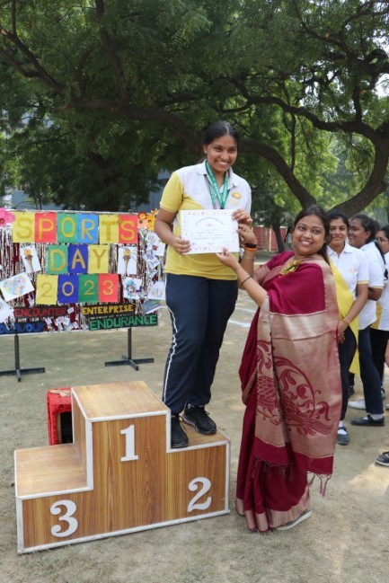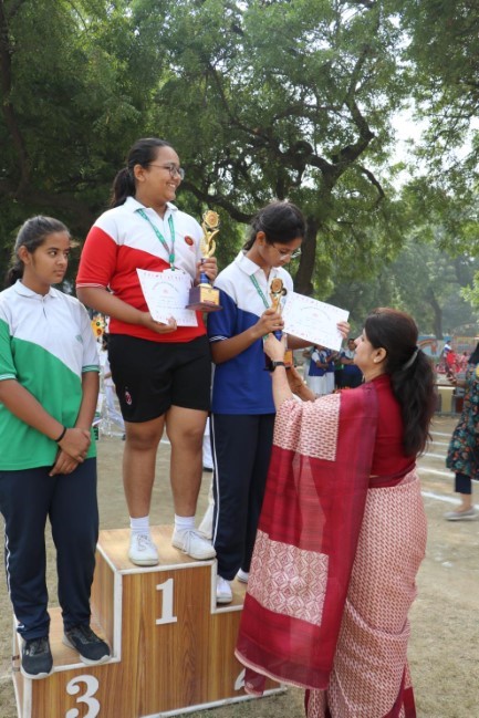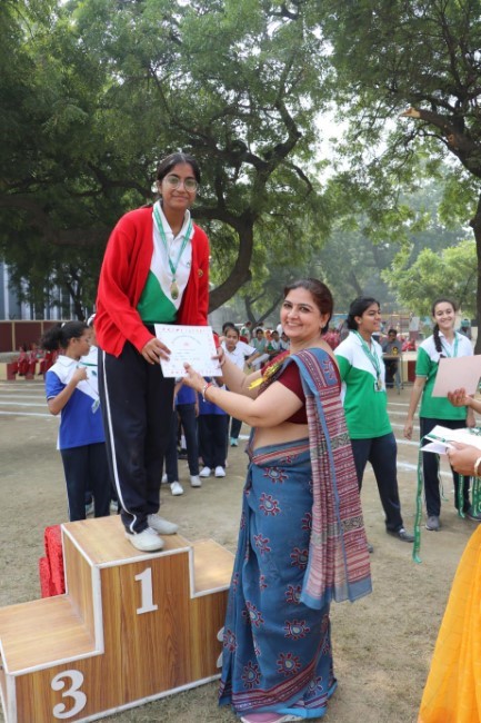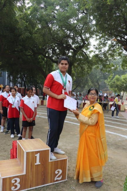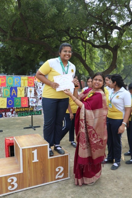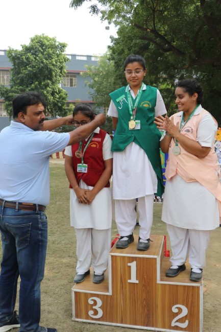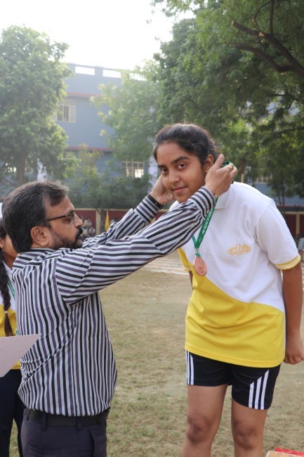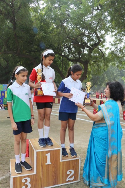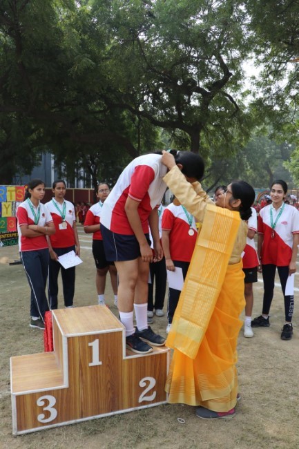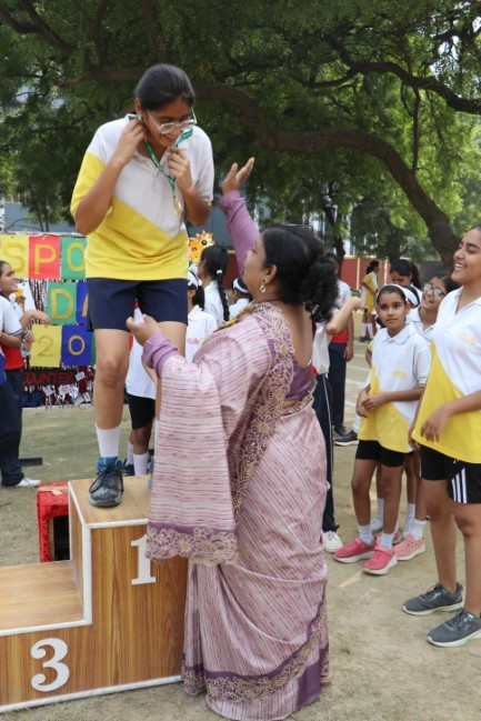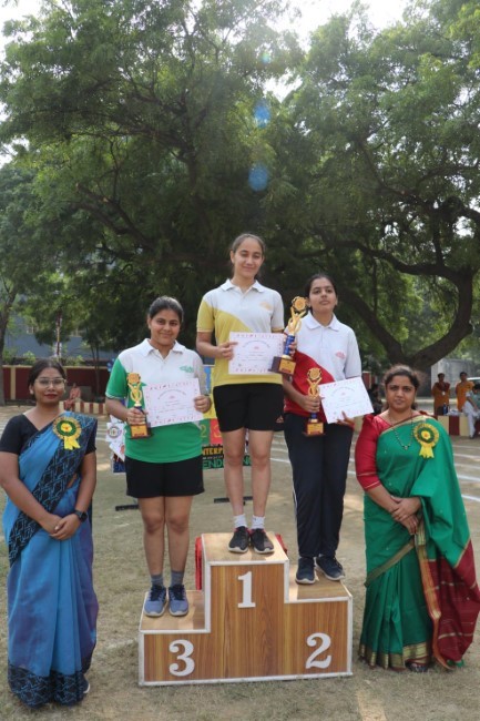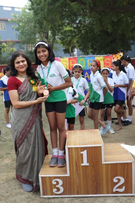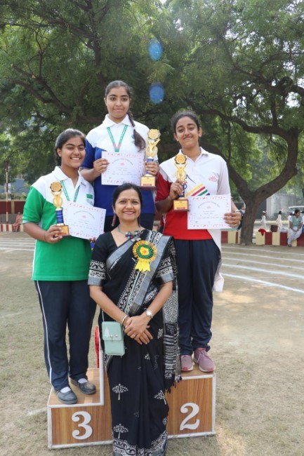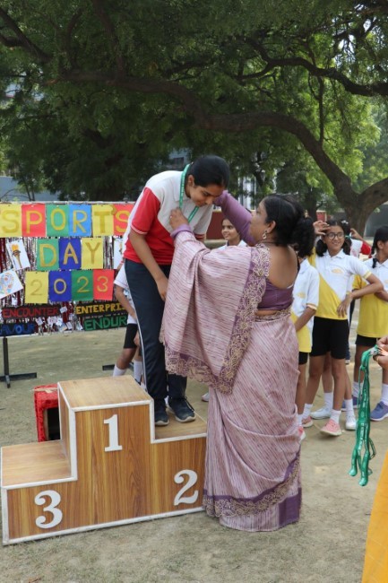 Overall Champion was the Encounter House. Endeavour House was adjudged as the Best House for March Past. The Athlete for the session 2023-24 for Sub-Junior Category was Suryanshi Jain, in the Junior Category Alankrita Kumar bagged the price and Vriddhi Surana became the Best Athlete of the Senior Category. The Student of The Year 2023 was awarded to Samridhi Sharma of XII Science.