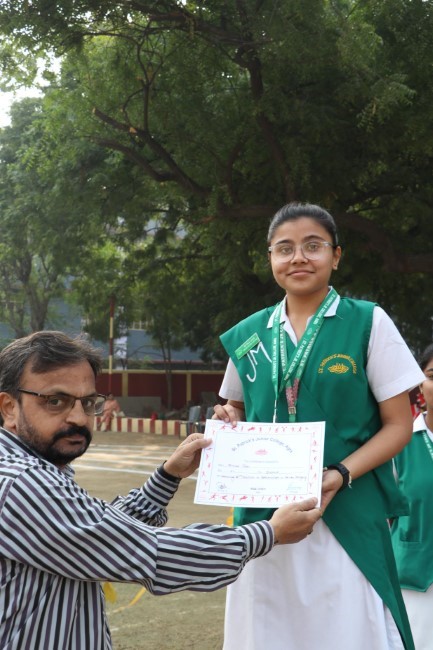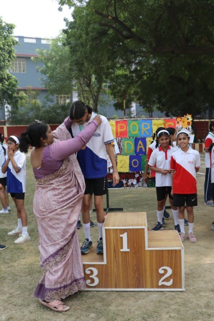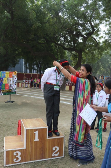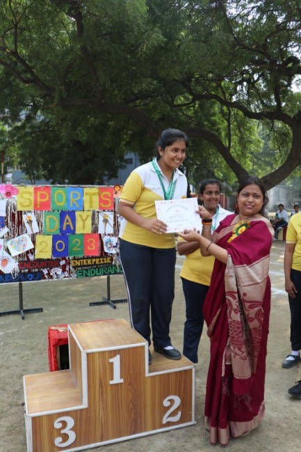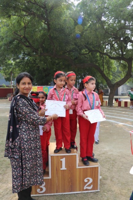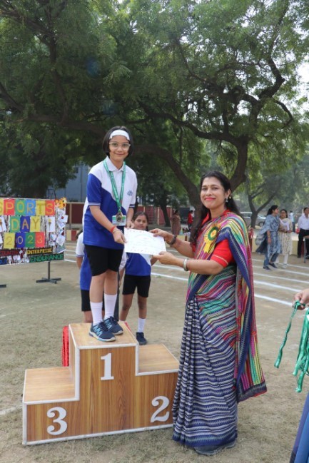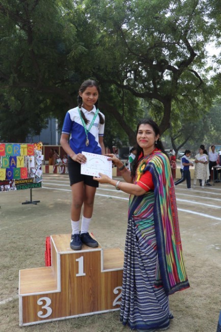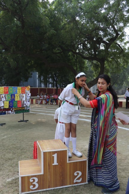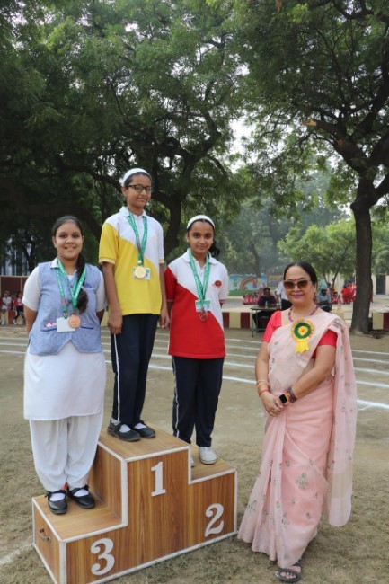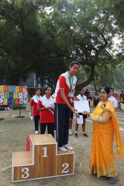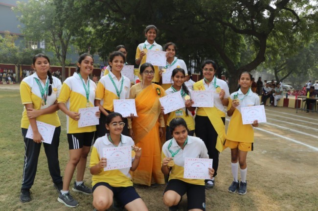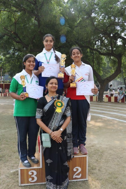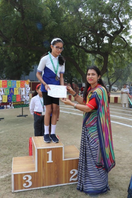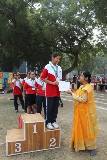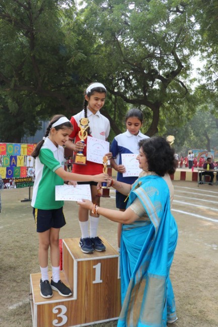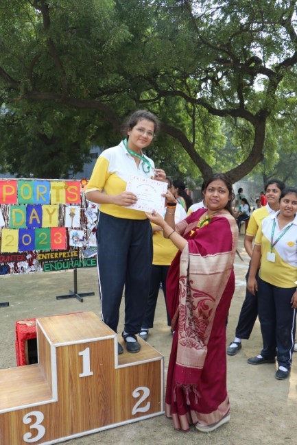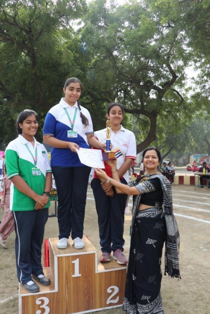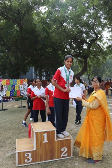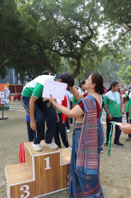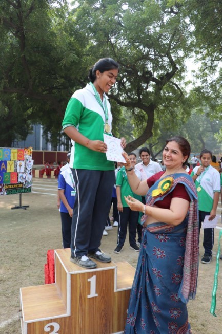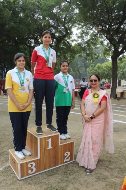 Overall Champion was the Encounter House. Endeavour House was adjudged as the Best House for March Past. The Athlete for the session 2023-24 for Sub-Junior Category was Suryanshi Jain, in the Junior Category Alankrita Kumar bagged the price and Vriddhi Surana became the Best Athlete of the Senior Category. The Student of The Year 2023 was awarded to Samridhi Sharma of XII Science.
