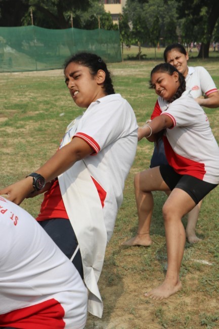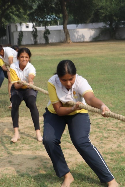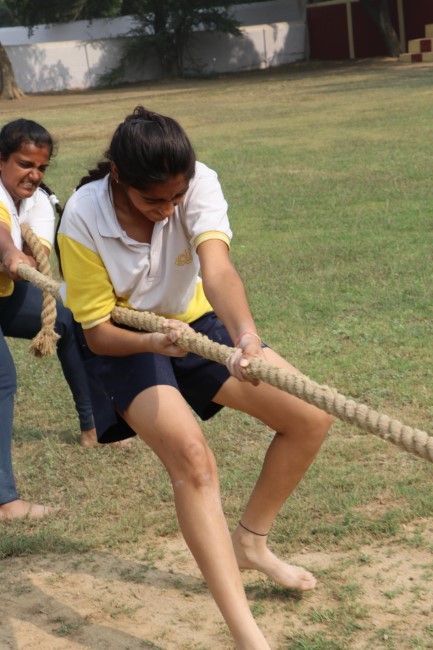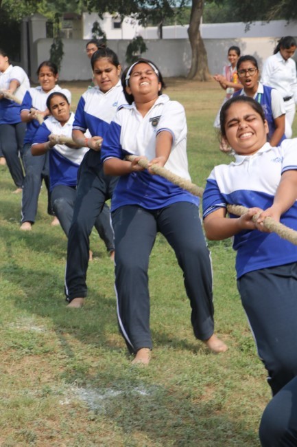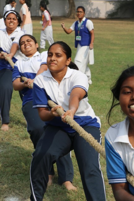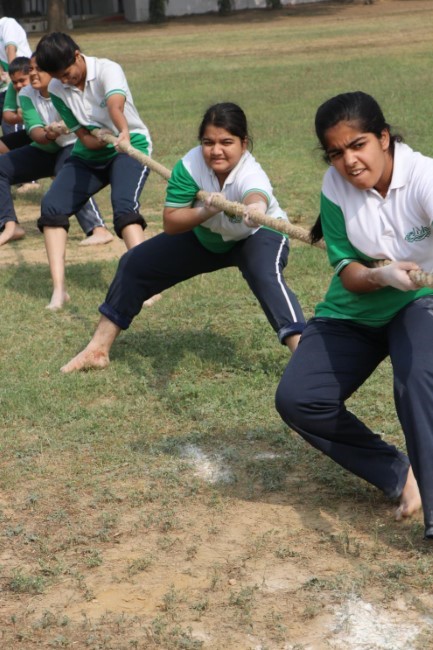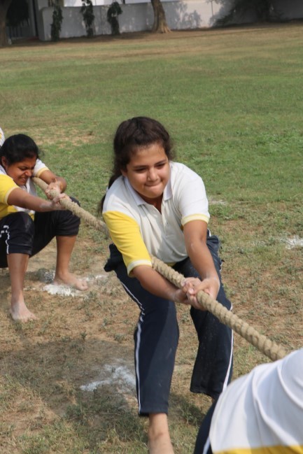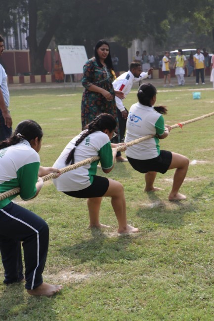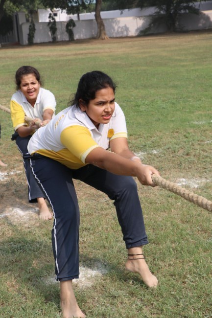 A number of sports events were held on the field which added fervour and enthusiasm to the event. Track events including relay race, hurdles and races by the young athletes rose the spirit of sportsmanship. Additional events – Tug of War (between the houses where Red House stood victorious) and Teachers’ race and Cabinet race maintained the spirit of the day.