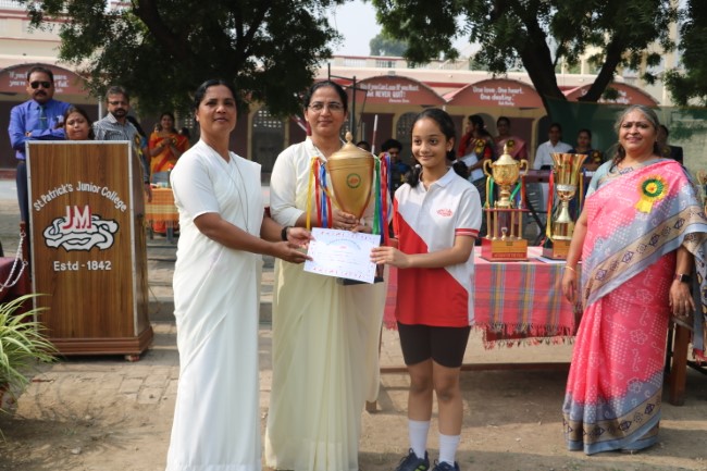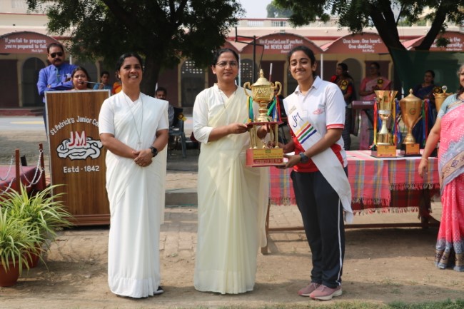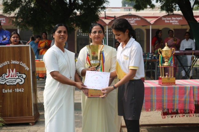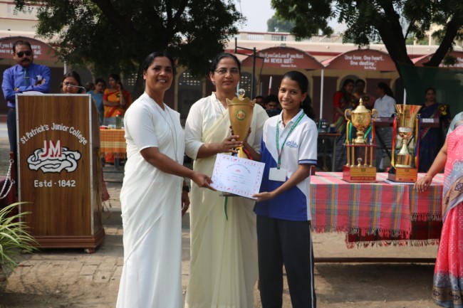 In accordance with this saying our school ST. PATRICK’S JUNIOR COLLEGE held its 179th Annual Sports Meet on 8th November, 2023. The Chief Guest for the day was Sr. Pasha Misah, the Headmistress of St. Joseph’s Girls Inter College. The Sports Meet was declared open by our Principal Rev. Sr. Leena.