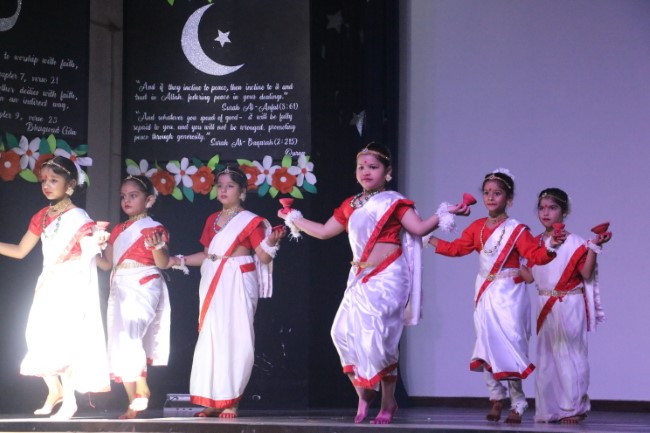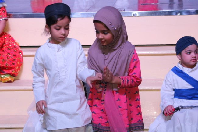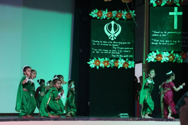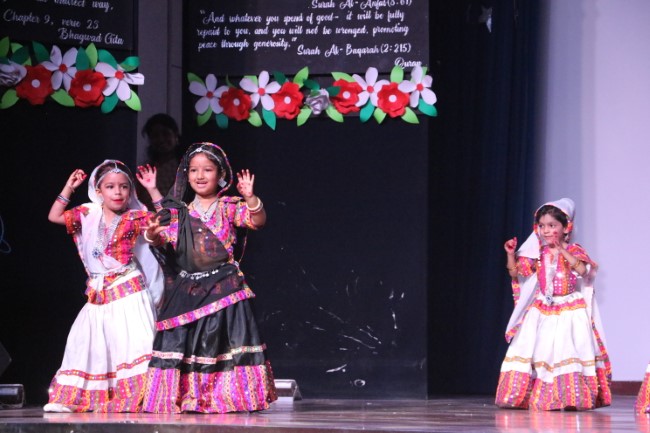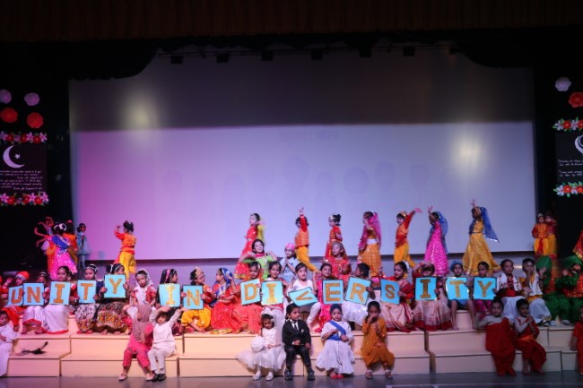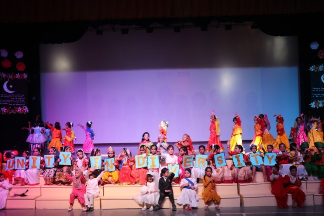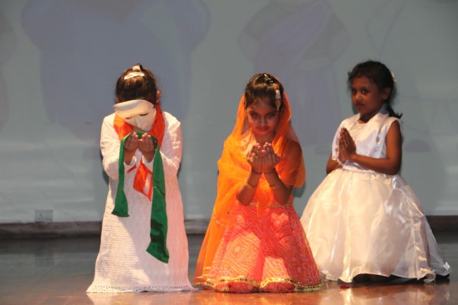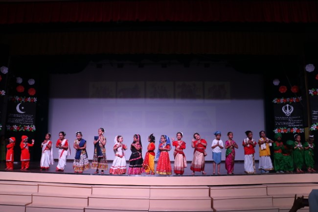 India is a synonym for diversity. It is blessed with several communities, beliefs and practices, who live in harmony and peace while preserving their own distinct culture and traditions. Inaudible India can’t be described in just a few lines. The true essence of Indian beauty and tradition is UNITY IN DIVERSITY that makes us different from the rest of the world. It may not be wrong to say that the colour of the people may be different but their heart is tricolour.That is what our little tiny tots presented in the form of a dance drama.