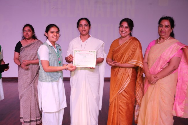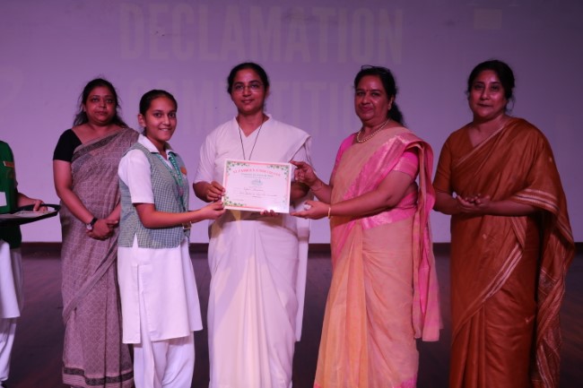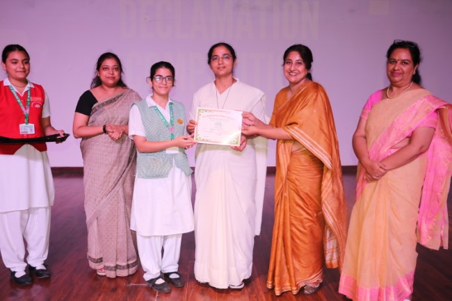 The Inter Class Declamation Competition was held on 26.7.24. Participants from Classes IX to XII participated in it, showcasing their talent through effective speaking and elaborate gestures. The judges for the event were- Ma'am Navina Sood and Ma'am Sumbul Ali.