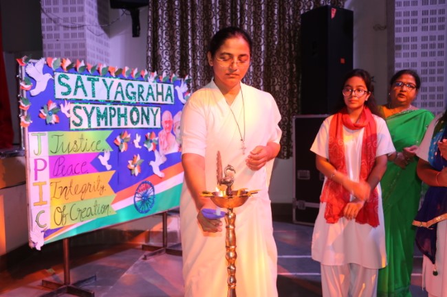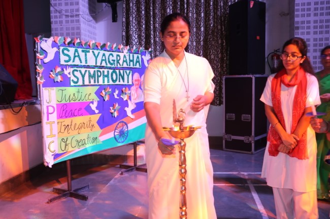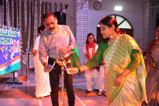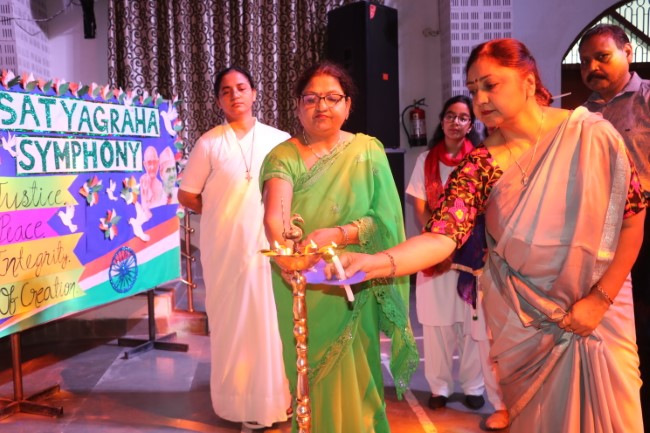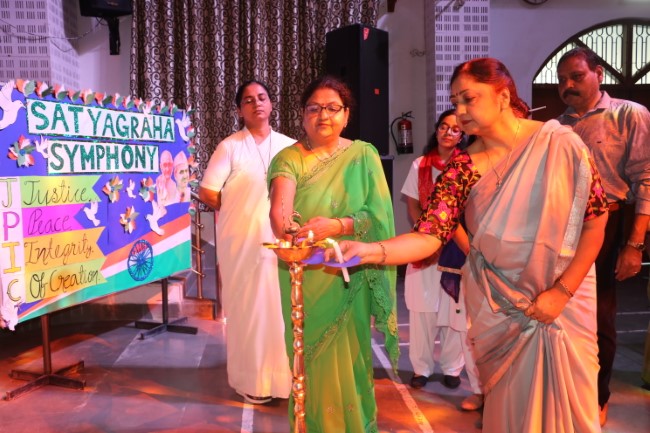 On the occasion of Gandhi Jayanti on 2nd October, Class 11 organized a meaningful program titled “SATYAGRAHA SYMPHONY: Echoes of Gandhi’s Footsteps Towards Justice, Peace, and Integrity of Creation.”