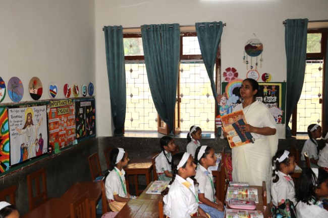 The Chart Display Activity for Primary Section was conducted by the class teachers in their respective classes. All the class teachers had given different topics to the children for charts, from their related course books and other events related to their class. These charts help all the children to understand the related topics well. All the classes were adorned with these beautiful and creative charts.The activity was conducted under the kind guidance of our Principal Rev.Sr. Leena. The teachers and students of all the classes enthusiastically participated in the activity and it was ably supported by the contribution from parents as well.