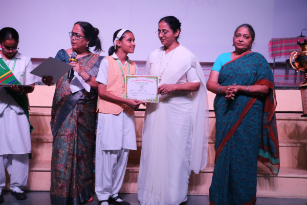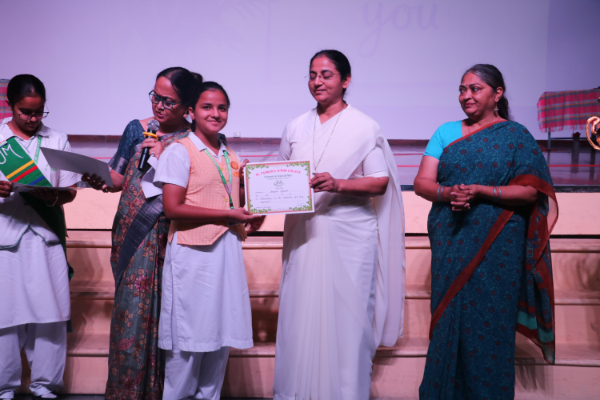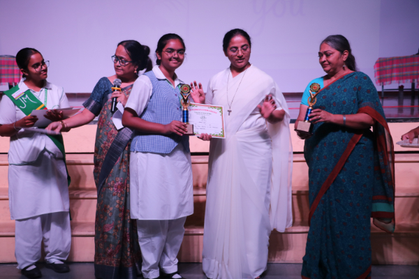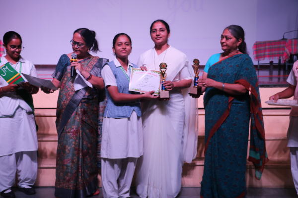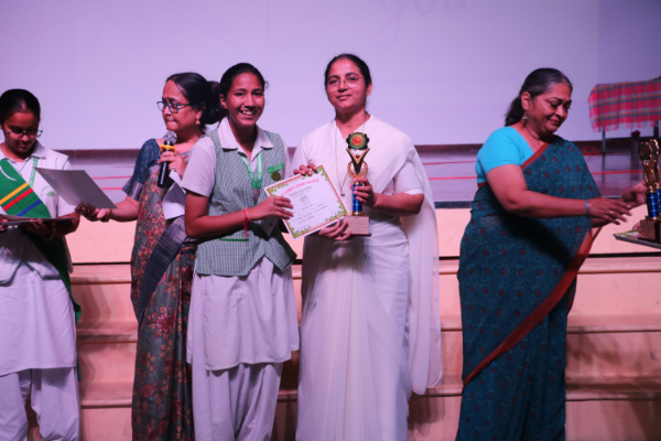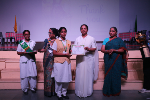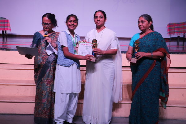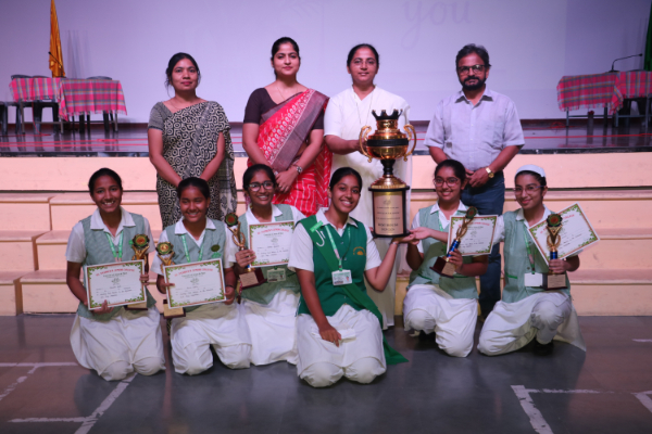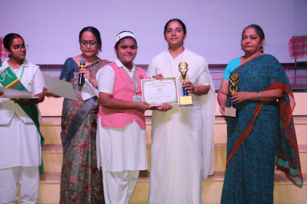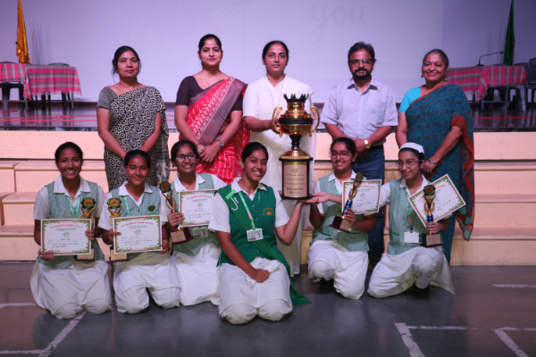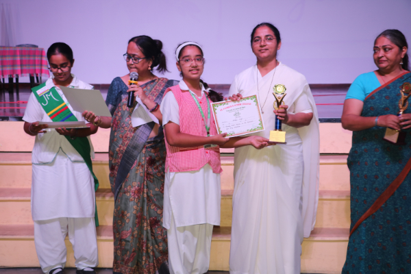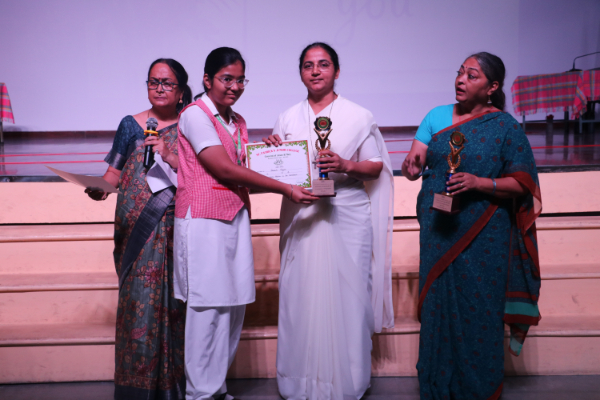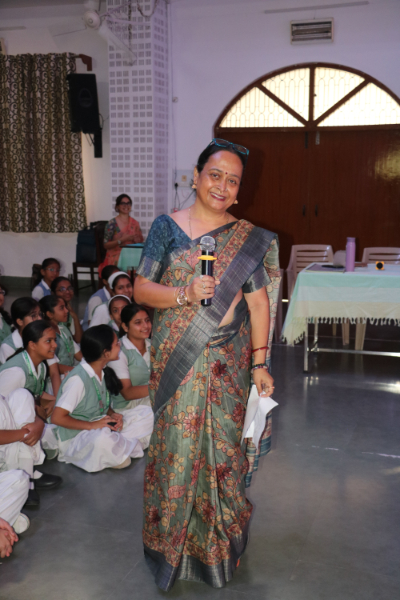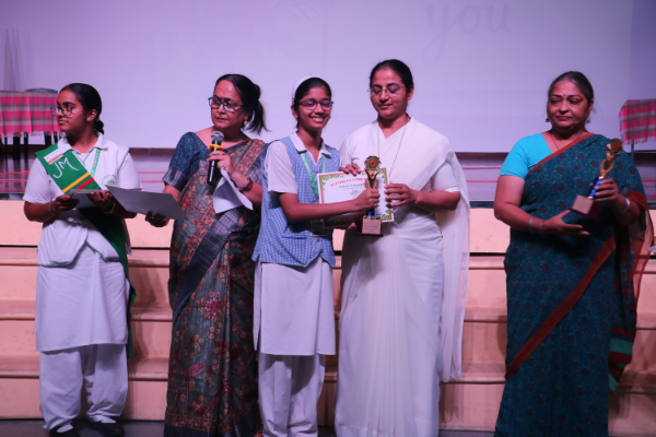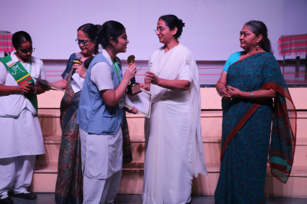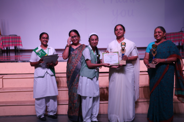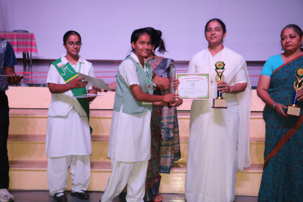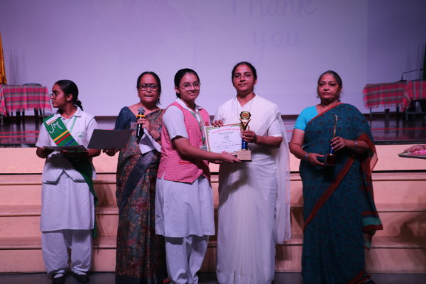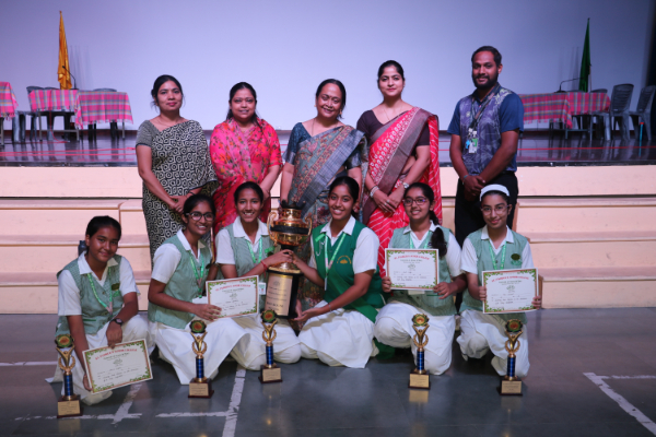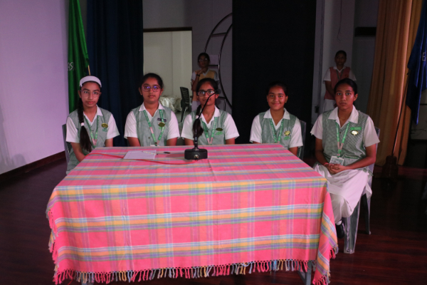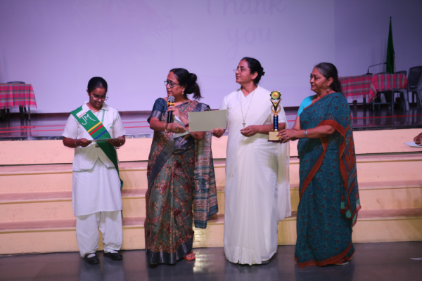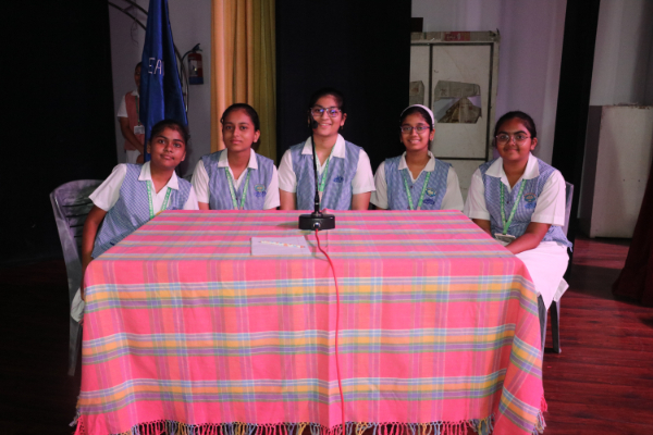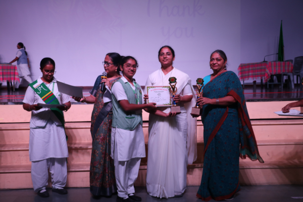 Inter house quiz competition was conducted in the school auditorium on 27 September 2025 where all the four houses participated with full enthusiasm, there were Five participants in each house consisting of students from each class from 6 to 9 & 11 , and this time in the quiz competition there was a very unique round which consisted of Bollywood in relationship with Mathematics , the candidate had to guess the number game hidden in the bollywood Song. The quiz consisted of entertainment rounds ,history geography, science, Current affairs and many other interesting rounds. This time we had different rounds with +20/-20/-10, -20 was alloted for not answering & remaining quiet , to encourage participants to be active in the Quiz. Green house came first followed by Red House who came second, Blue house was third and Yellow House got the 4th position. The quiz mistress was Ms. Arpita Chatterjee assisted by Sharmishtha Chatterjee.