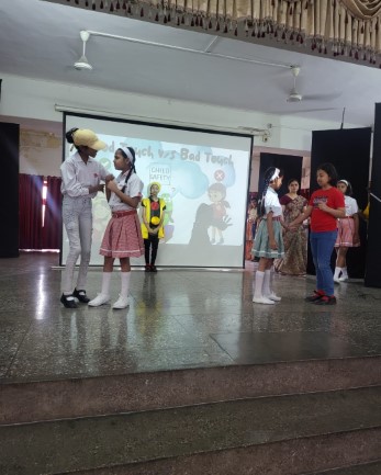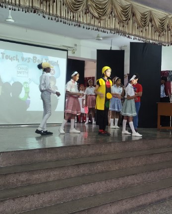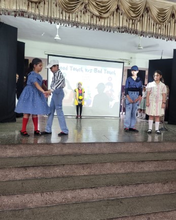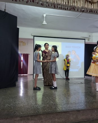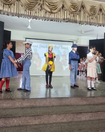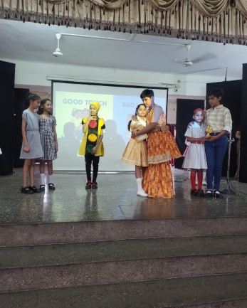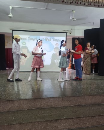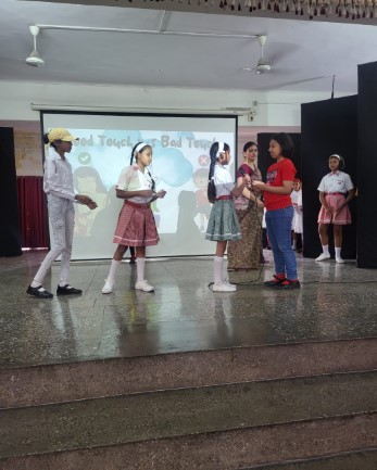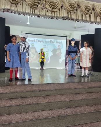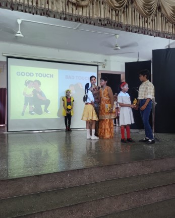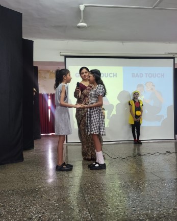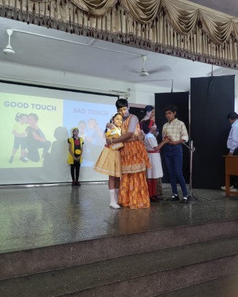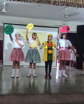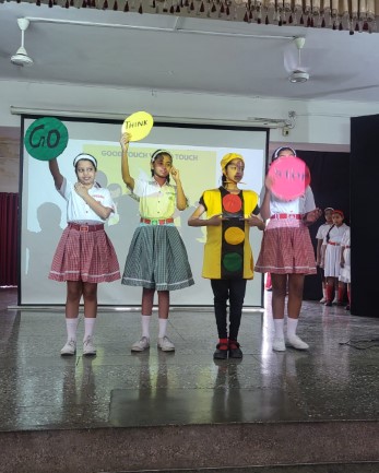 The session began with a short skit The Traffic Signal...where three lights indicated three types of touches...children performed it very well depicting clearly the touches related to three lights suited with the examples highlighting everyday situations where children might encounter inappropriate behavior which explained the difference between a good touch (which makes one feel safe and cared for) and a bad touch (which makes one feel uncomfortable, scared, or confused).