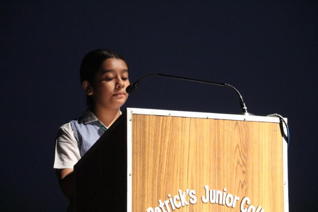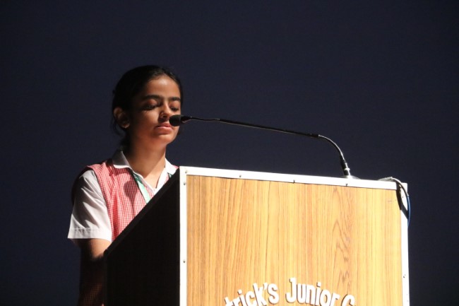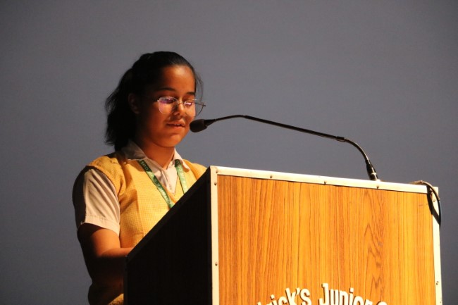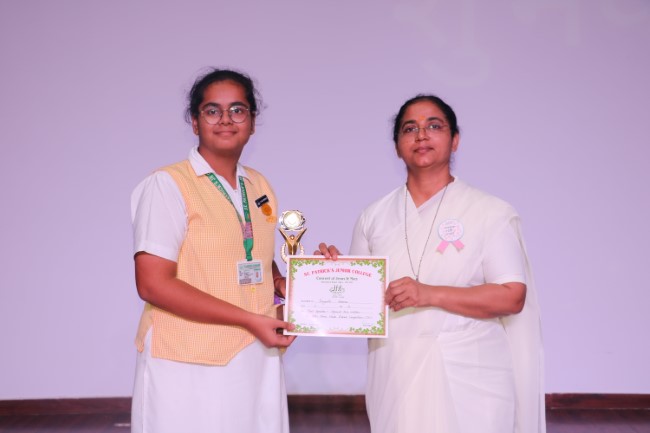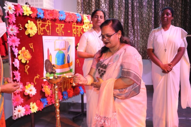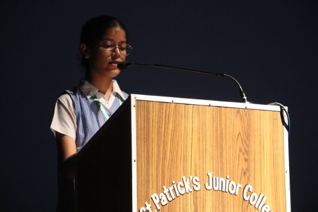 On 13th September 2025 Hindi Diwas was celebrated in St Patrick's Junior College Multi purpose Hall, the celebration commenced with reminding the students of the importance of Hindi language and its special value for us, a special prayer service was held followed by a prayer dance, Inter House Hindi Debate was a well fought event. On 15th September Inter House Hindi Declamation was also hosted.At the end of the assembly Principal of St. Patrick's Junior College Rev. Sister Leena D Matera addressed the students and inspired them to take pride in the National language, she also urged them to speak in flawless Hindi in their conversation, the program ended with the National Anthem.