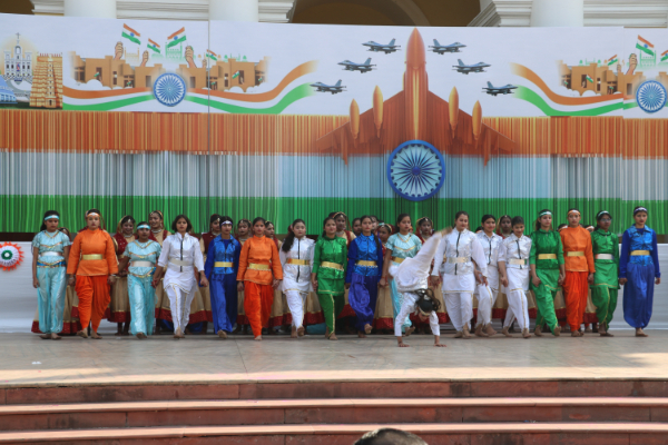 The environment was lively and inspiring, echoing the true spirit of India. Adding to the grandeur of the celebration, the girls of classes 9 and 11 participated in an impressive march past, showcasing discipline, confidence, and unity. Their synchronized movements and patriotic zeal left a lasting impression on everyone present. Overall, the celebration was a memorable display of togetherness, culture, and love for the nation. 🇮🇳✨