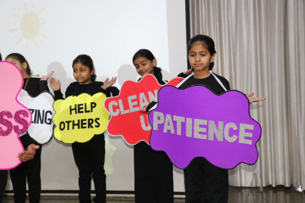 The celebration included special assemblies, skit, role play, dance and creative presentations. Students enthusiastically participated, expressing their understanding of values through speech, and action.