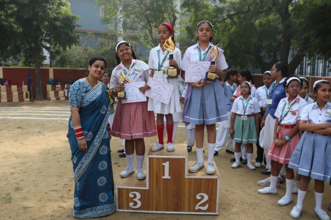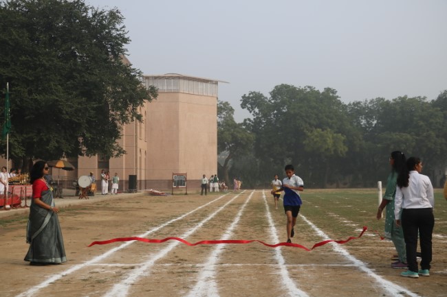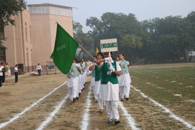 The meet was declared open by Mrs. Anju Mahajan, who took the salute of the school, March Past. The March Past was led by the School Cabinet followed by the four school houses Encounter, Endeavour, Endurance and Enterprise. The school march past was led by the torch bearing ceremony by the former best athletes of the school, which was followed by numerous athletics events in which the students showcased their determination and sportsmanship. The final event of the day was an energetic and beautiful synchronised aerobics performed by all the students from classes 6 to 12. The meet came to an end with a heartwarming and motivating speech delivered by the chief guest of the day.